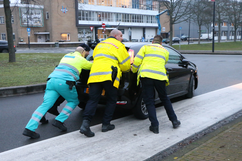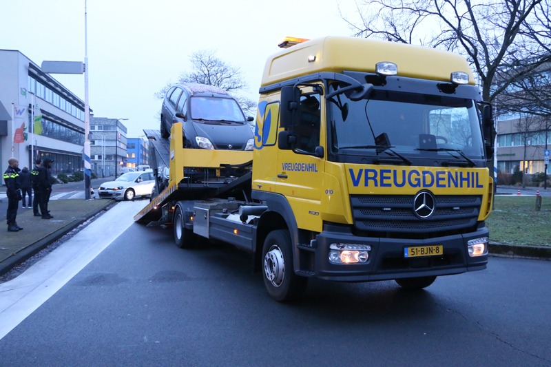 Een berger kwam ter plaatse om de lesauto af te voeren.