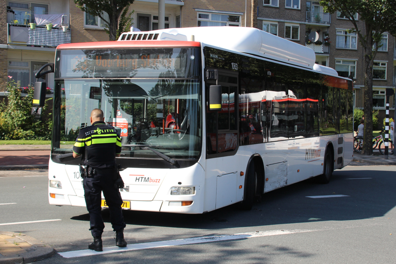 Den Haag – Op de Erasmusweg is vanmiddag een auto op een bus geklapt. De bus had het witte verkeerslicht om linksaf richting de eindhalte te rijden.