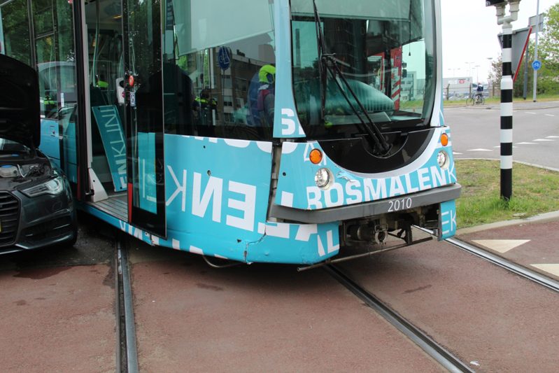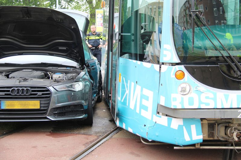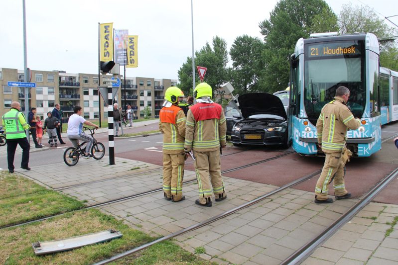 Schiedam – Op de Rotterdamsedijk in Schiedam heeft dinsdagmiddag een ongeval plaatsgevonden tussen een auto en een tram.