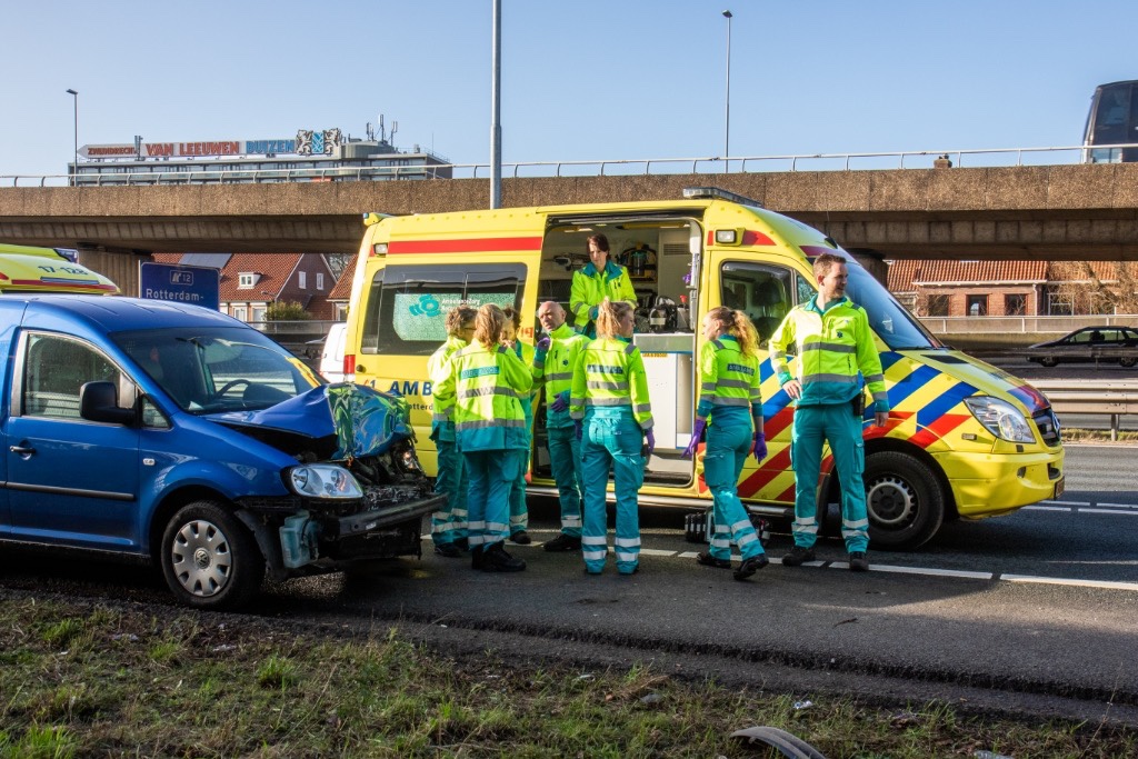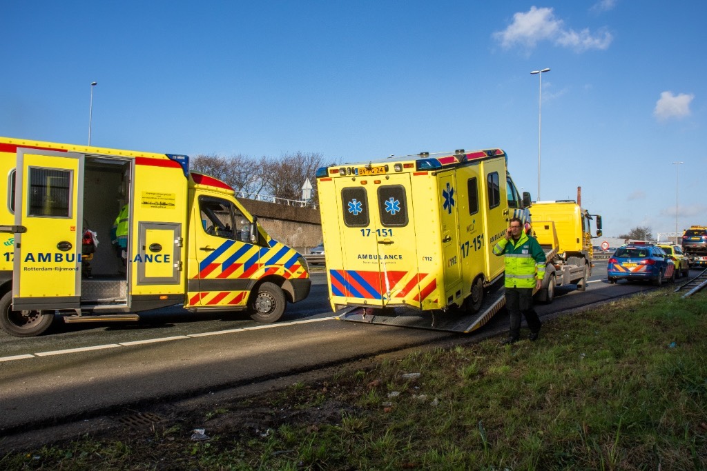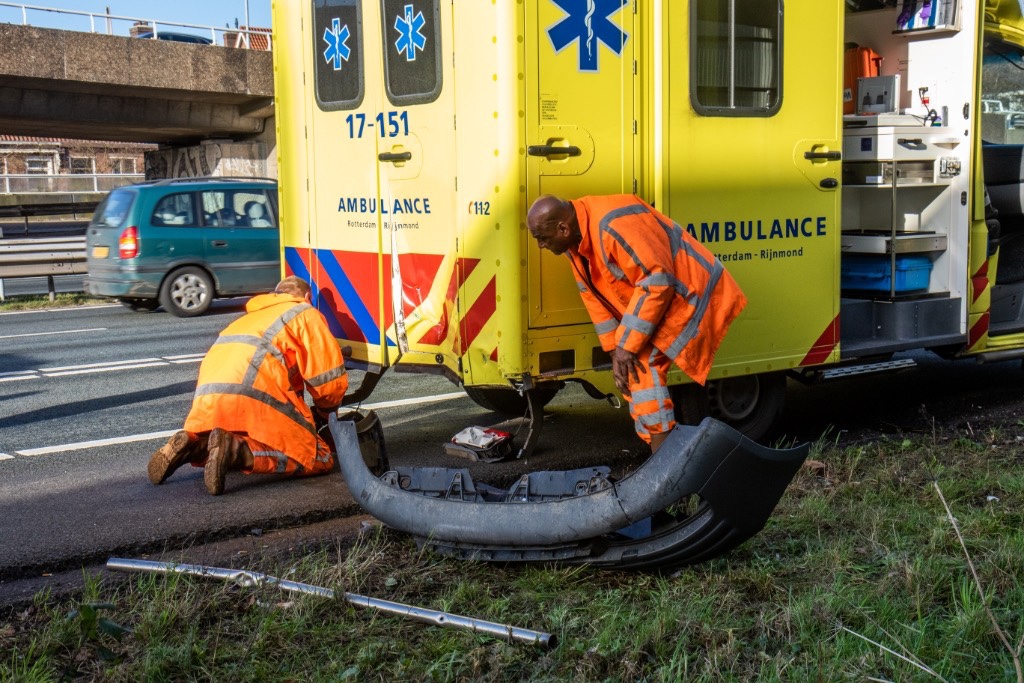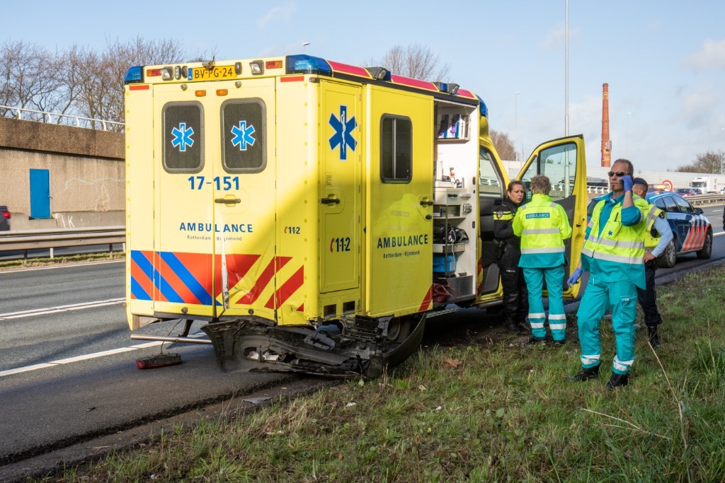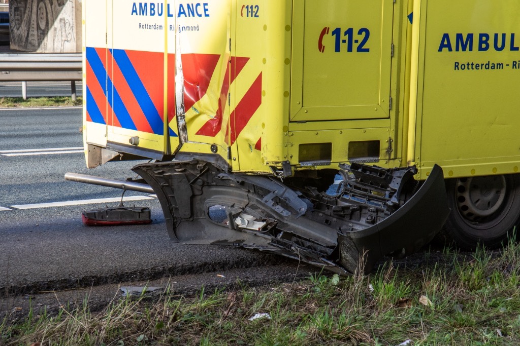 Rotterdam – Op de A20 ter hoogte van het Kleinpolderplein is zaterdagmiddag een personenauto achterop een ambulance gebotst.