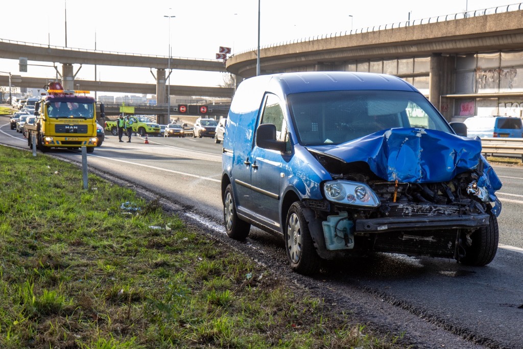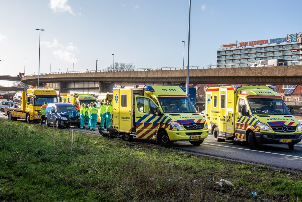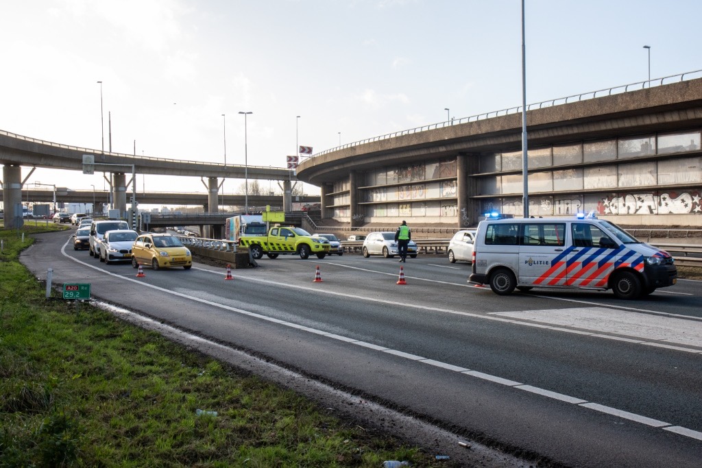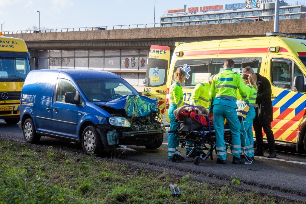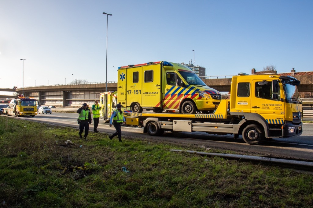 Rotterdam – Op de A20 ter hoogte van het Kleinpolderplein is zaterdagmiddag een personenauto achterop een ambulance gebotst.