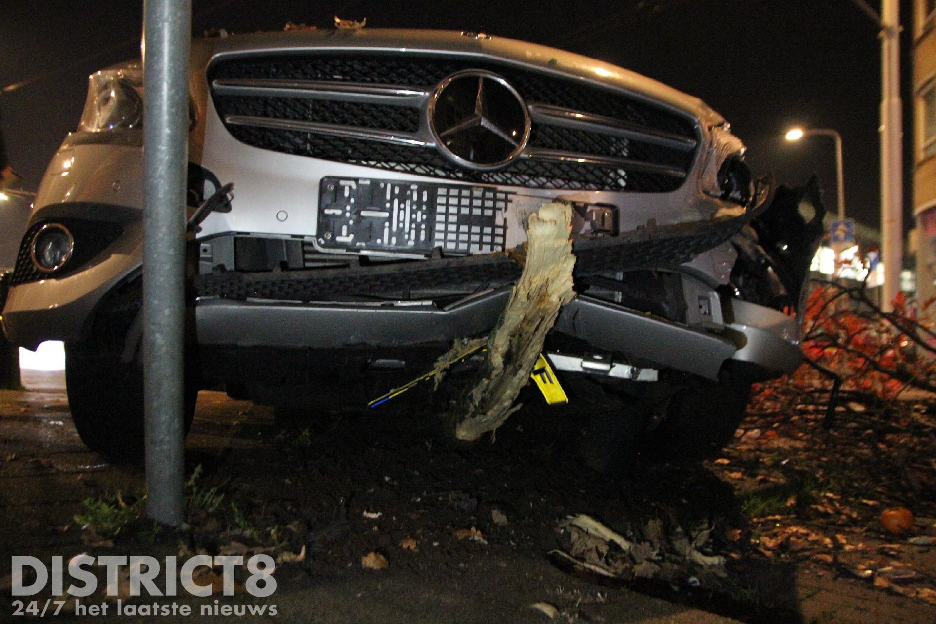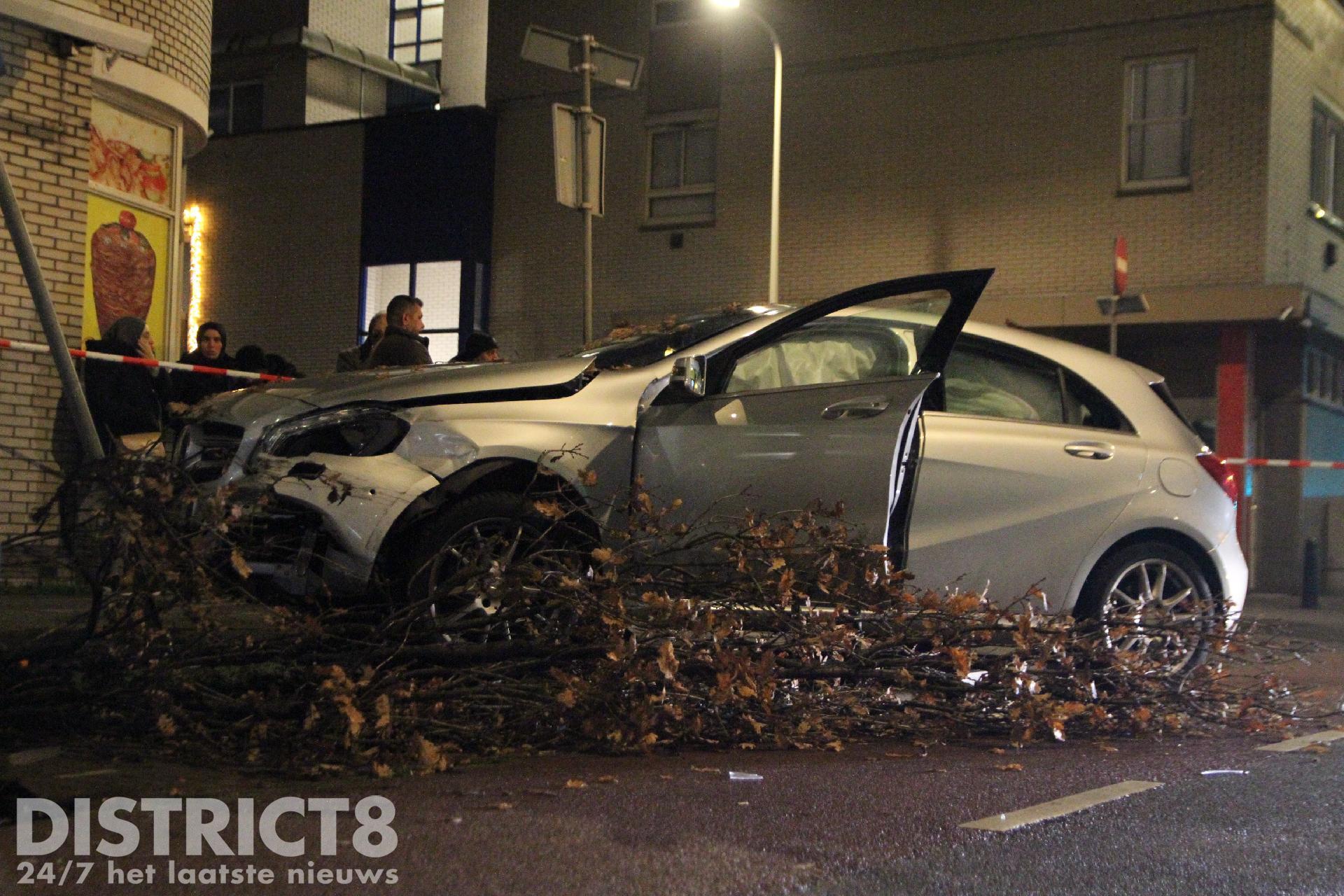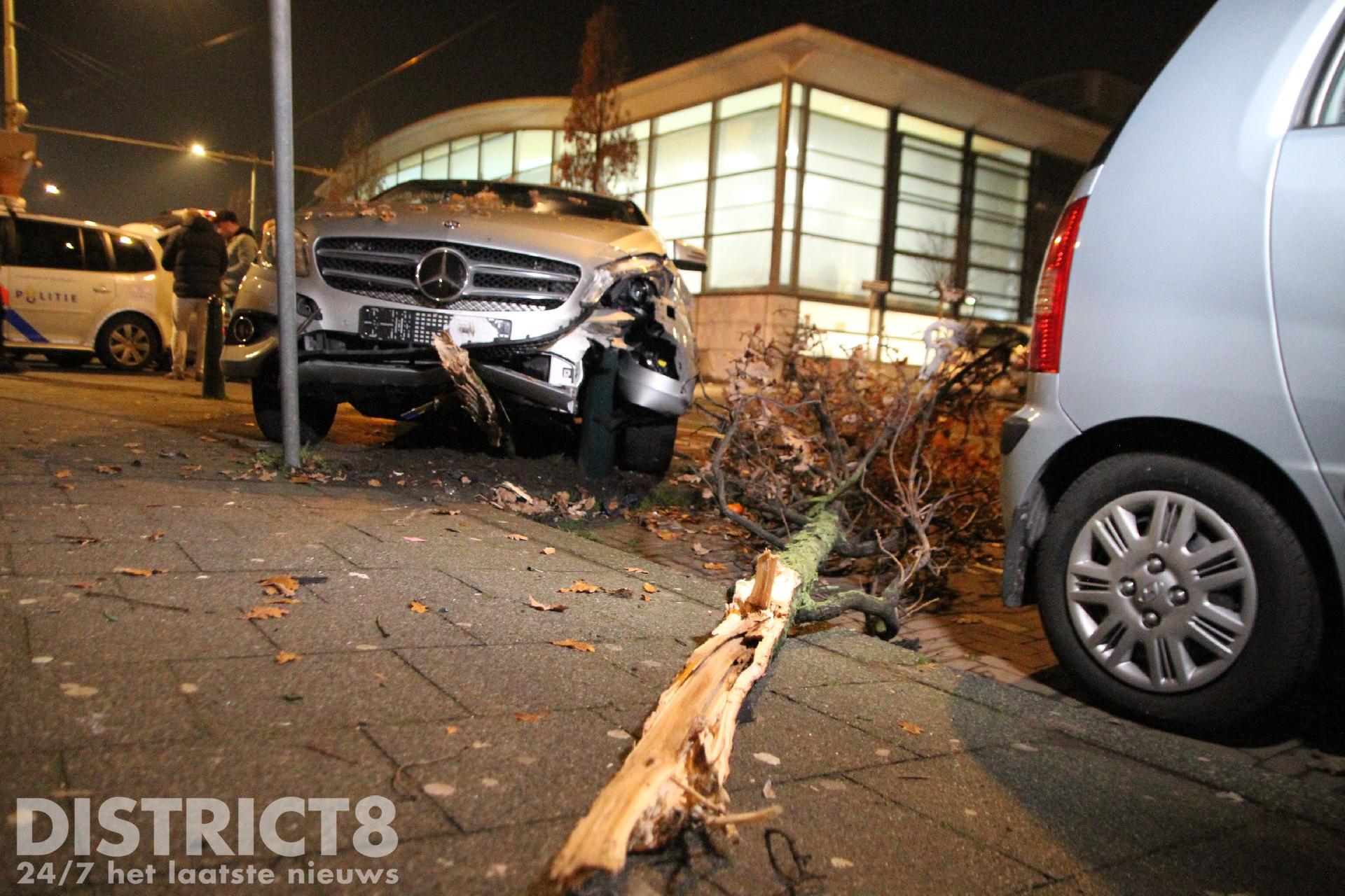 Den Haag – Op de Hobbemastraat in Den Haag heeft vrijdagavond 9 december een aanrijding plaatsgevonden tussen twee personenautos. Eén van de voertuigen heeft hierna een boom uit de grond gereden.
