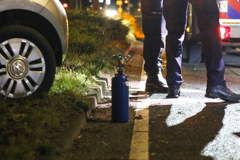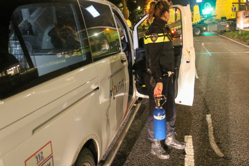 De automobilist is eerst door de politie verhoord en later door medisch personeel onderzocht. In de auto is een cilinder lachgas aangetroffen.