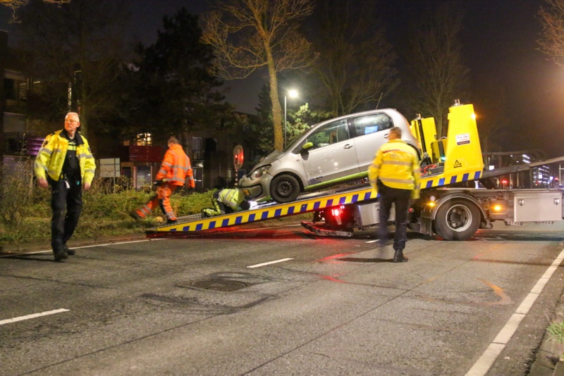 Er is niemand aar het ziekenhuis vervoerd. De auto is weggetakeld.