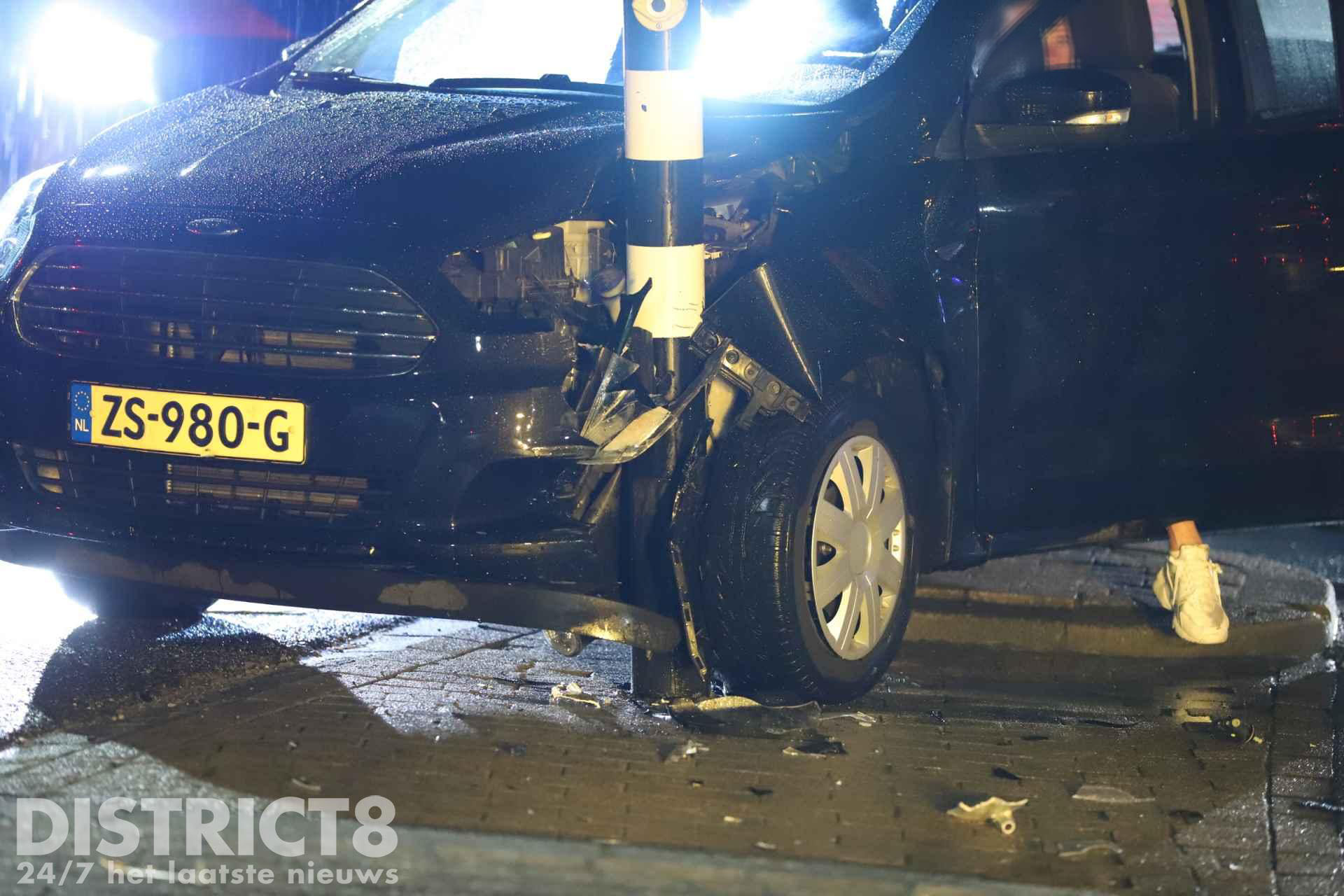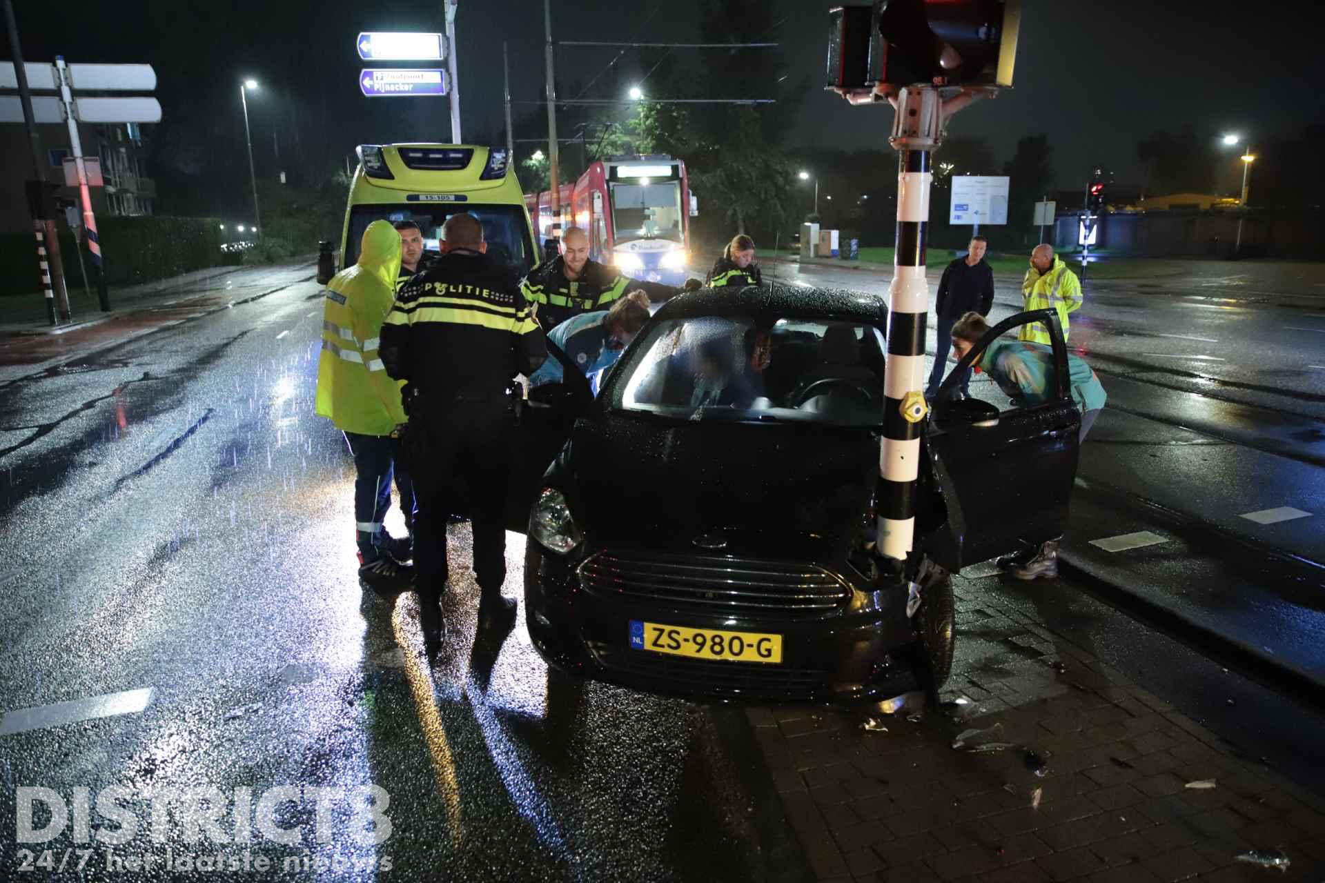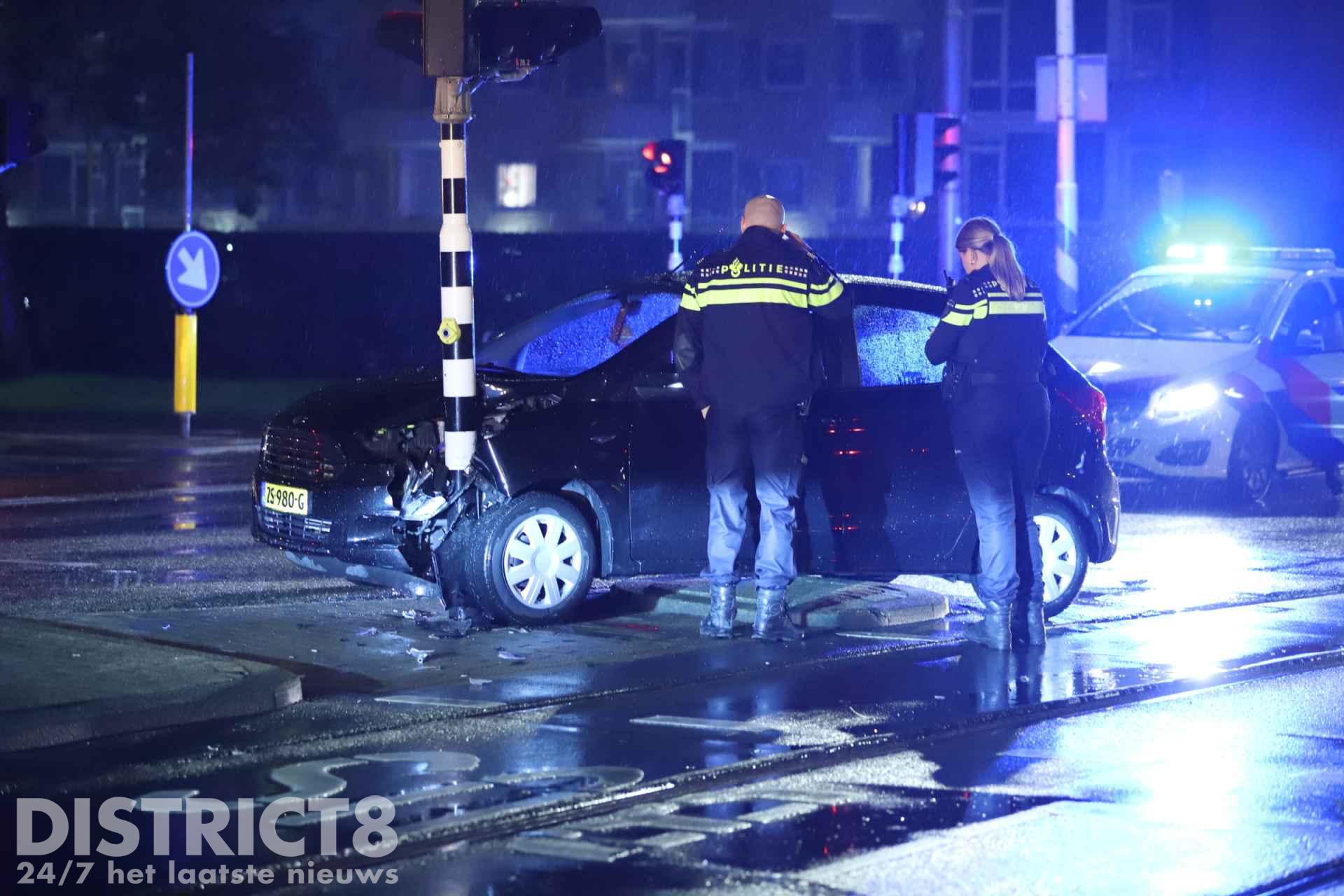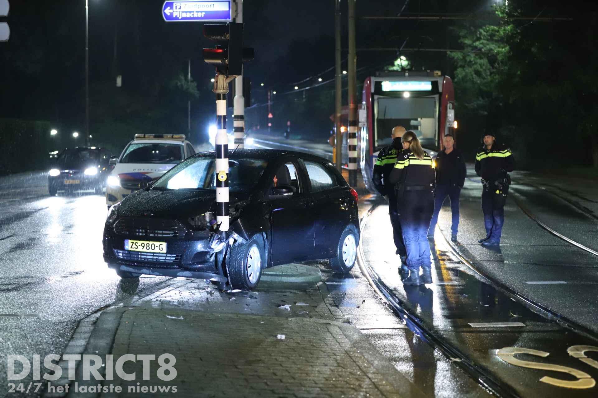 Delft – Op de Vrijenbanselaan in Delft is een auto vrijdagavond tegen een verkeerslicht tot stilstand gekomen.