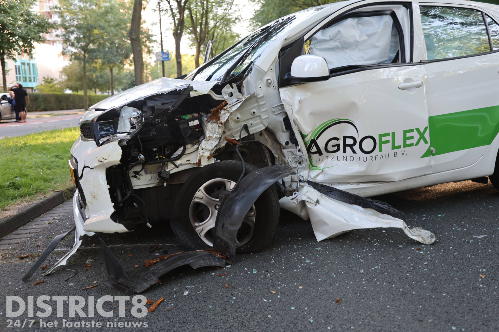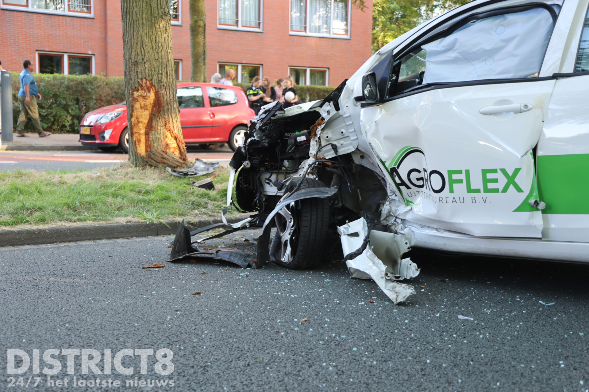 De airbags in het voertuig waren vrijgekomen. Zowel de auto als de boom hadden schade opgelopen. Volgens getuigen raakte een andere automobilist de auto van achteren. De andere automobilist reed na de aanrijding door. De bestuurster bleek onder invloed te zijn van alcohol en werd met spoed naar het ziekenhuis vervoerd. De politie heeft haar geïnformeerd dat zij is aangehouden voor het rijden onder invloed (artikel 8).