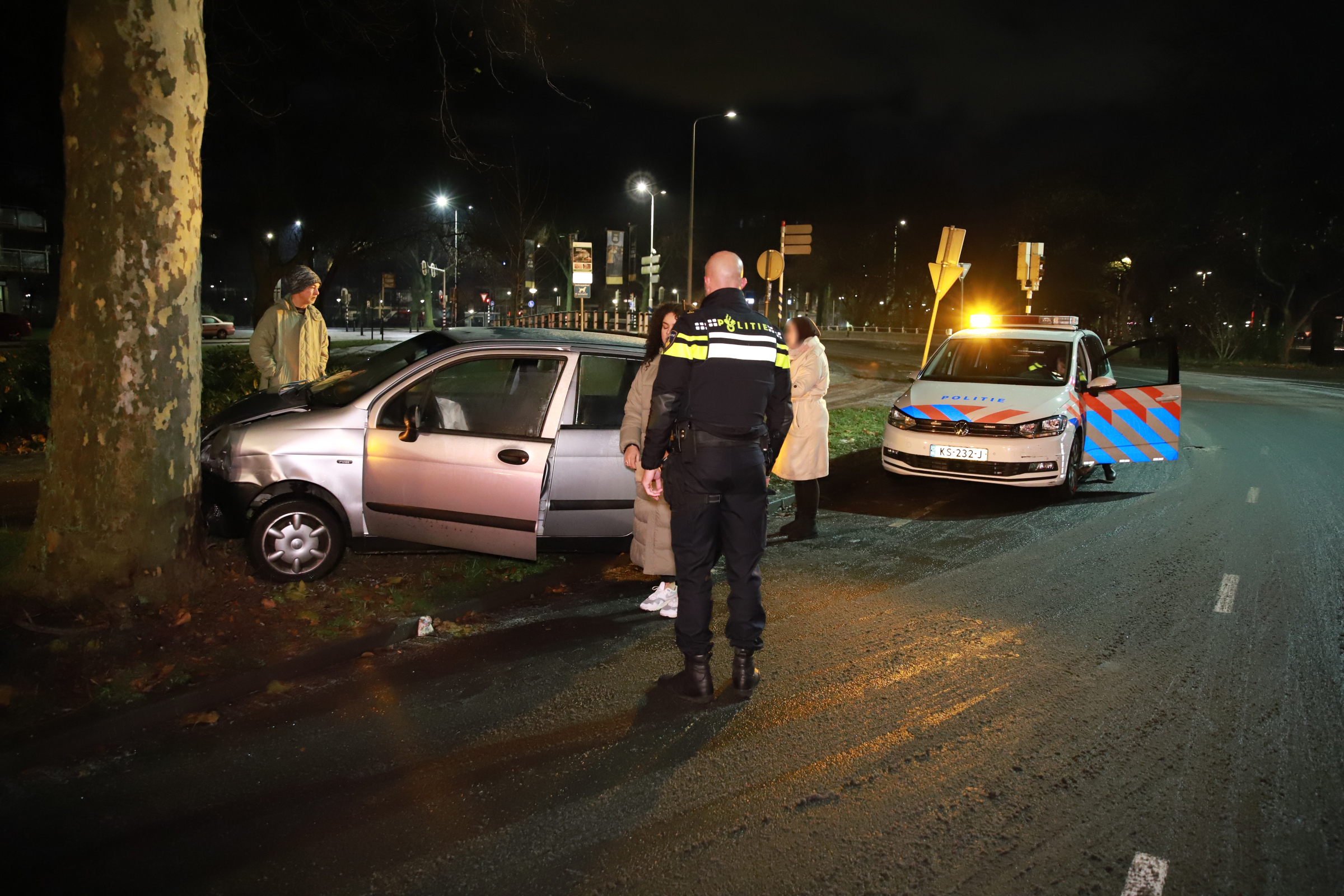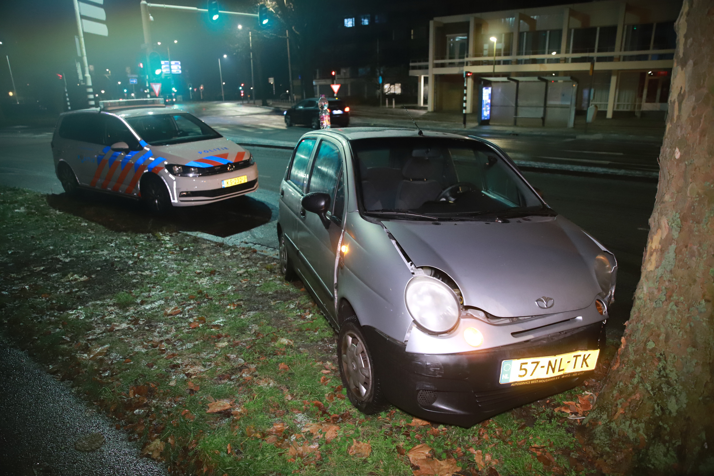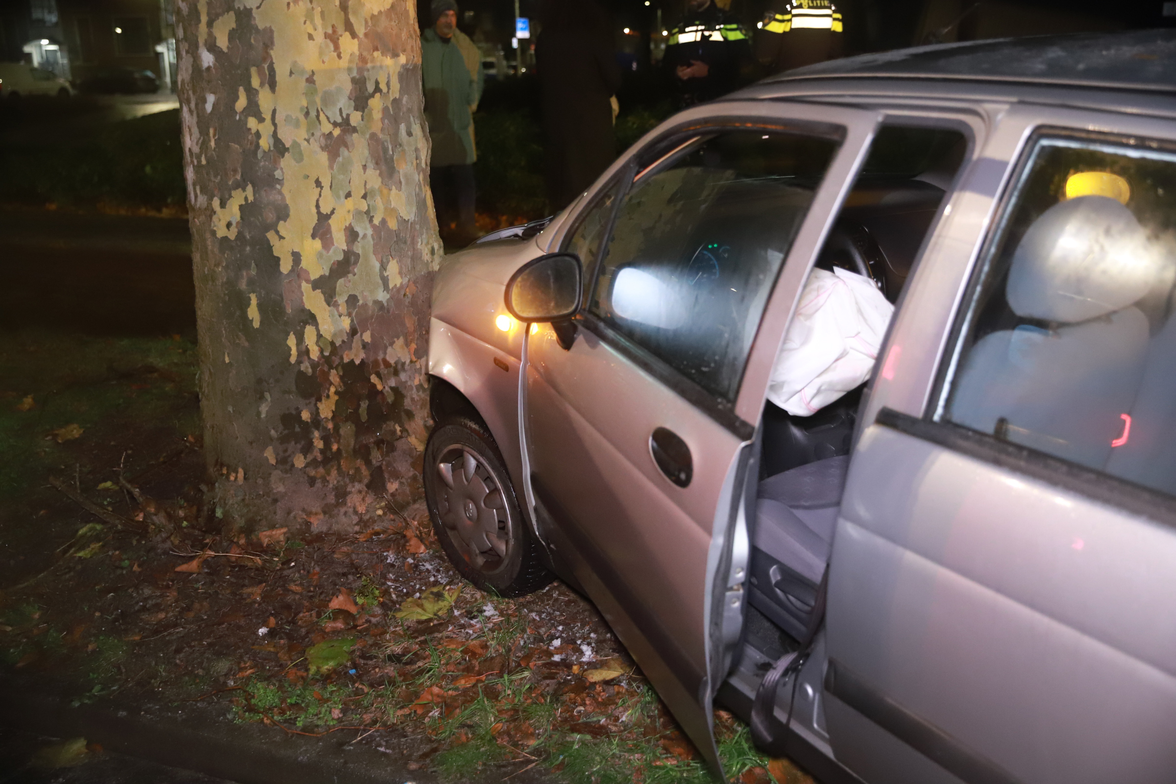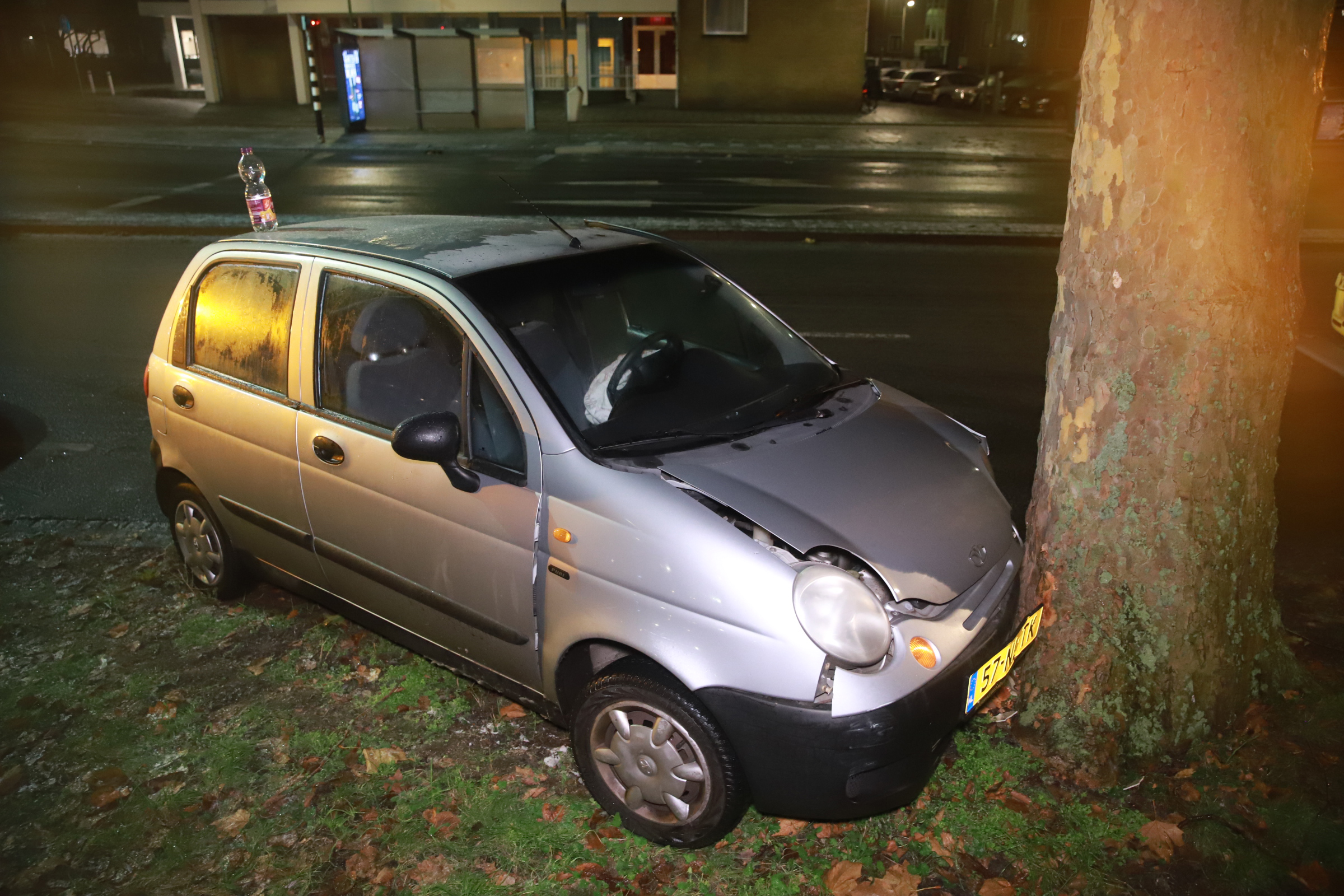 Auto knalt tegen boom door gladheid Moerweg Den Haag