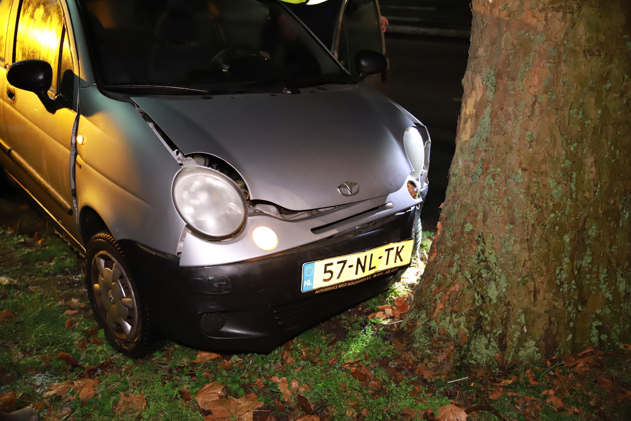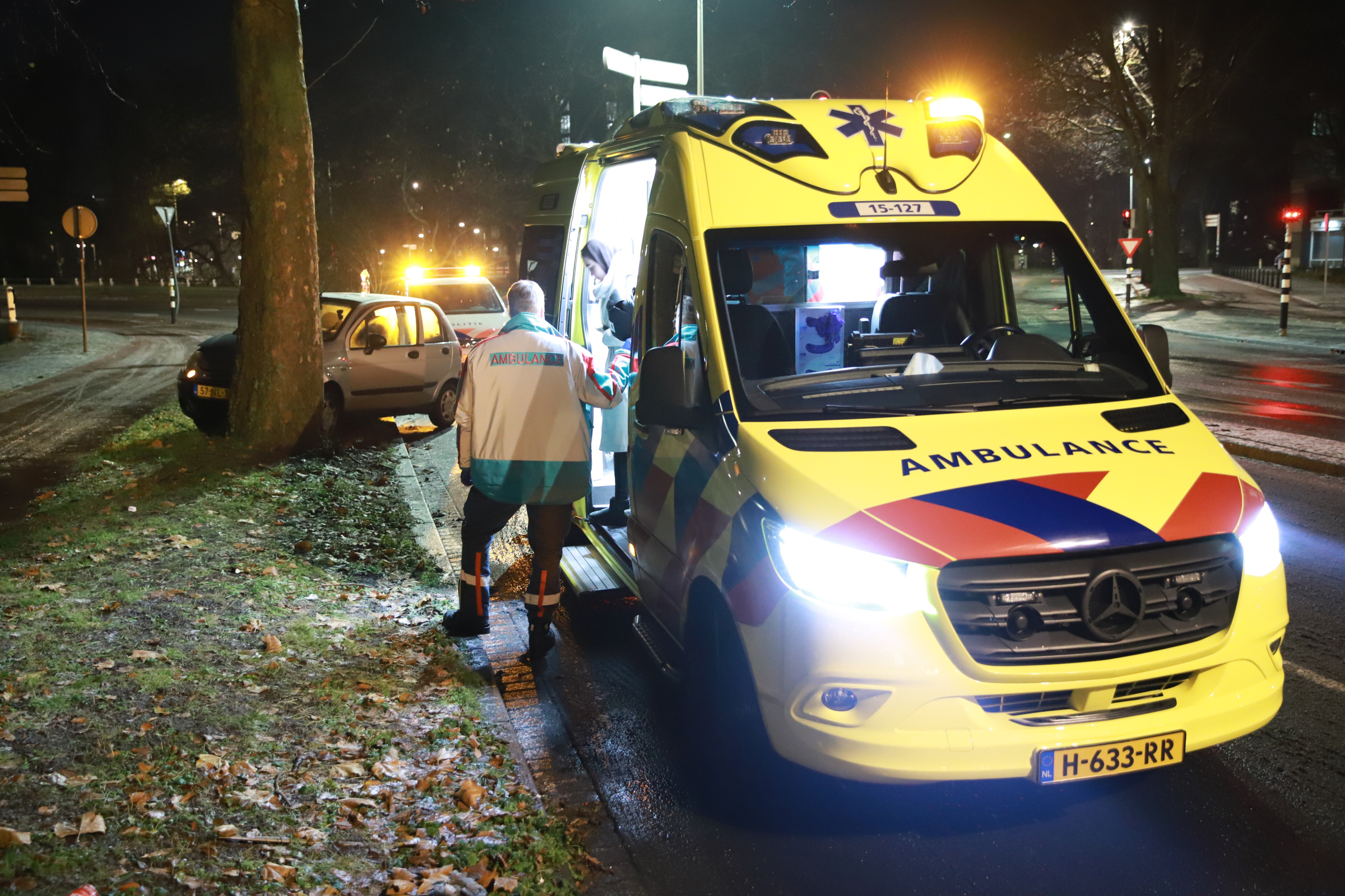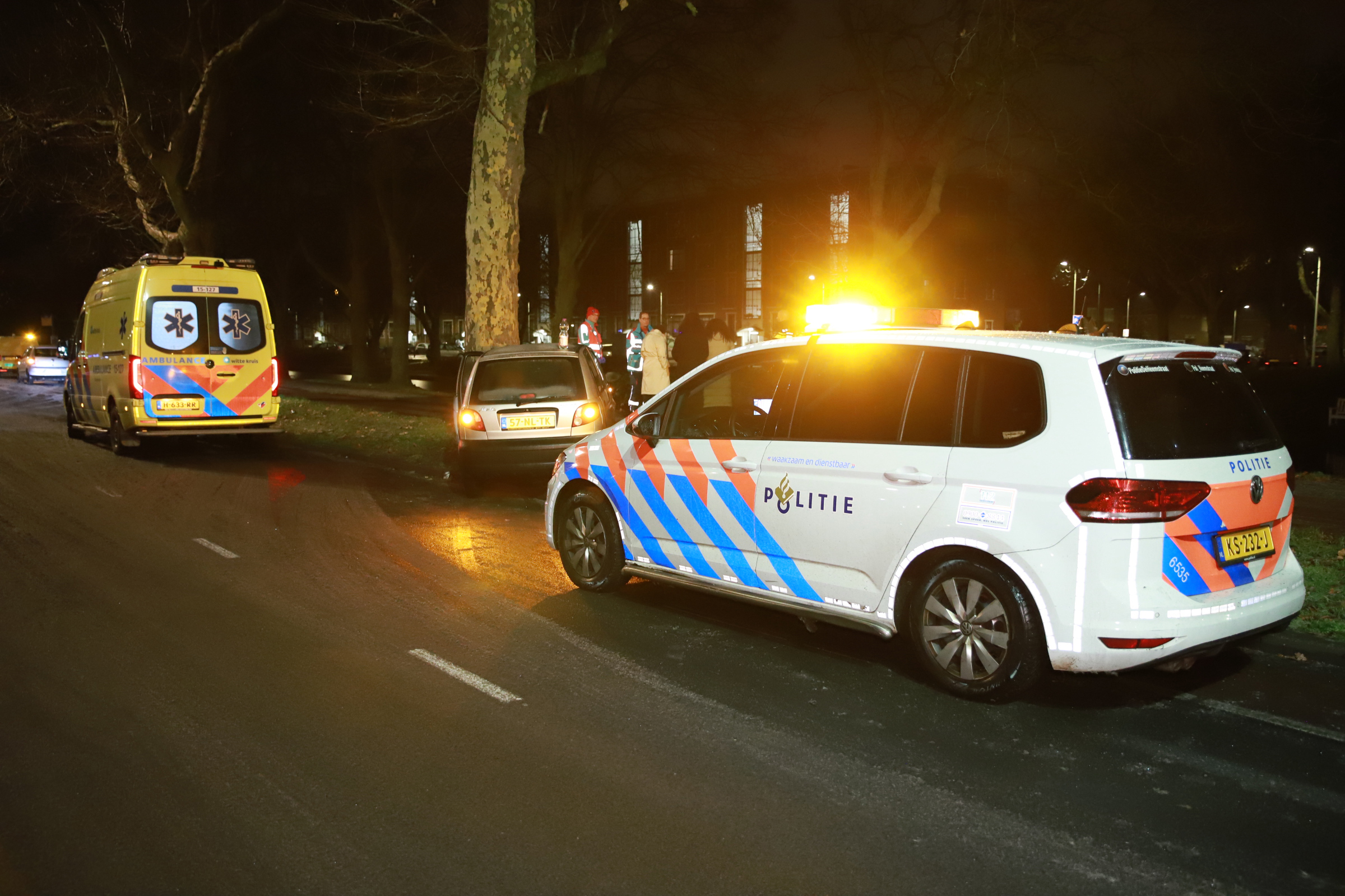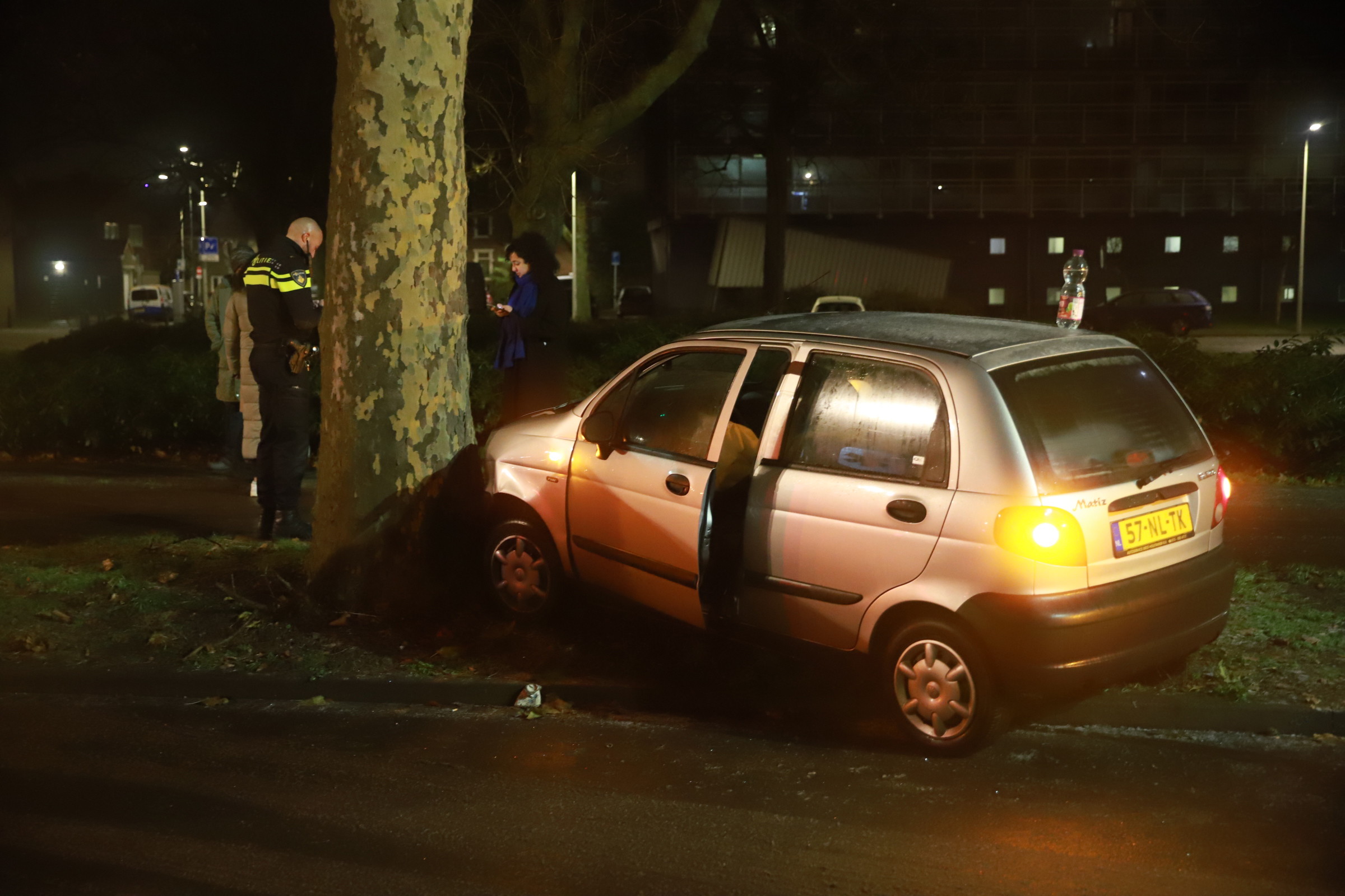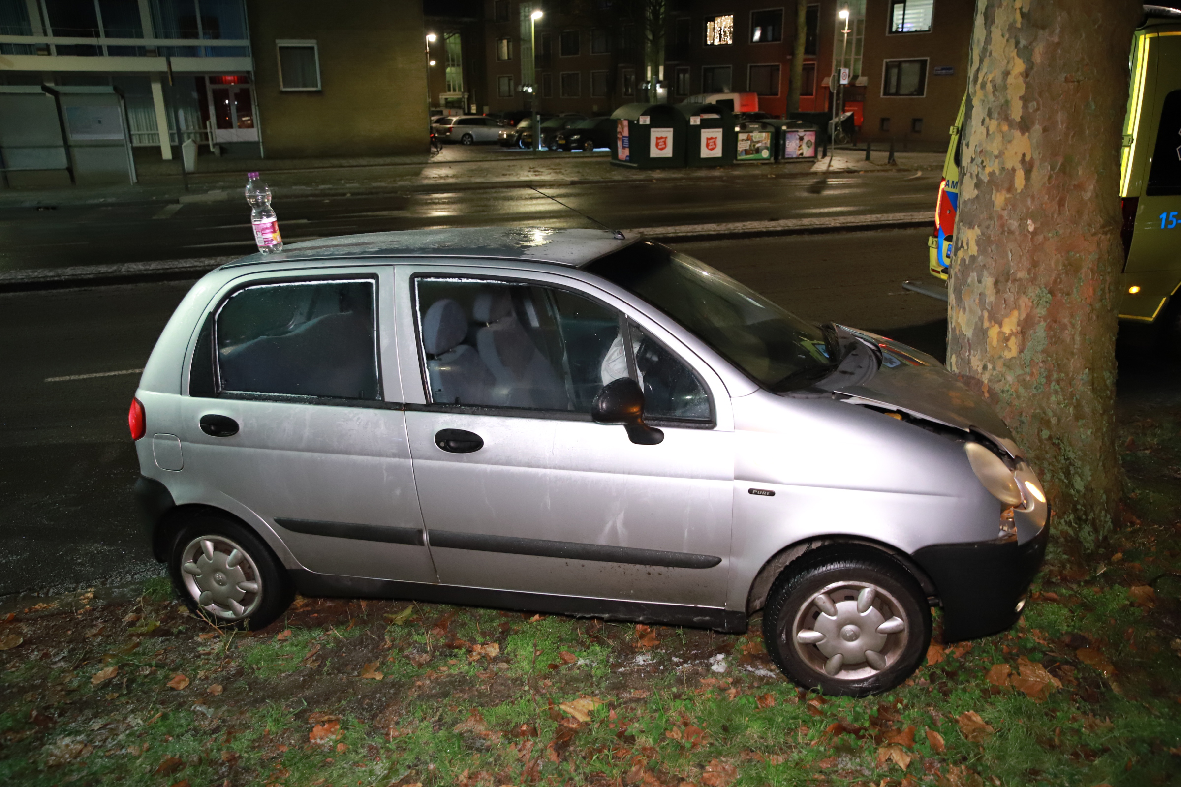 Auto knalt tegen boom door gladheid Moerweg Den Haag