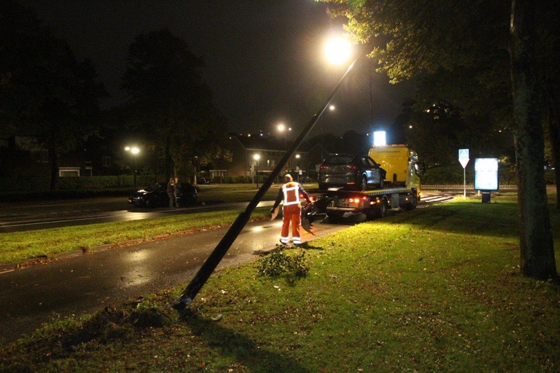 Zowel de lichtmast als de auto raakten flink beschadigd. De auto zal door een berger worden afgesleept.