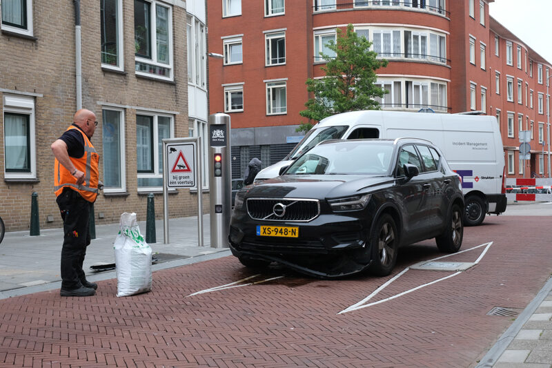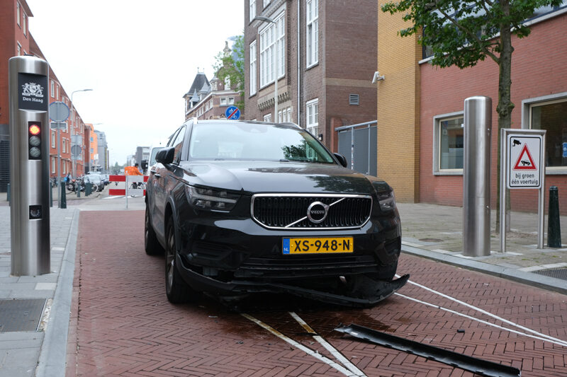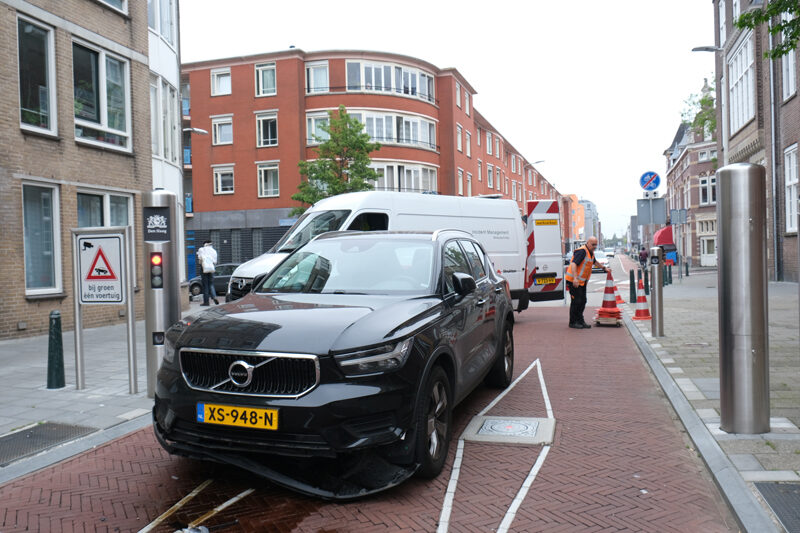 Den Haag – Op de Hoefkade in Den Haag is zaterdagmiddag 5 juni een auto tegen een poller aan gereden.