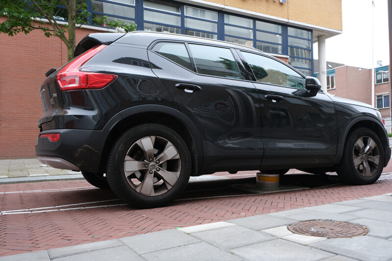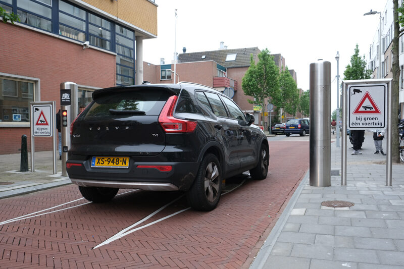 De auto reed over de poller heen, door een onbekende reden kwam de poller weer omhoog en raakte de bumper van de auto, hierdoor raakte hij beschadigd.