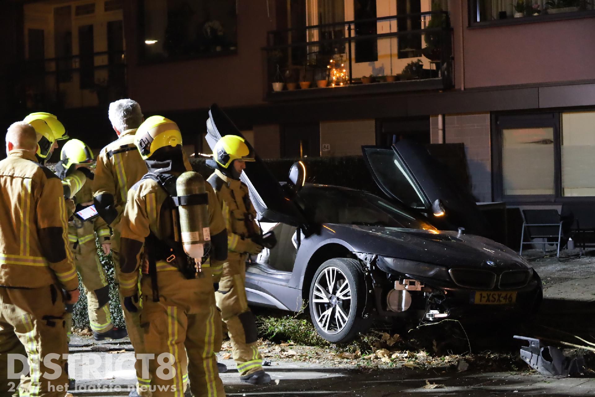 Even na één uur werden de bewoners van de Dorpskade opgeschrikt door een hoop kabaal. Toen zij uit hun raam keken zagen zij een BMW in de voortuin staan. Direct belden zij 112.