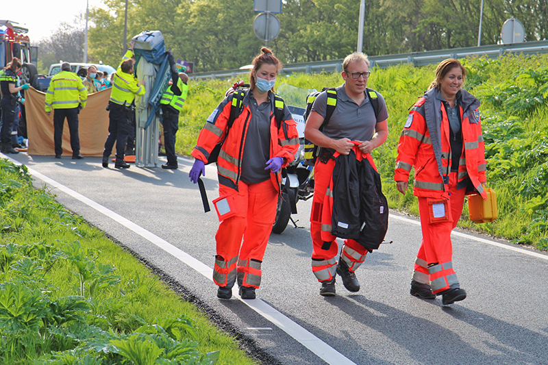 De hulpdiensten kwamen in grote getalen aanwezig en werden bij dit incident ondersteund door het Mobiel Medisch Team (MMT) die per traumahelikopter ter plaatse zijn gekomen. Nadat het slachtoffer ter plaatse enige tijd behandeld is, werd een laken over het slachtoffer heen gelegd en plaatste de politie een tent over de auto en het slachtoffer.