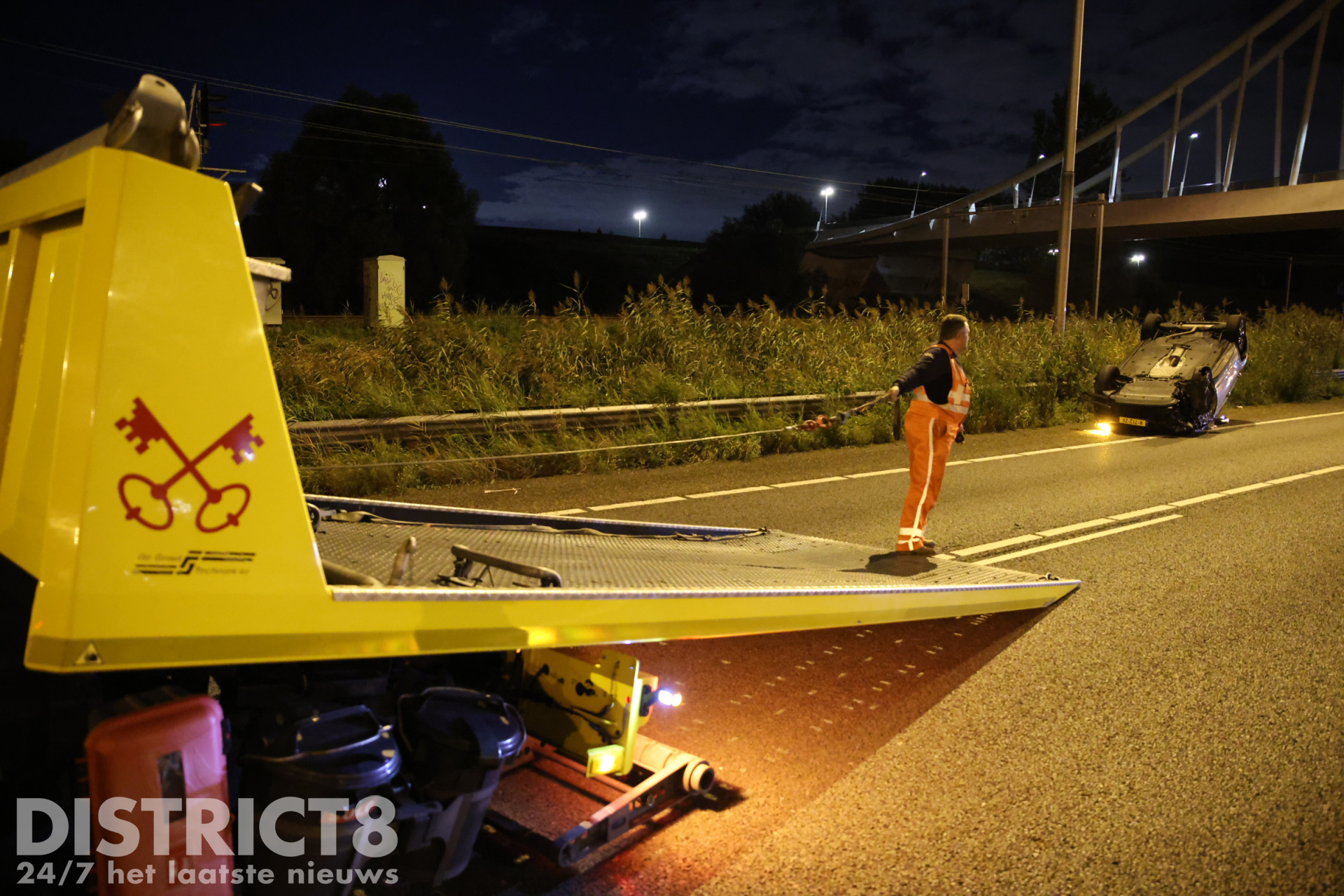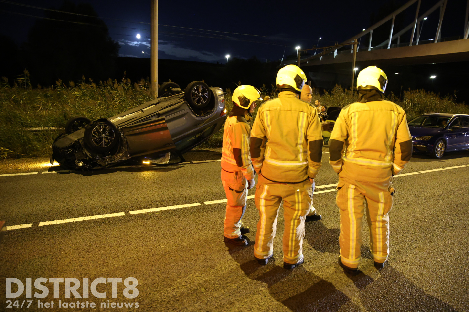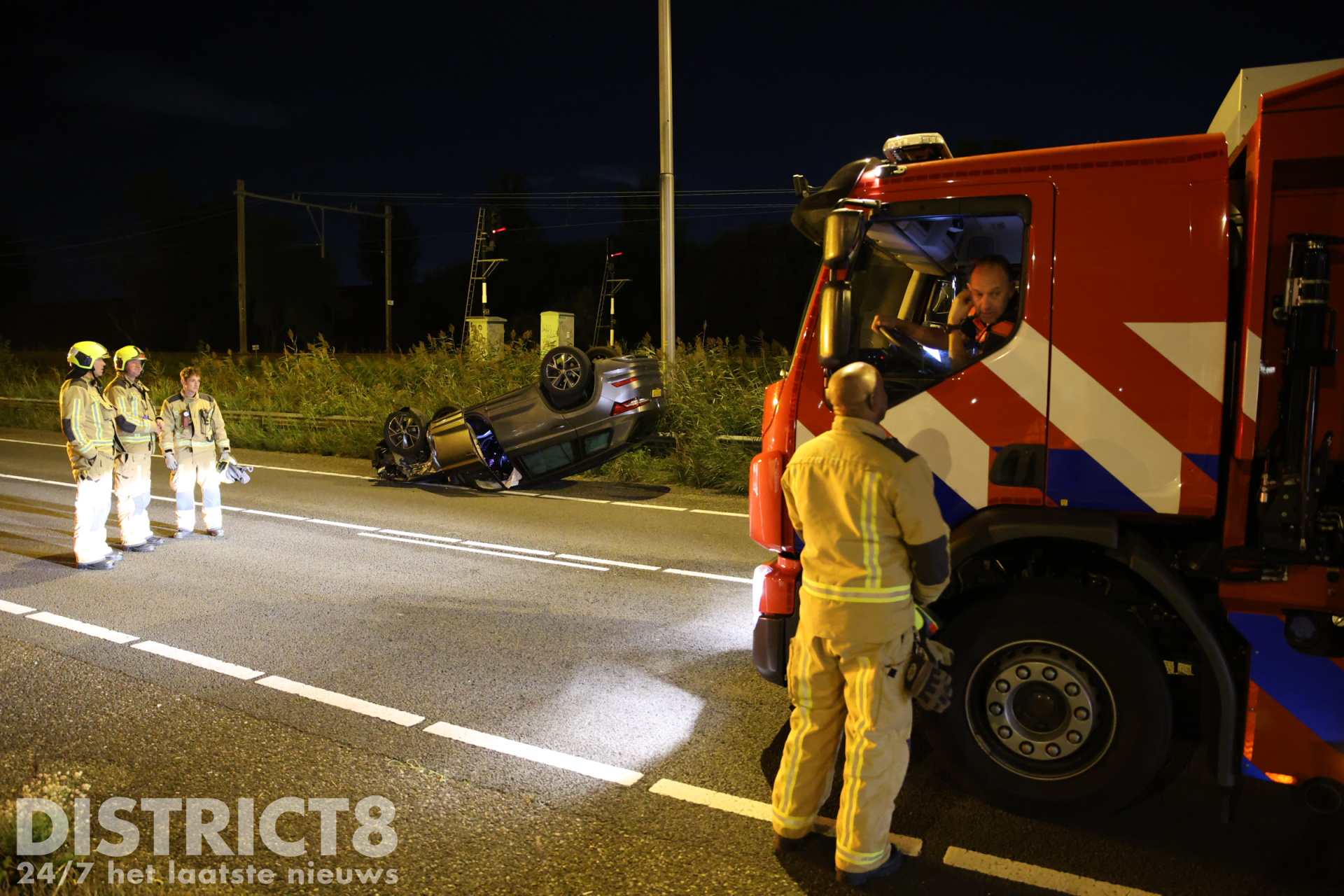 De brandweer heeft enkel hand- en spandiensten verricht en zijn daarna retour gegaan naar de kazerne. De betrokkenen raakte niet gewond, een berger is aanwezig om de auto weer op vier wielen te zetten en af te voeren. De schade aan de wagen is groot.