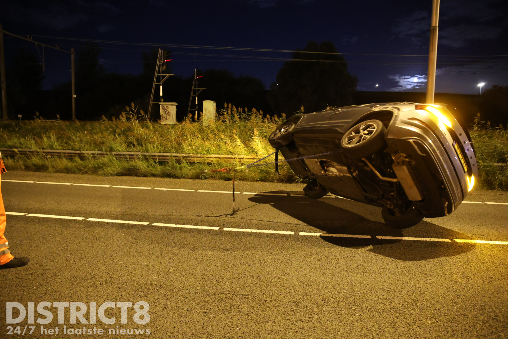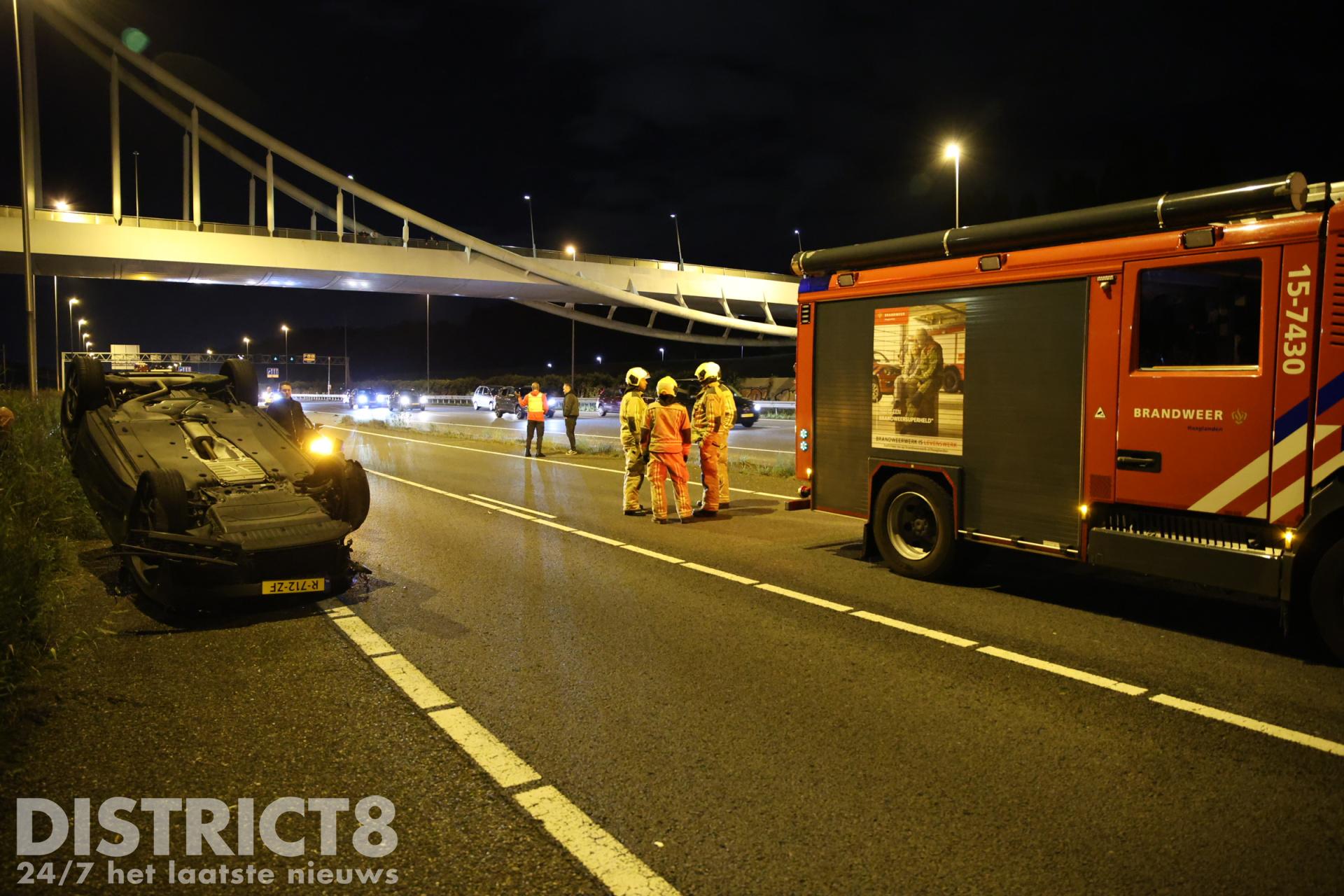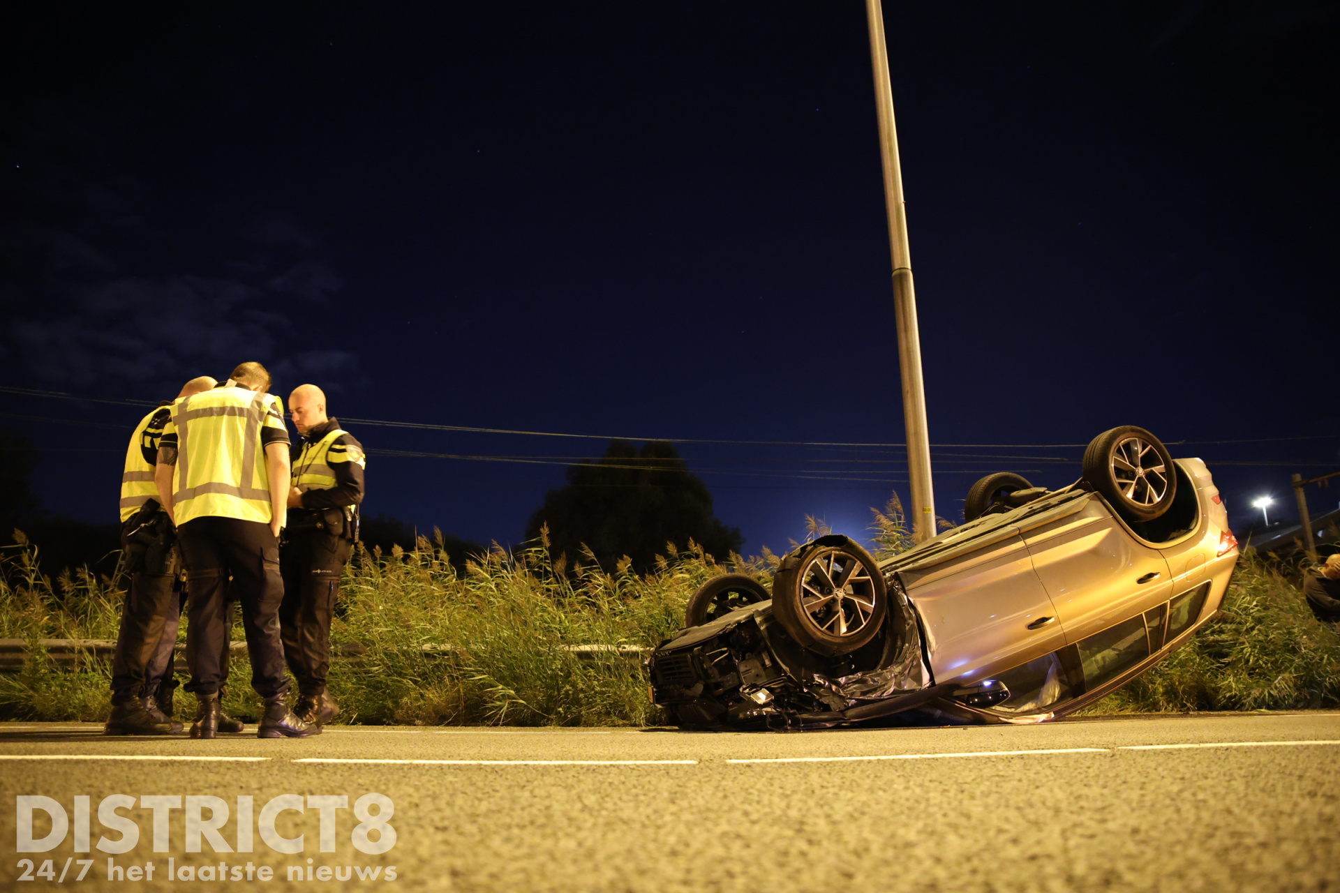De brandweer heeft enkel hand- en spandiensten verricht en zijn daarna retour gegaan naar de kazerne. De betrokkenen raakte niet gewond, een berger is aanwezig om de auto weer op vier wielen te zetten en af te voeren. De schade aan de wagen is groot.