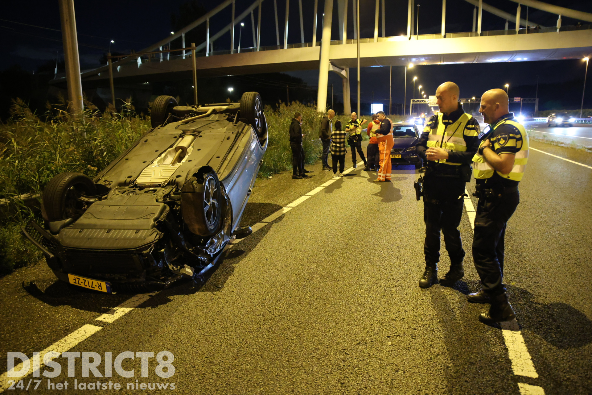 Volgens getuigen kreeg een automobilist een klapband, raakte de macht over het stuur kwijt en vloog over de kop. De automobilist die vanaf de meest linker rijstrook naar de meest rechter rijstrook schoof raakte onderweg een andere auto.