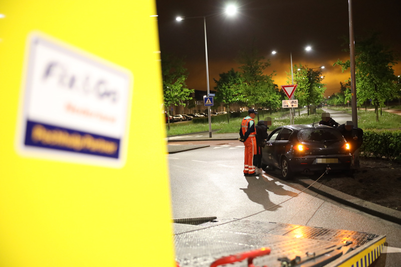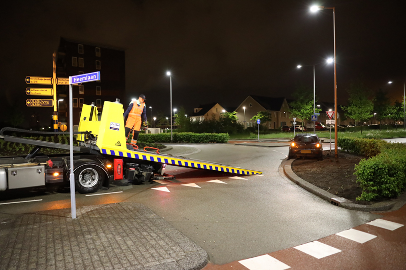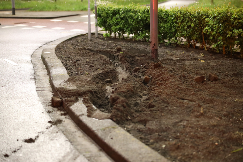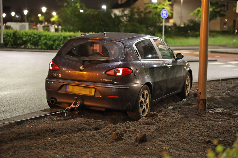 Zoetermeer – Een auto is vrijdagnacht 10 mei vast komen te zitten in de modder naast een rotonde aan de Heemlaan in Zoetermeer.