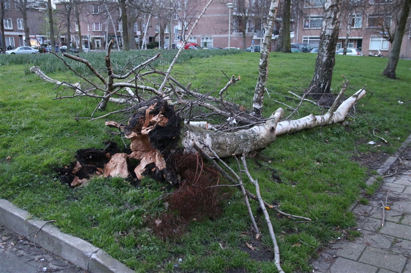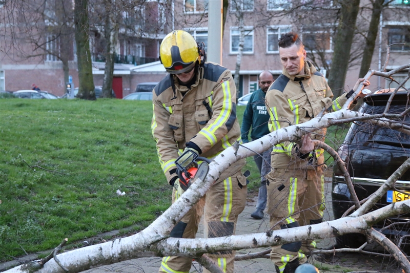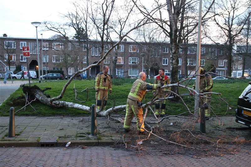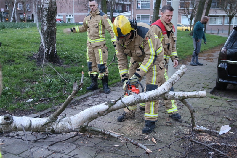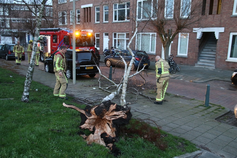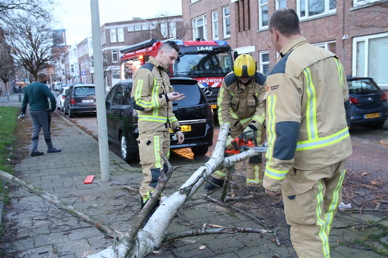 Den Haag – De brandweer had het zaterdag druk door meldingen van stormschades. Ook op de Deimanstraat in Den Haag kwam een melding binnen van een omgevallen boom.