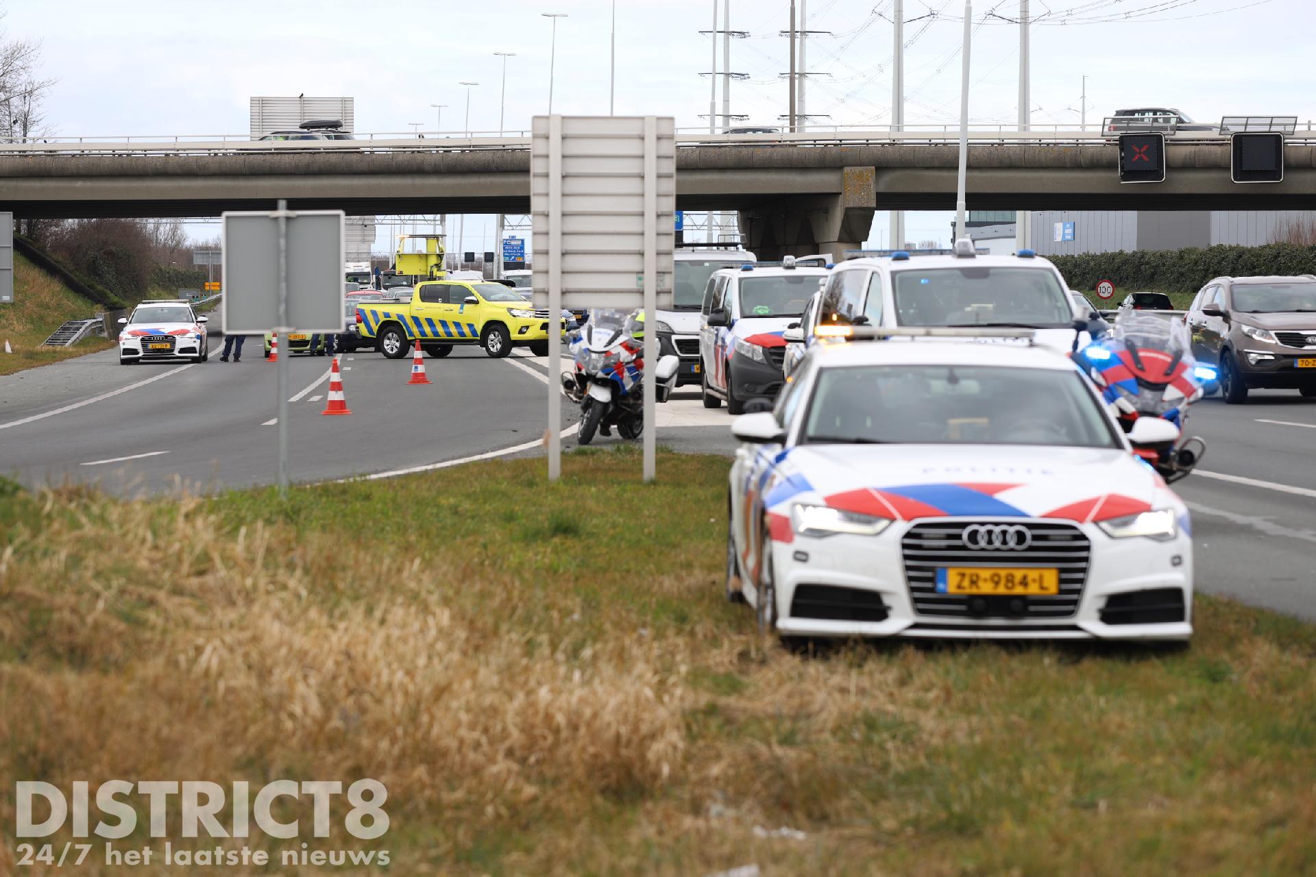 De afrit richting Schipluiden/Den Hoorn is afgesloten. Ook is er richting Rotterdam een rijbaan afgesloten. De politie doet onderzoek naar de toedracht van het ongeval.
