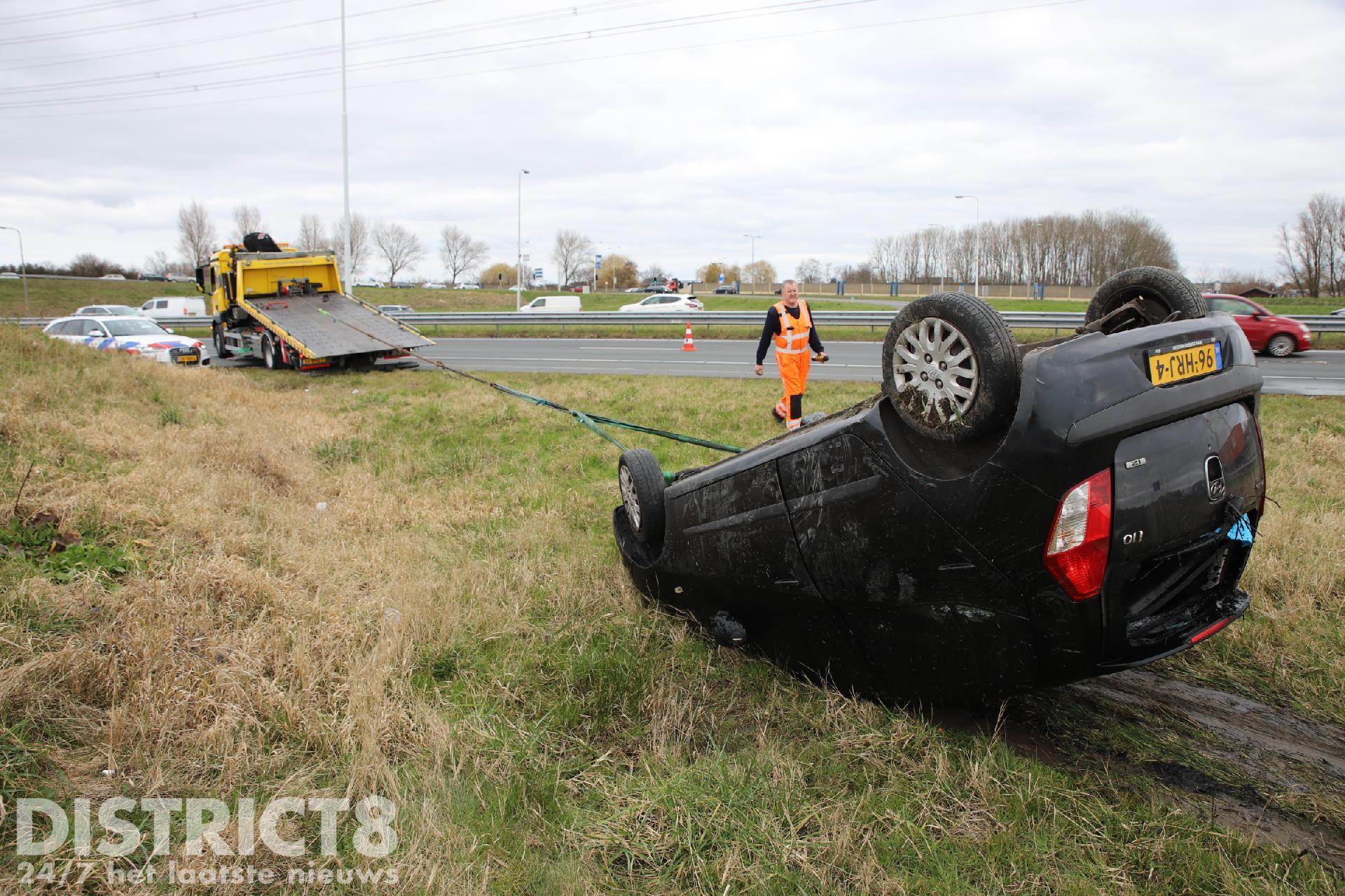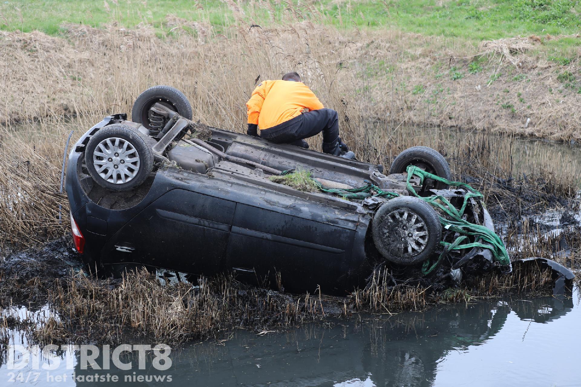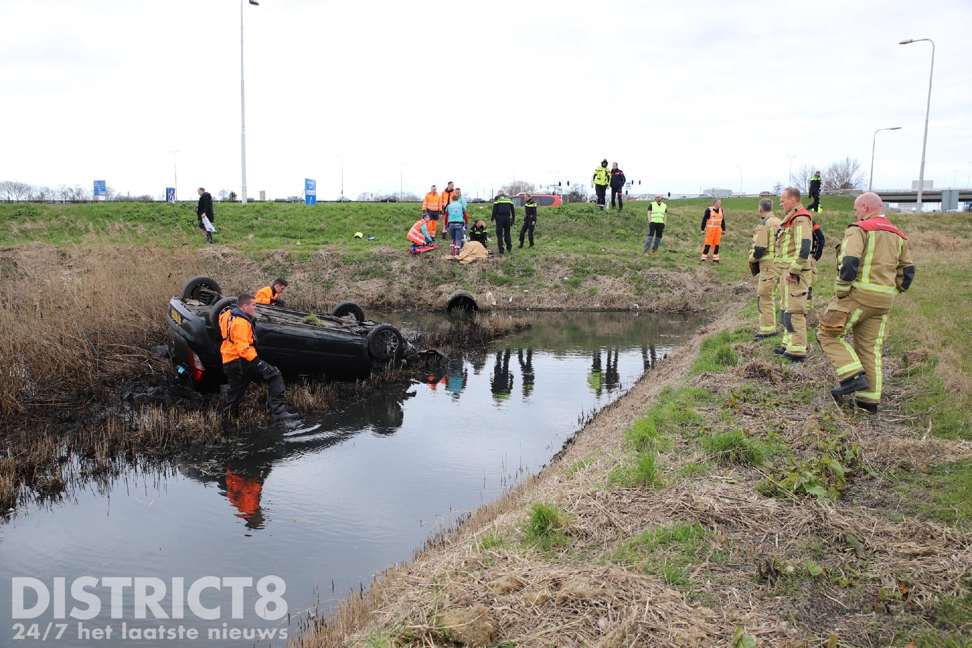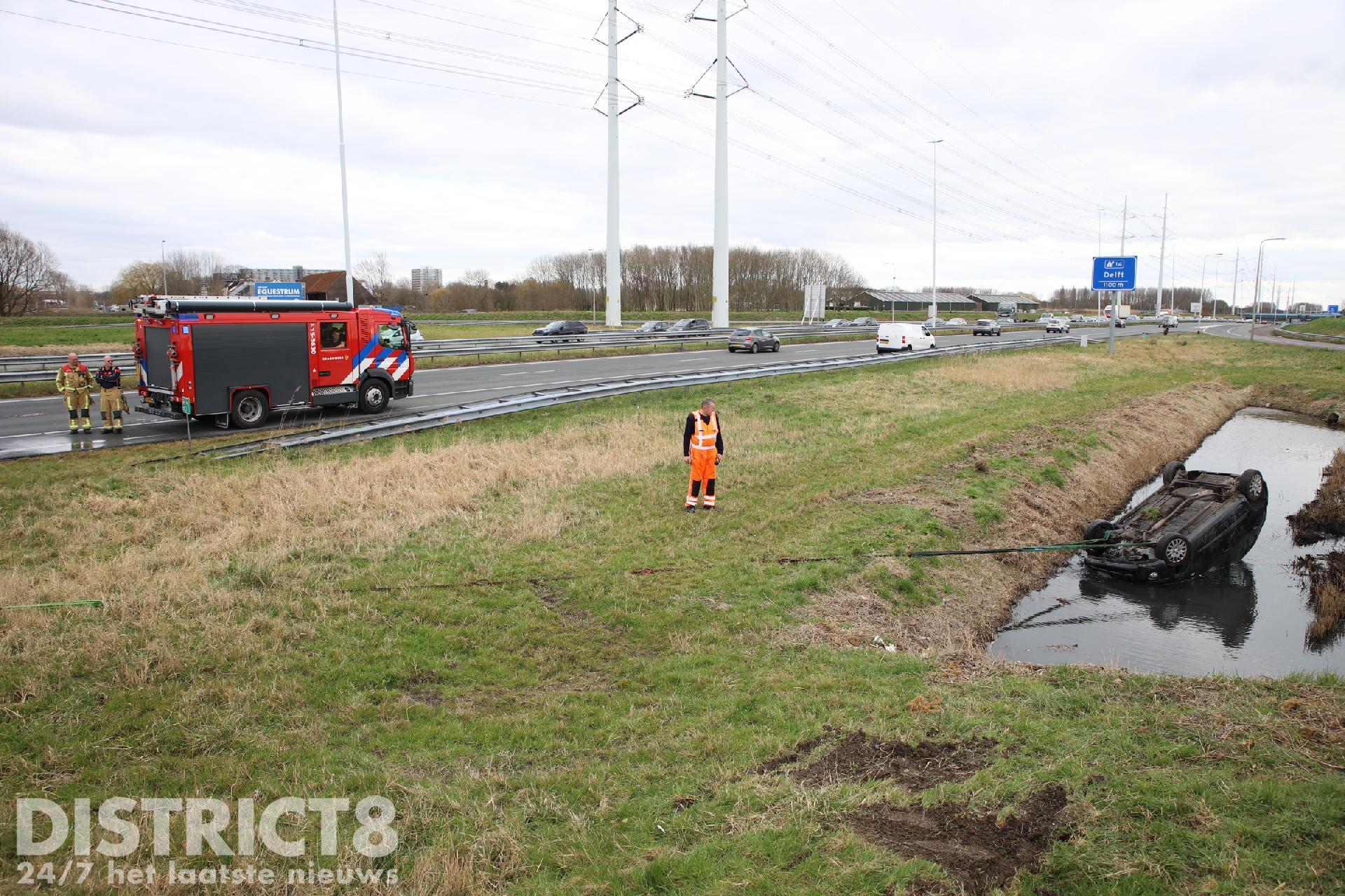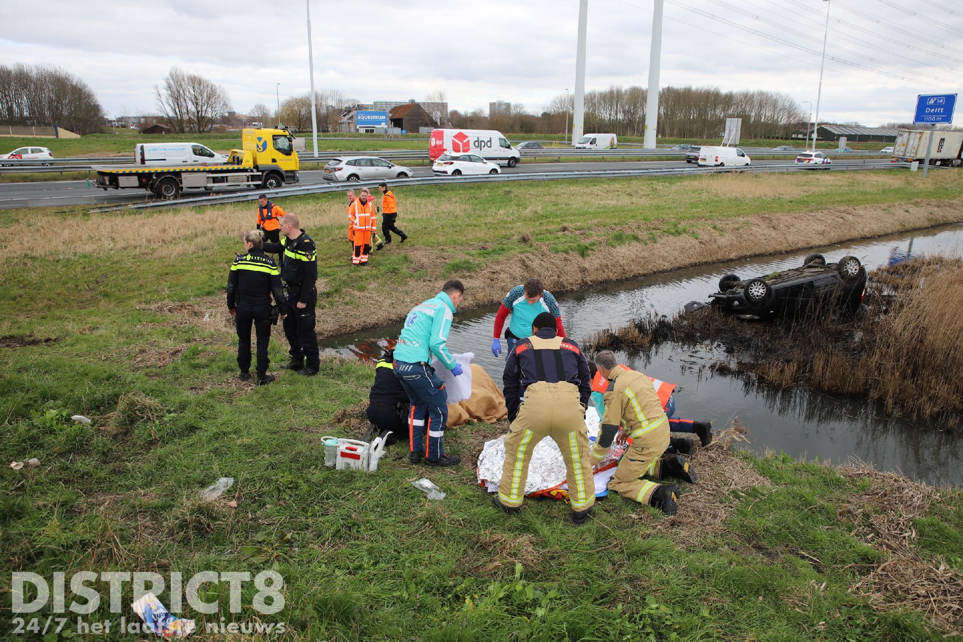 Schipluiden – Bij een heftig ongeval op de A4 bij Schipluiden is vrijdagmiddag 3 maart een auto ondersteboven in het water terecht gekomen.