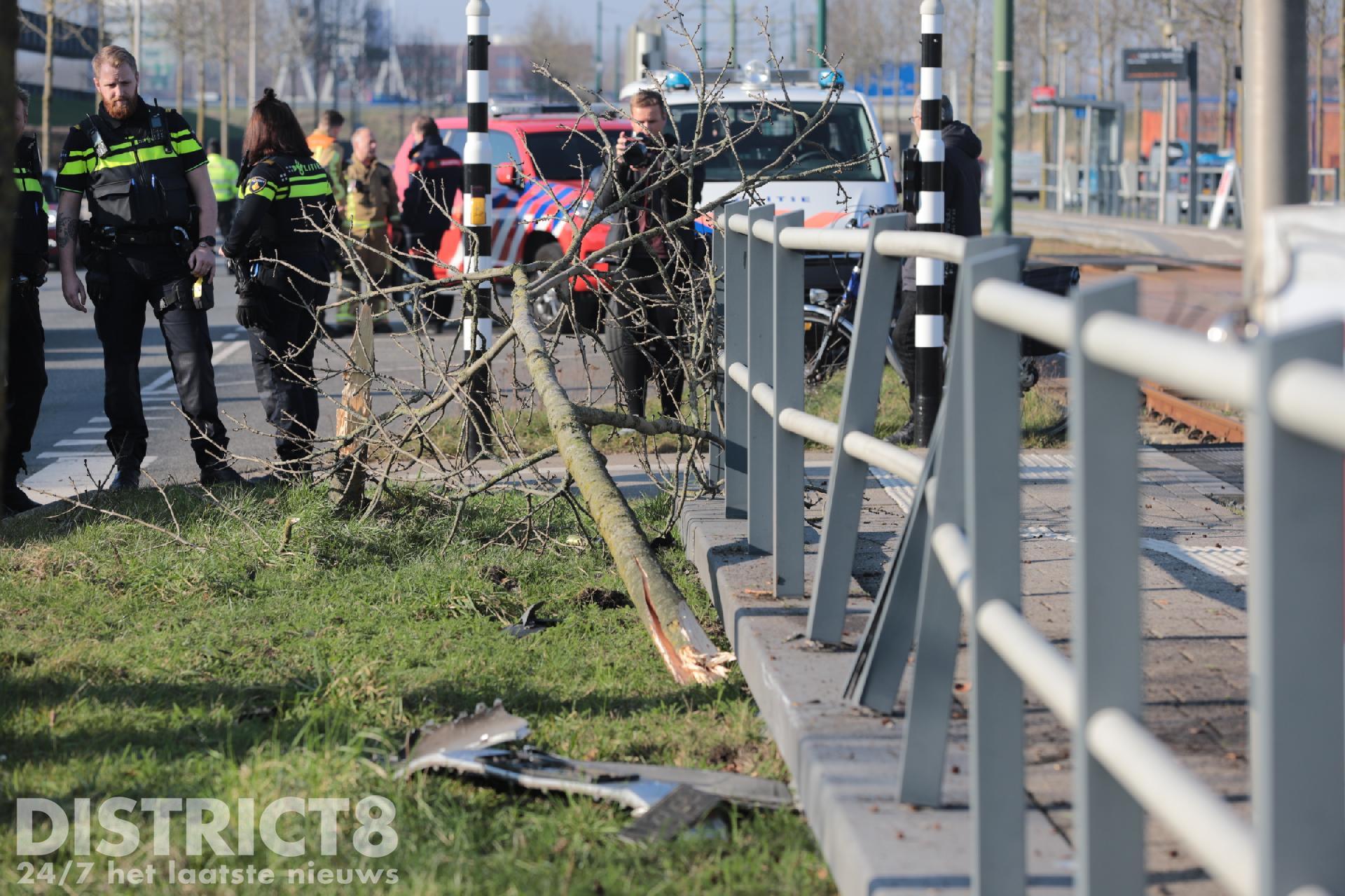 Hierbij raakte ze onder andere een boompje en de tramhalte.