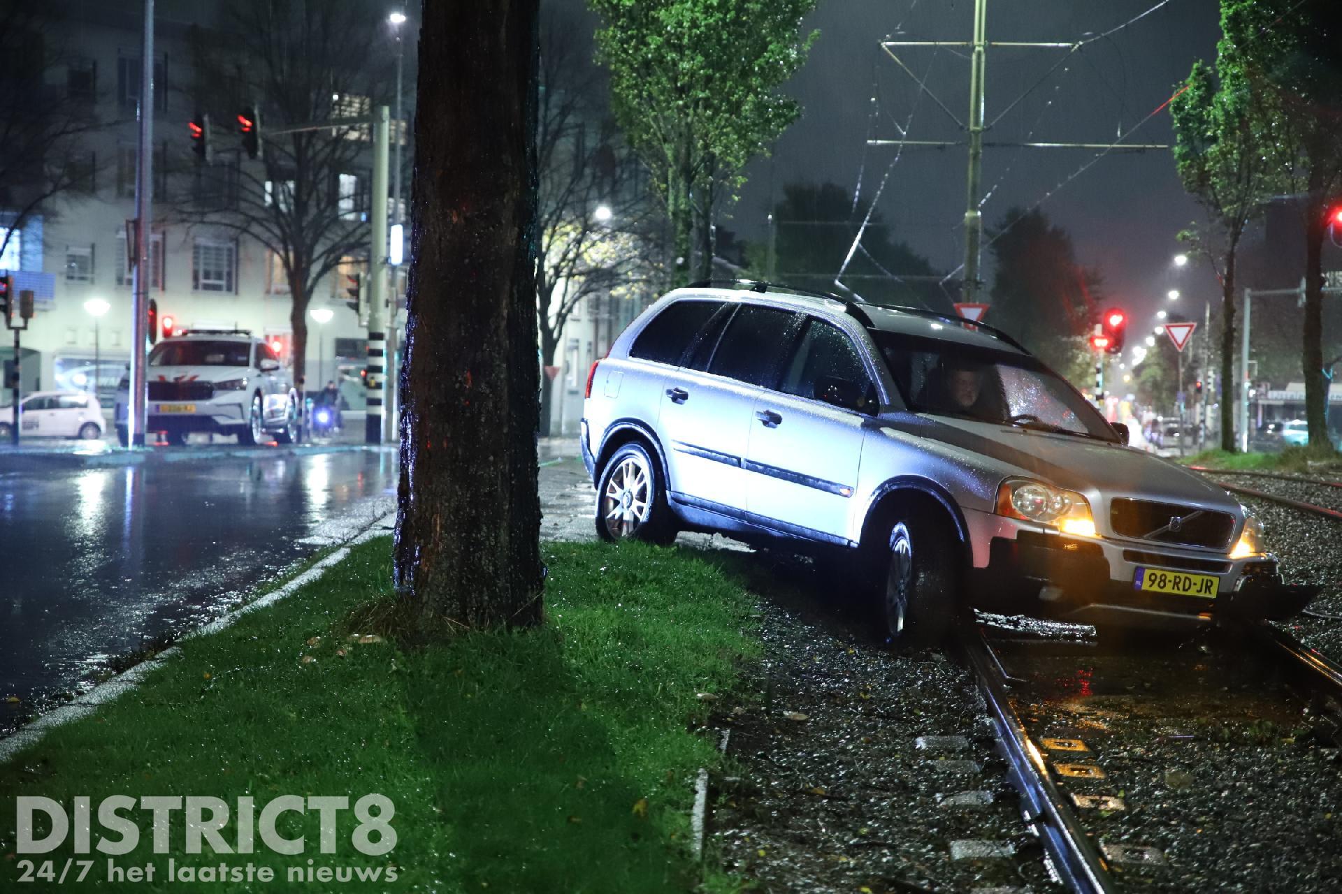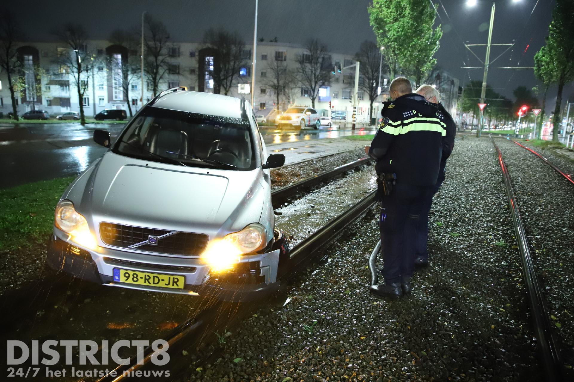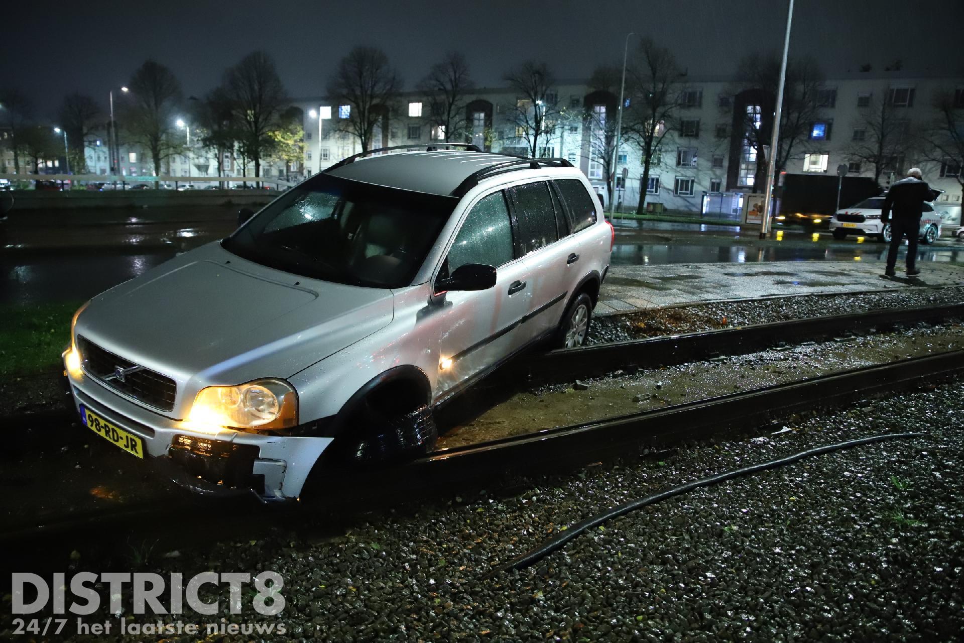 Het zelfstandig verlaten van de trambaan was niet meer mogelijk. De auto raakte flink beschadigd.