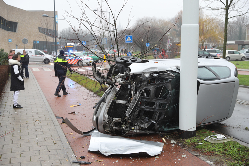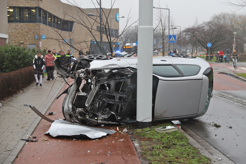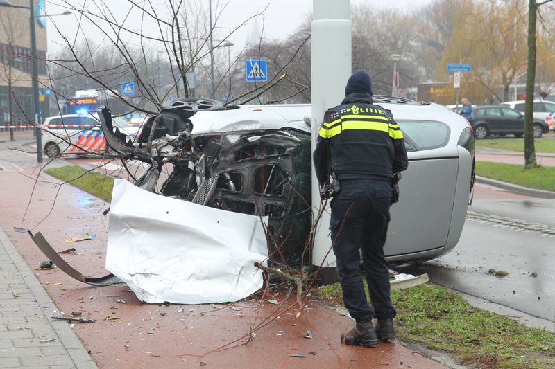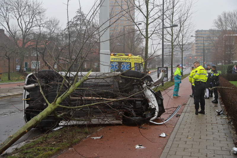 De politie sloot bij aankomst de Ruys de Beerenbroeckstraat af tussen de Prinses Beatrixlaan en de Kappeyne van de Coppellostraat. De schade aan het voertuig en het boompje is flink. Volgens getuigen kwam het voertuig met hoge snelheid aangereden. De verkeerspolitie heeft daarom bij de naastgelegen Albert Heijn camerabeelden veilig gesteld voor het onderzoek.