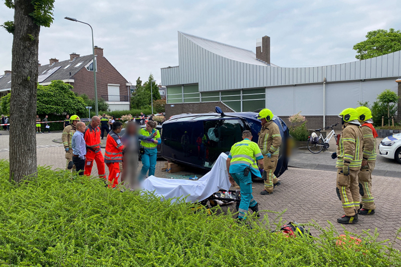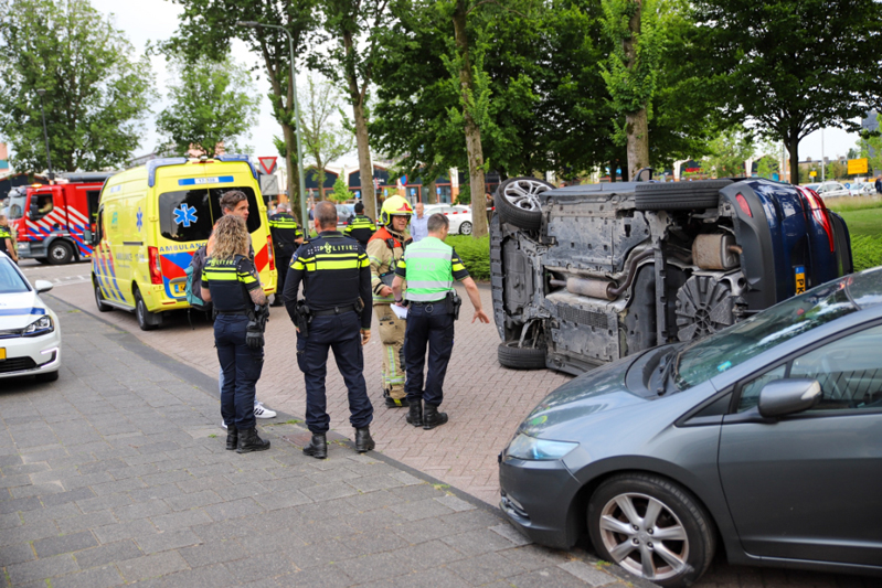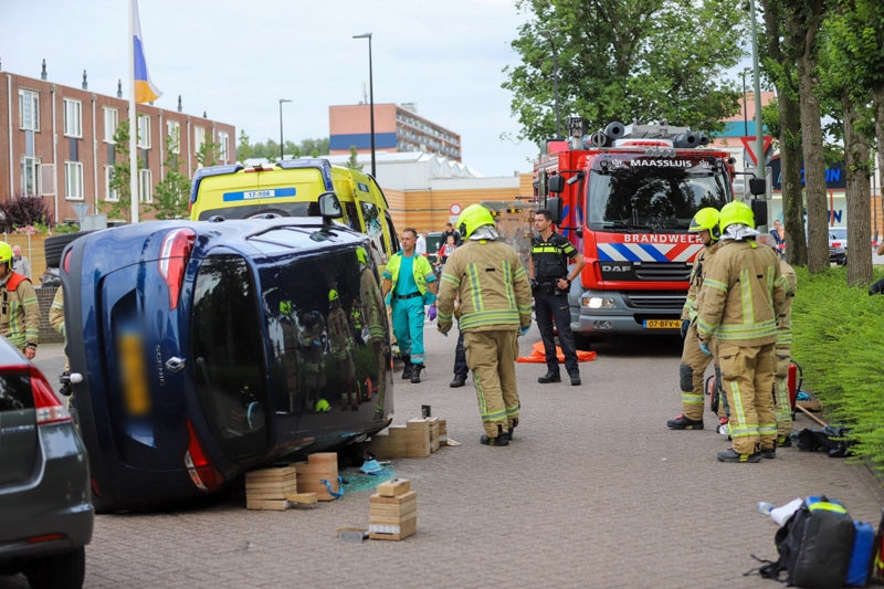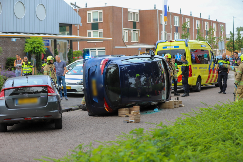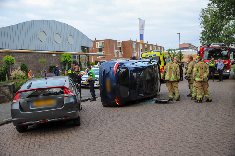 Maassluis – Woensdagavond is op de Lijsterlaan een auto op zijn kant terecht gekomen na een aanrijding met een andere auto. De politie, brandweer en de traumahelikopter werden met spoed ter plaatse gevraagd bij het ongeval omdat er mogelijk een slachtoffer bekneld zat in de auto.