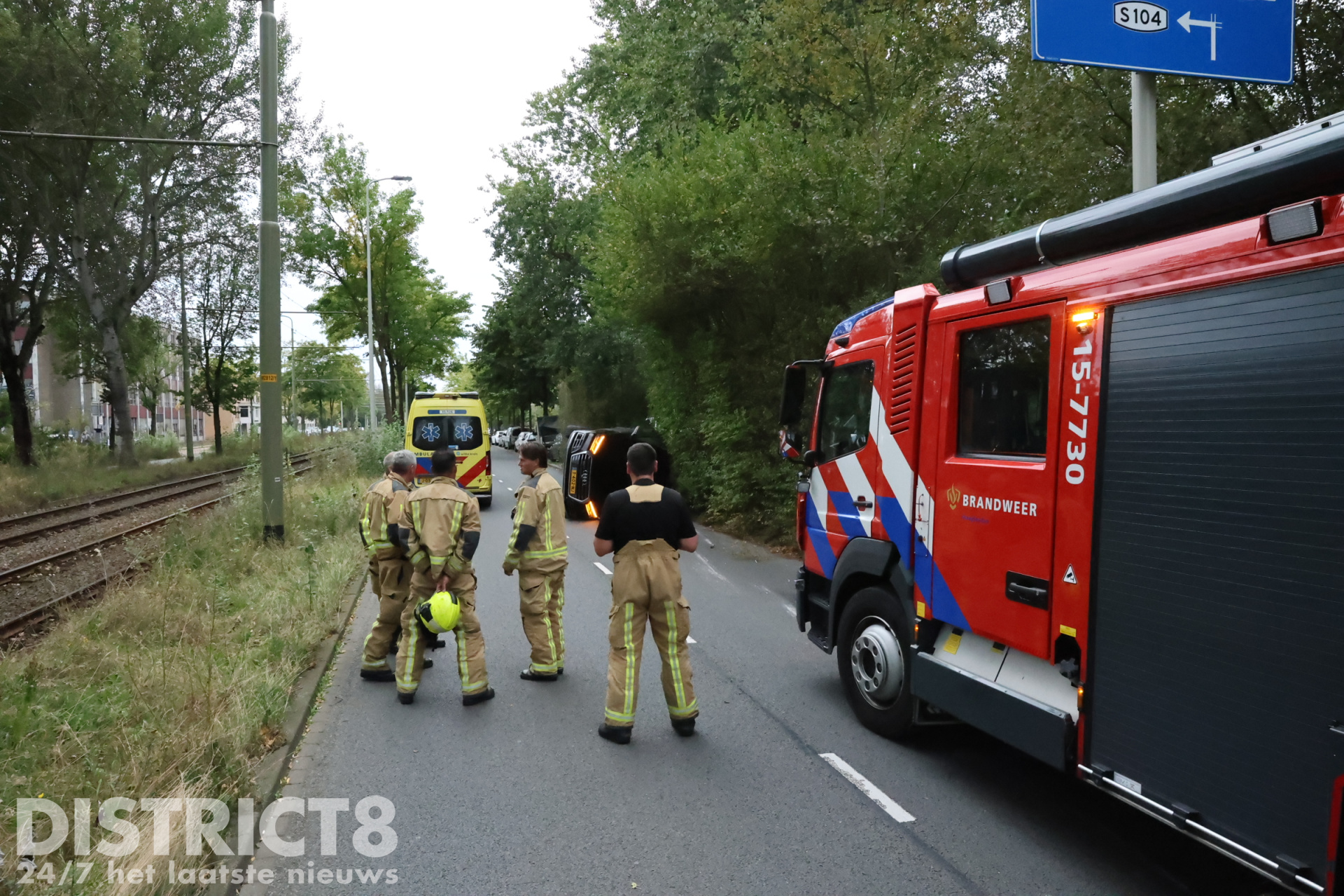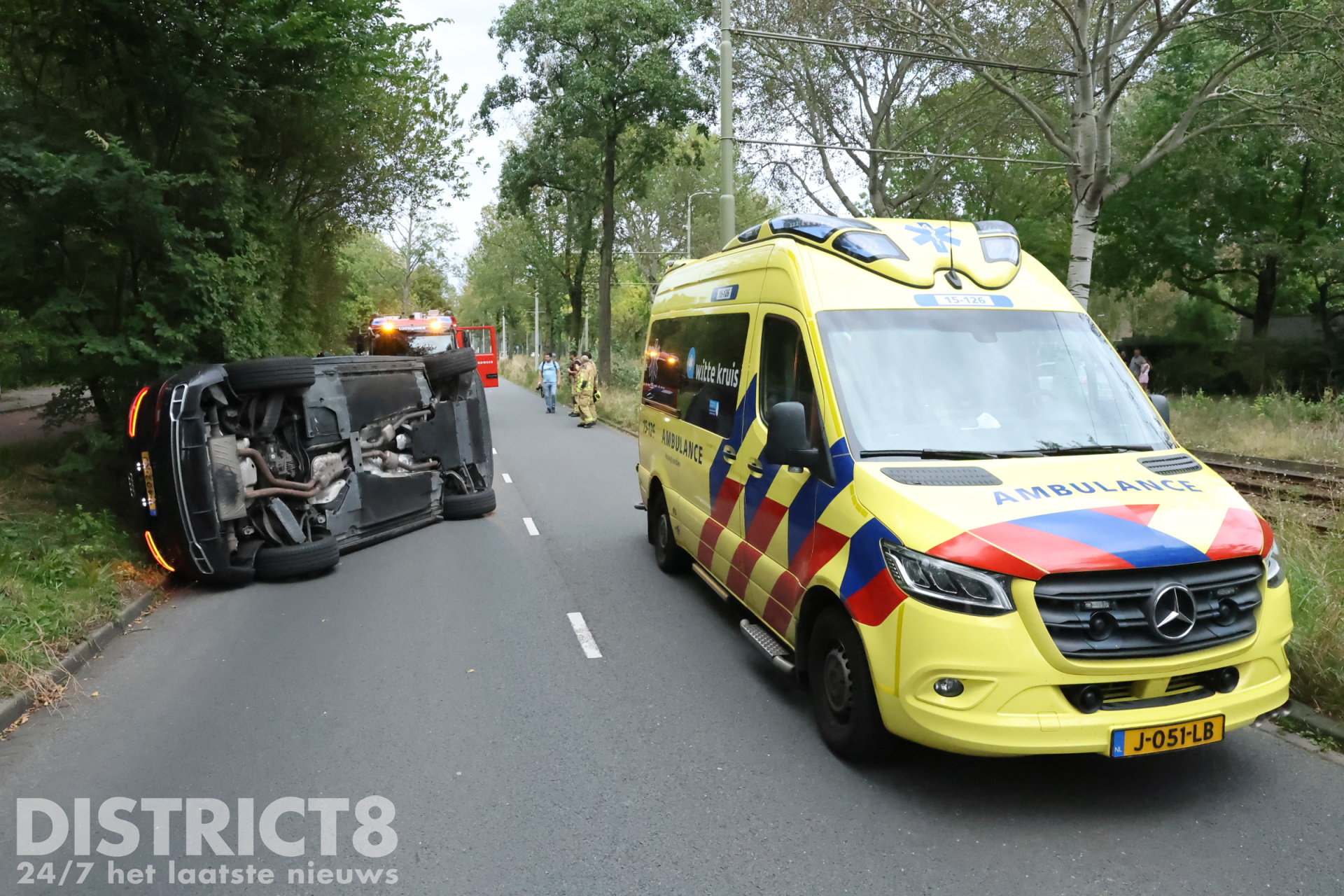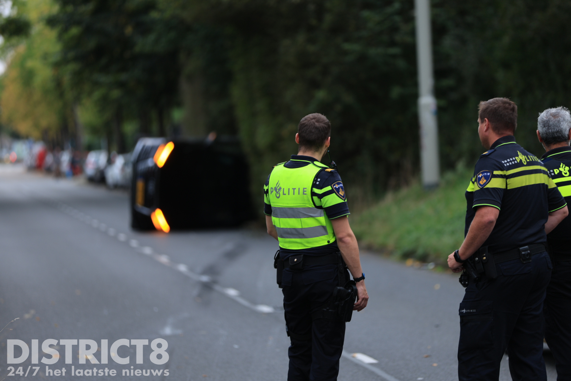 Den Haag – Bij een aanrijding op de Oude Haagweg in Den Haag is zondagavond een auto op zijn kant belandt.