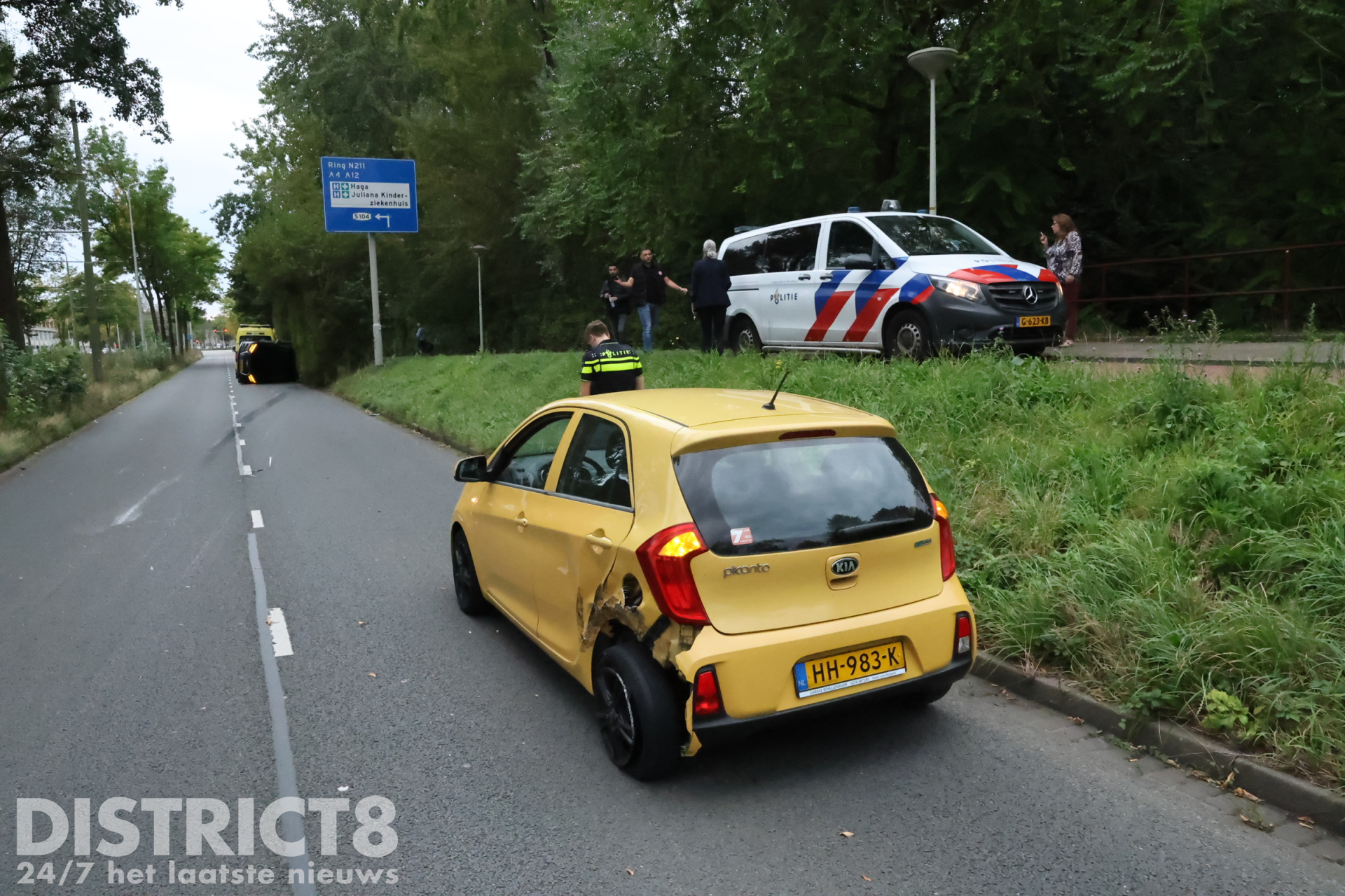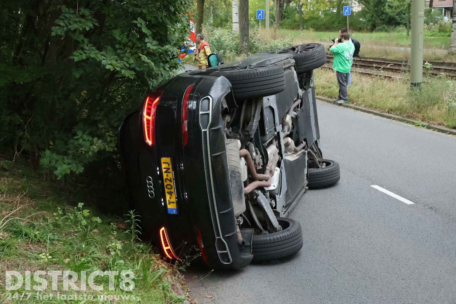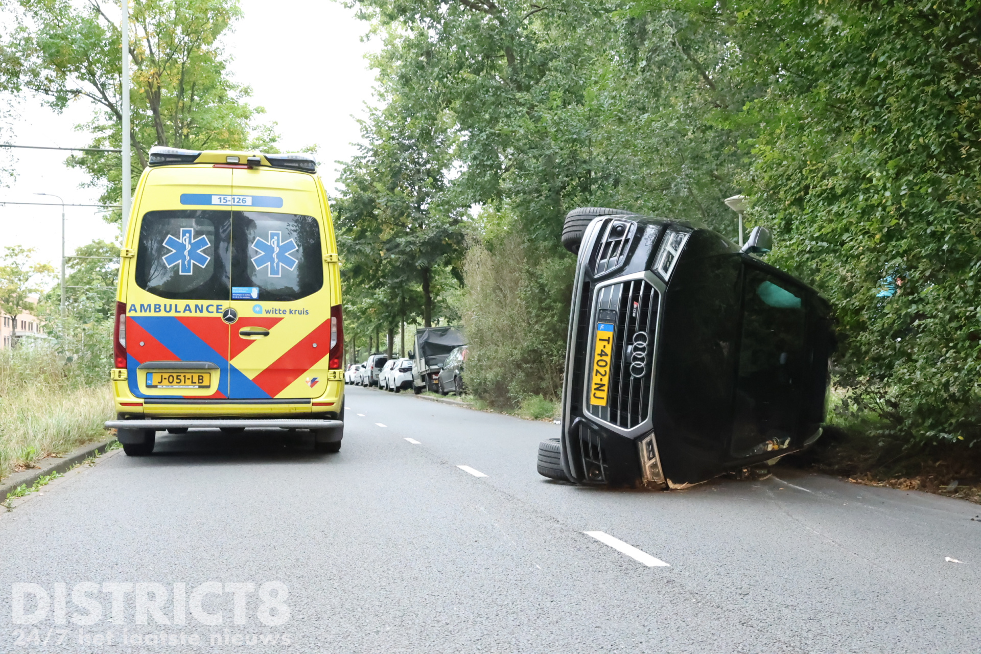 Den Haag – Bij een aanrijding op de Oude Haagweg in Den Haag is zondagavond een auto op zijn kant belandt.
