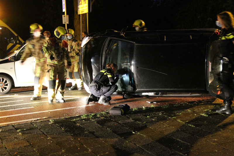 Delft – Maandagavond 5 oktober heeft een verkeersongeval plaats gevonden op het Westplantsoen in Delft. Bij een aanrijding tussen twee auto’s kwam een van beide auto’s op z’n kant terecht.
