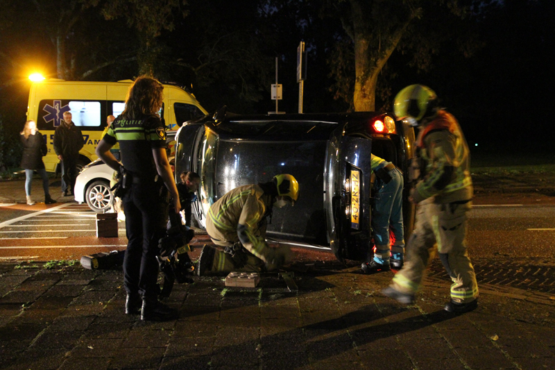 De bestuurster van dit voertuig kwam hierbij bekneld te zitten en moest door de brandweer worden bevrijd uit haar benarde positie. De dame werd ter plaatse nagekeken in een van de met spoed ter plaatse gekomen ambulances. Bij het ongeval raakte nog iemand gewond, ook deze persoon is in een ambulance ter plaatse gecontroleerd op verwondingen.