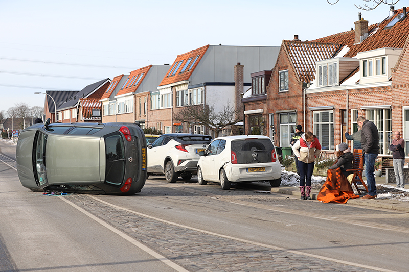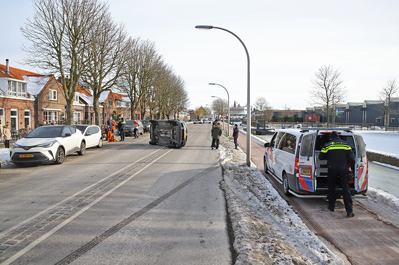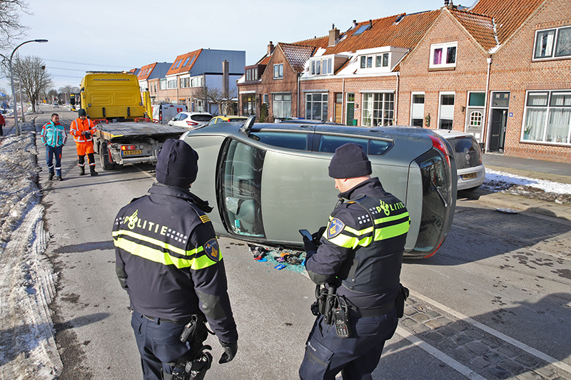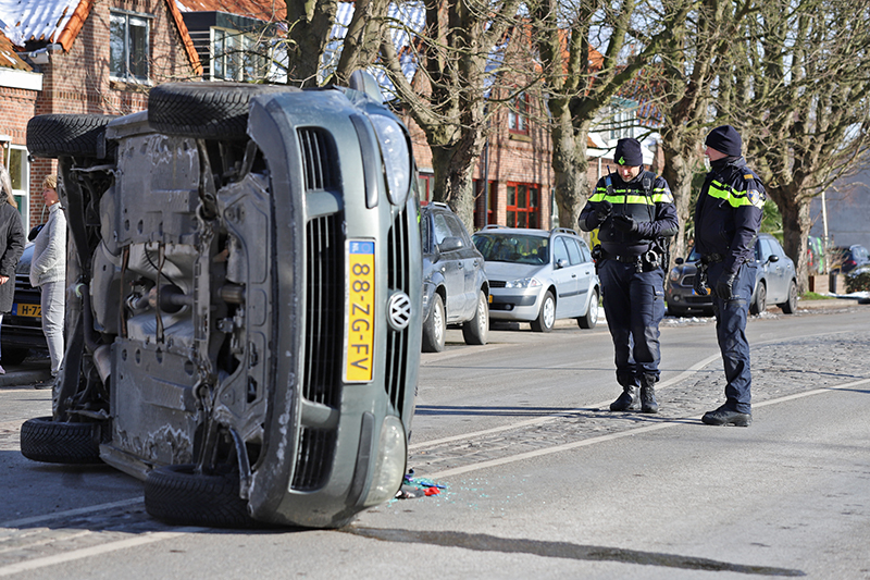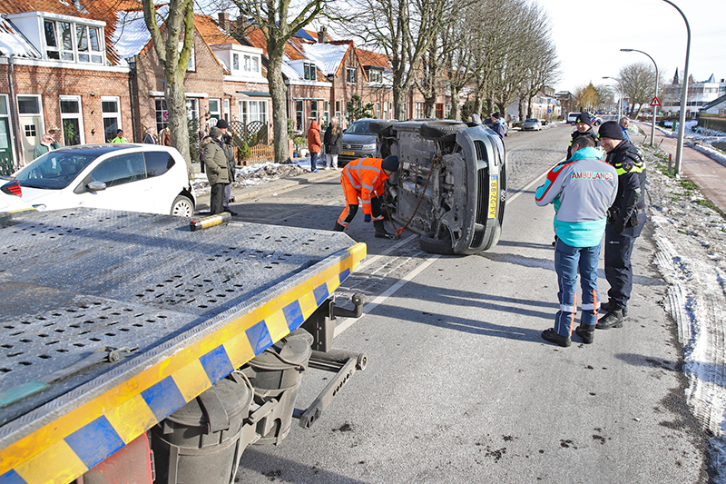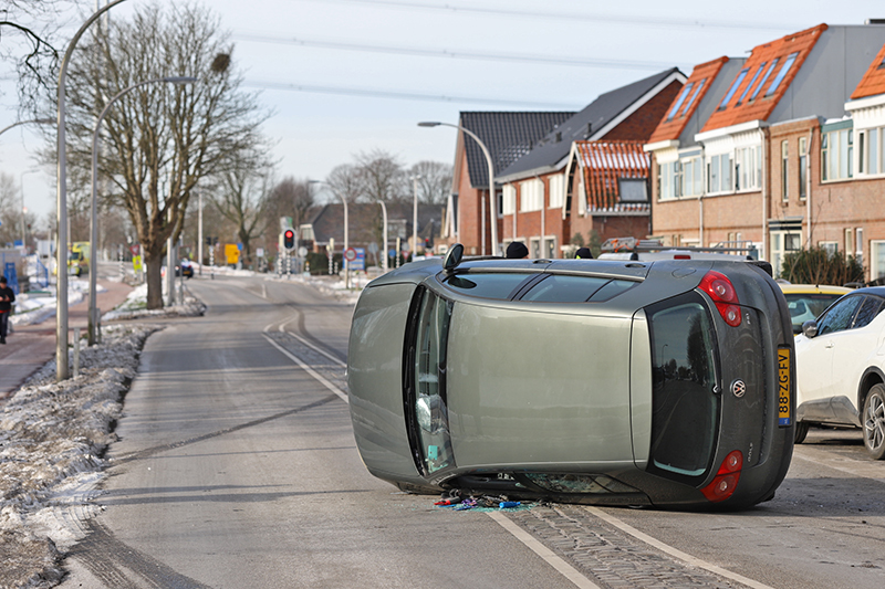 Door de klap kwam de bestuurder met haar voertuig op z’n zijkant tot stilstand. De vrouw raakte licht gewond. De Woudseweg was door het ongeval lange tijd afgesloten.
