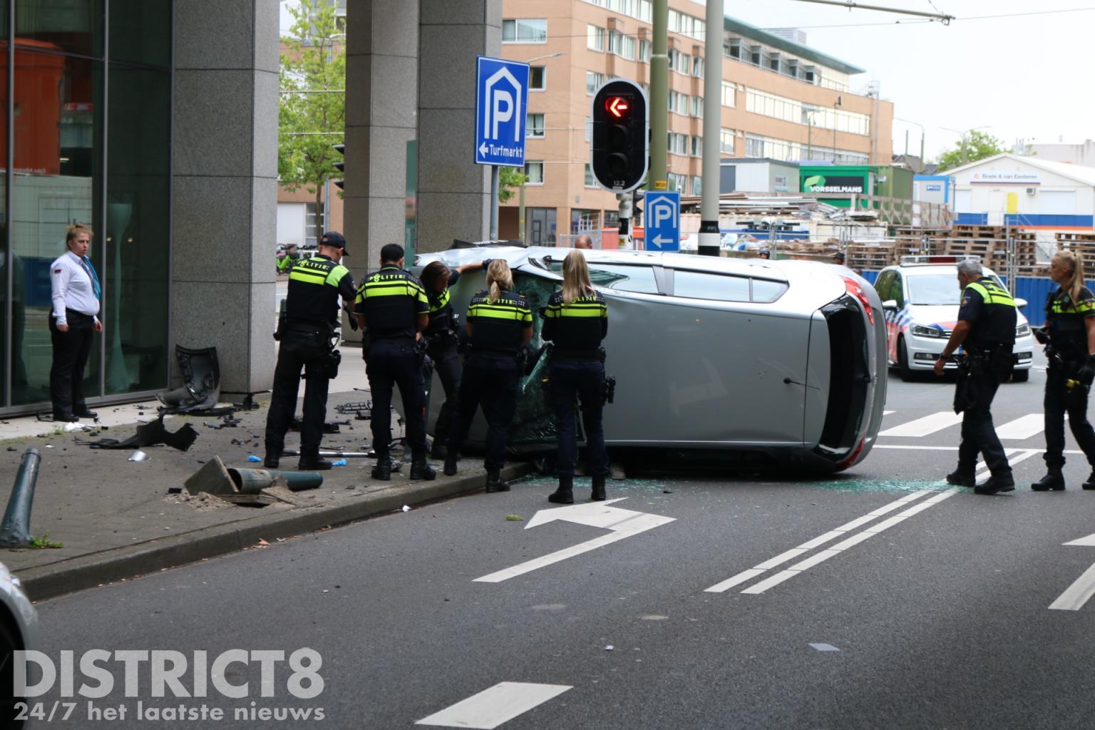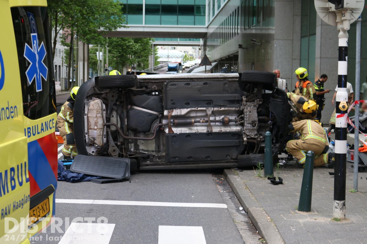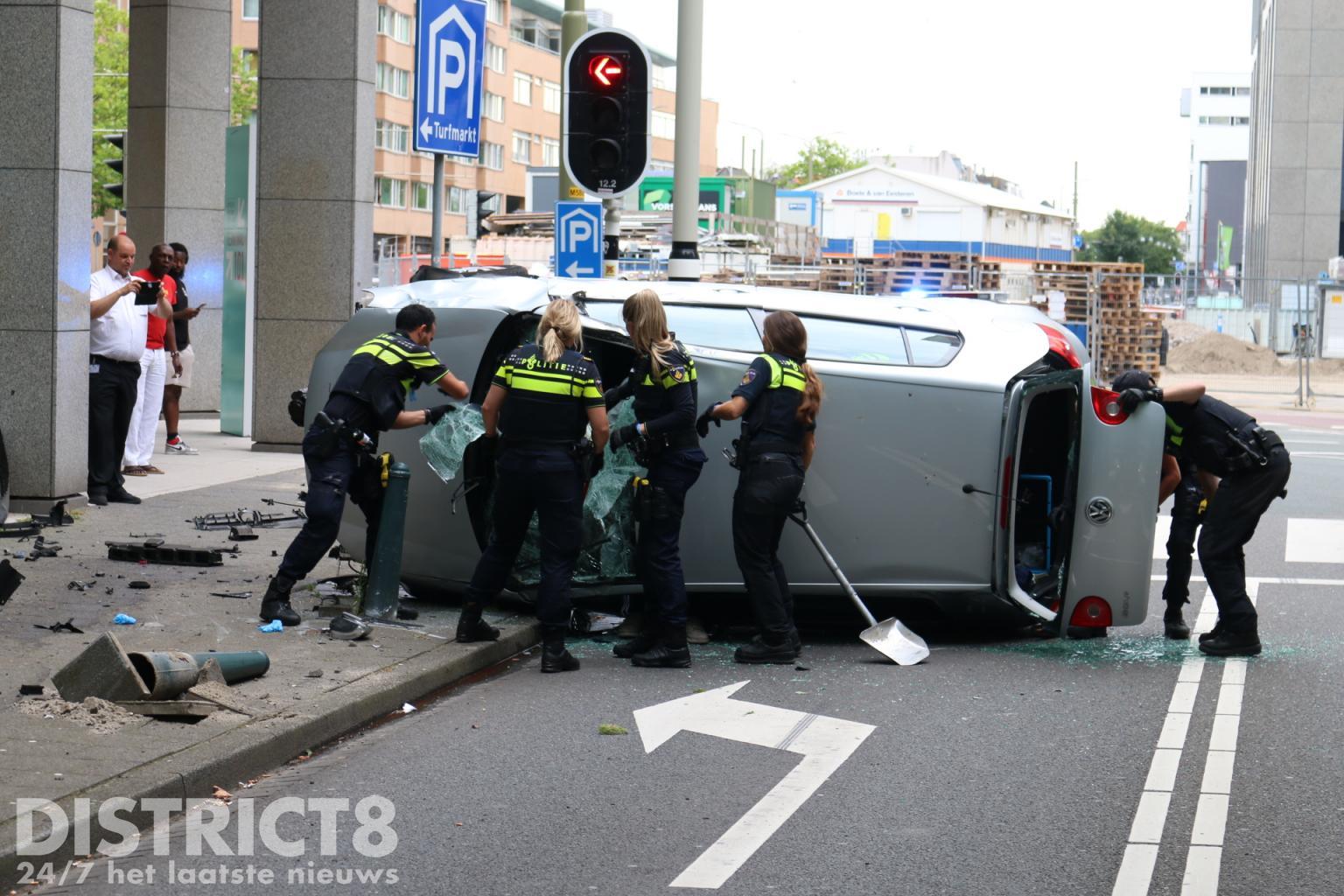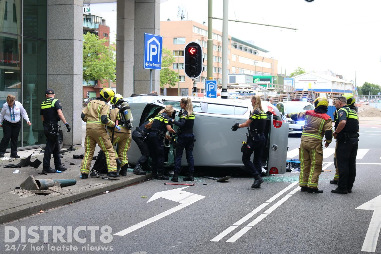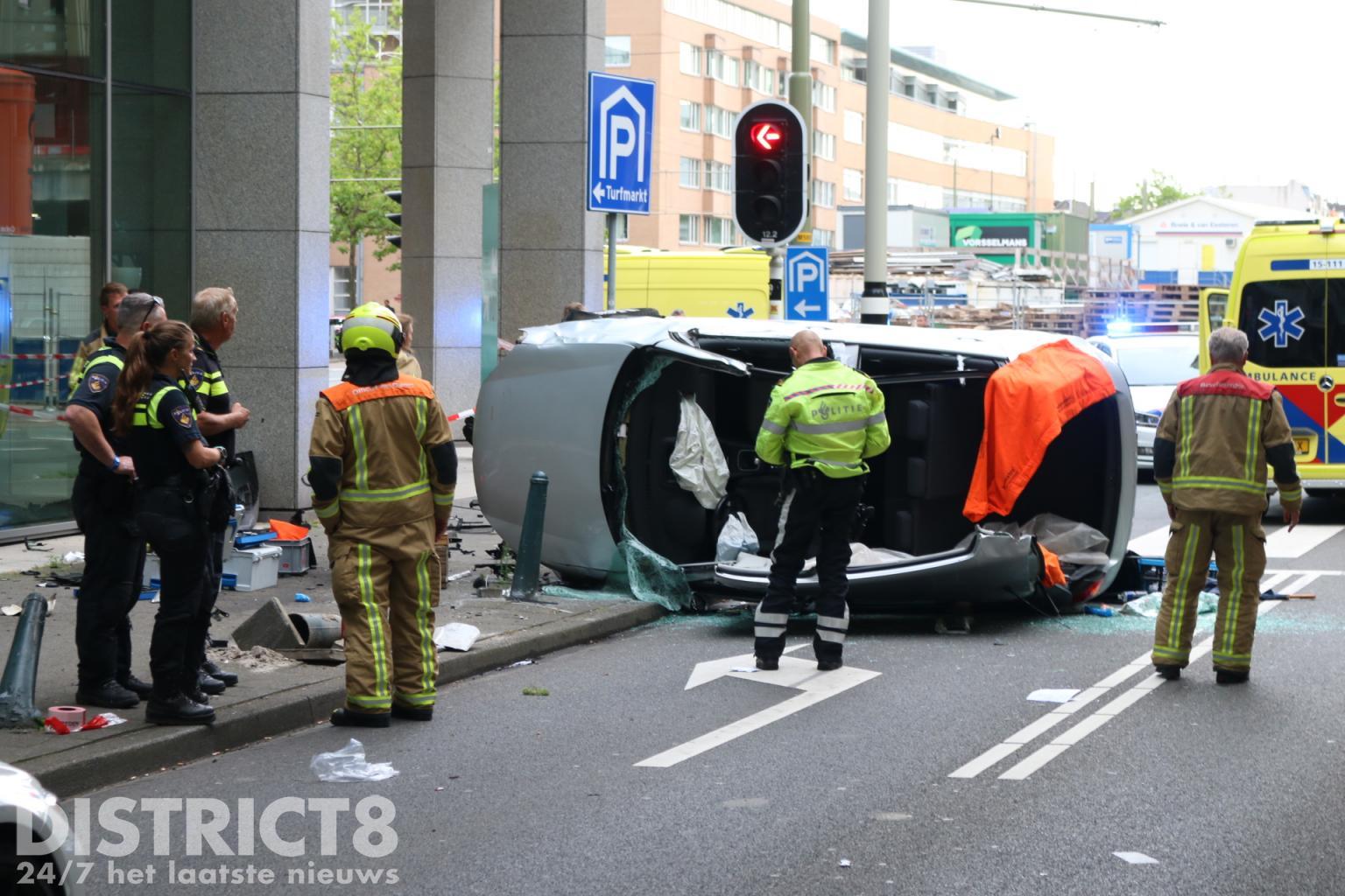 Den Haag – Vrijdagavond 22 juli is er op de Schedeldoekshaven een auto op zijn kant beland na een ongeval.