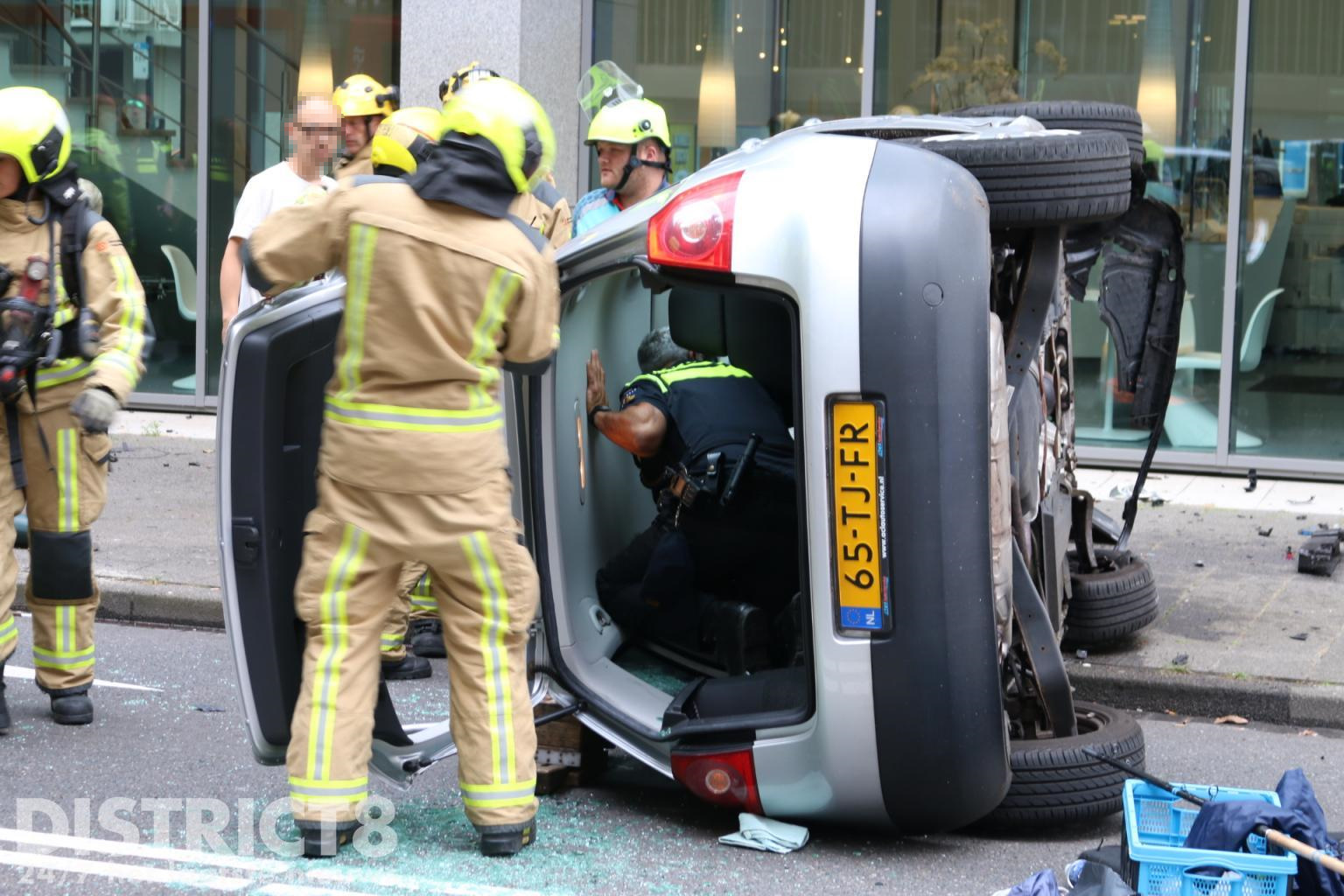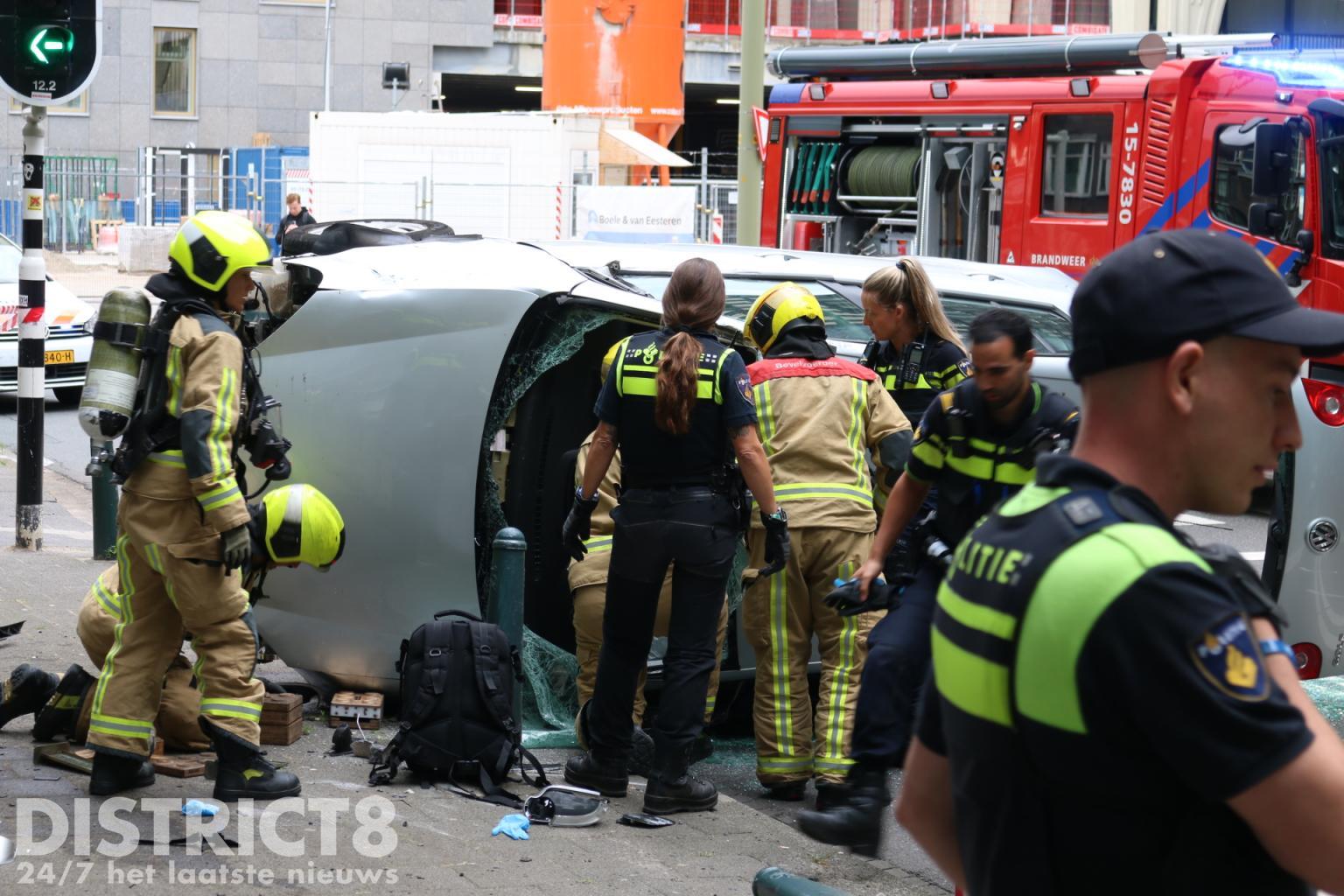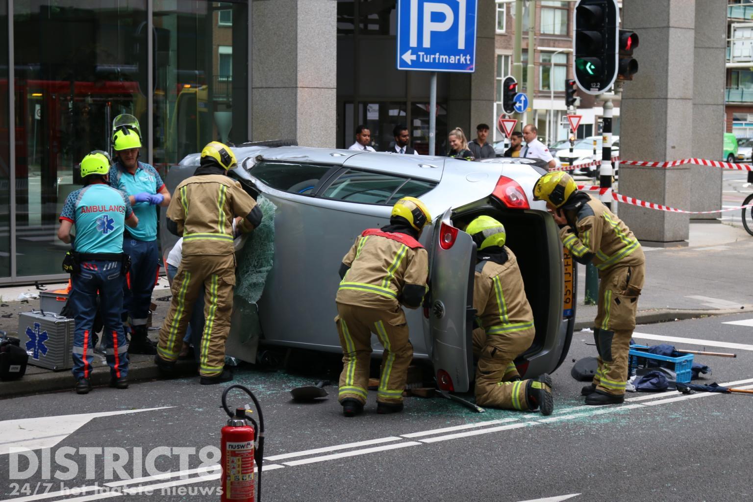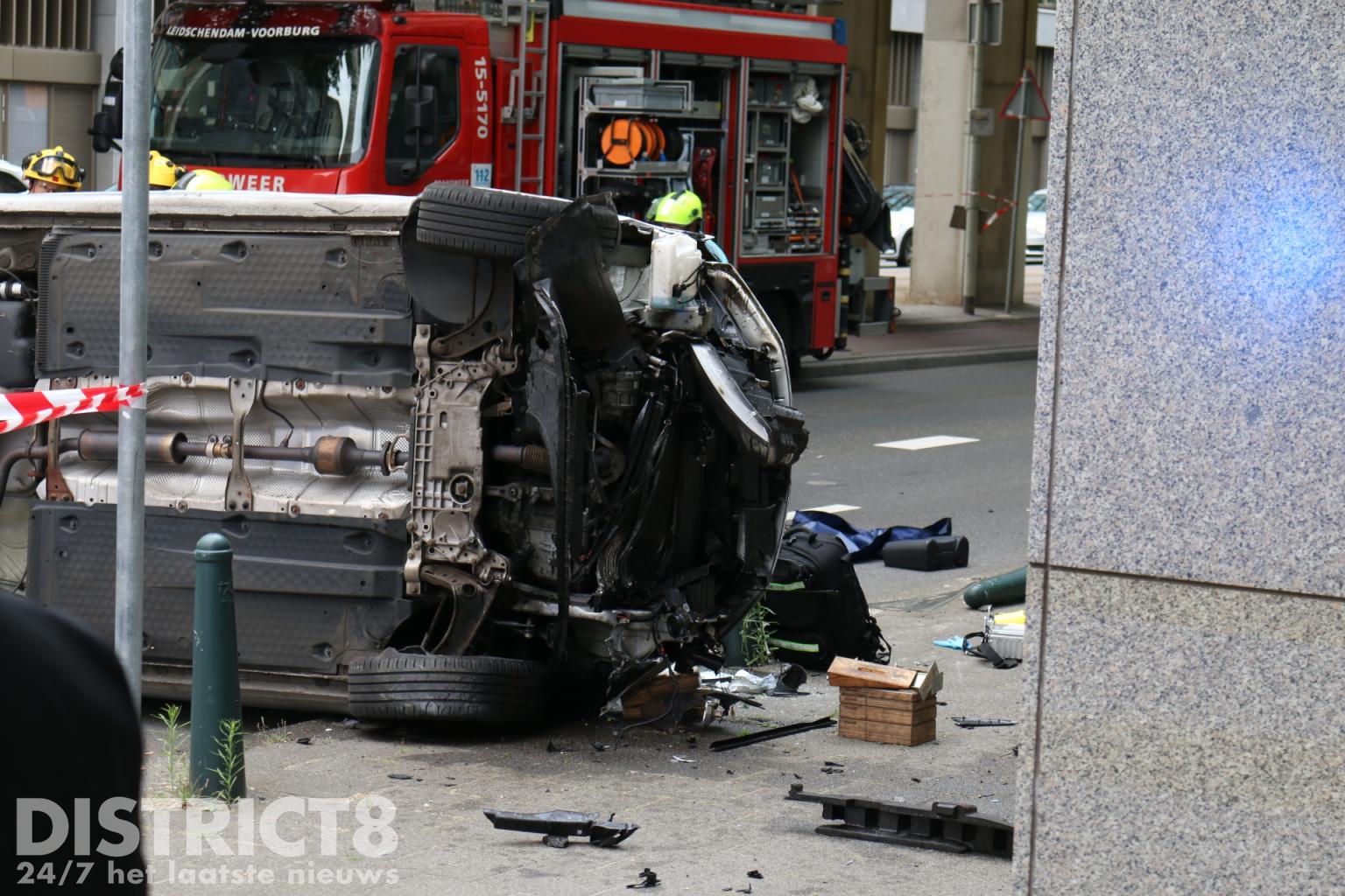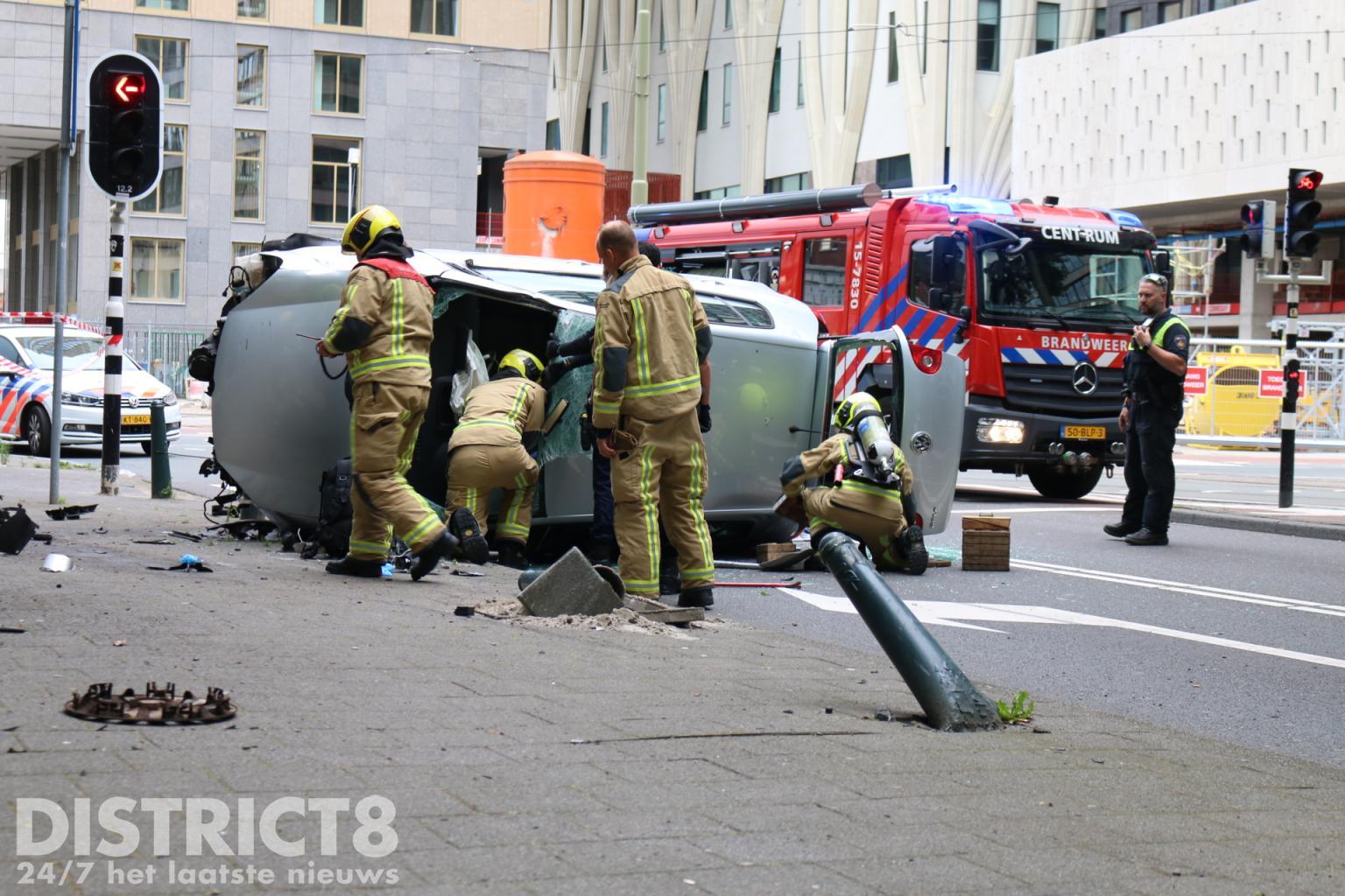 Den Haag – Vrijdagavond 22 juli is er op de Schedeldoekshaven een auto op zijn kant beland na een ongeval.