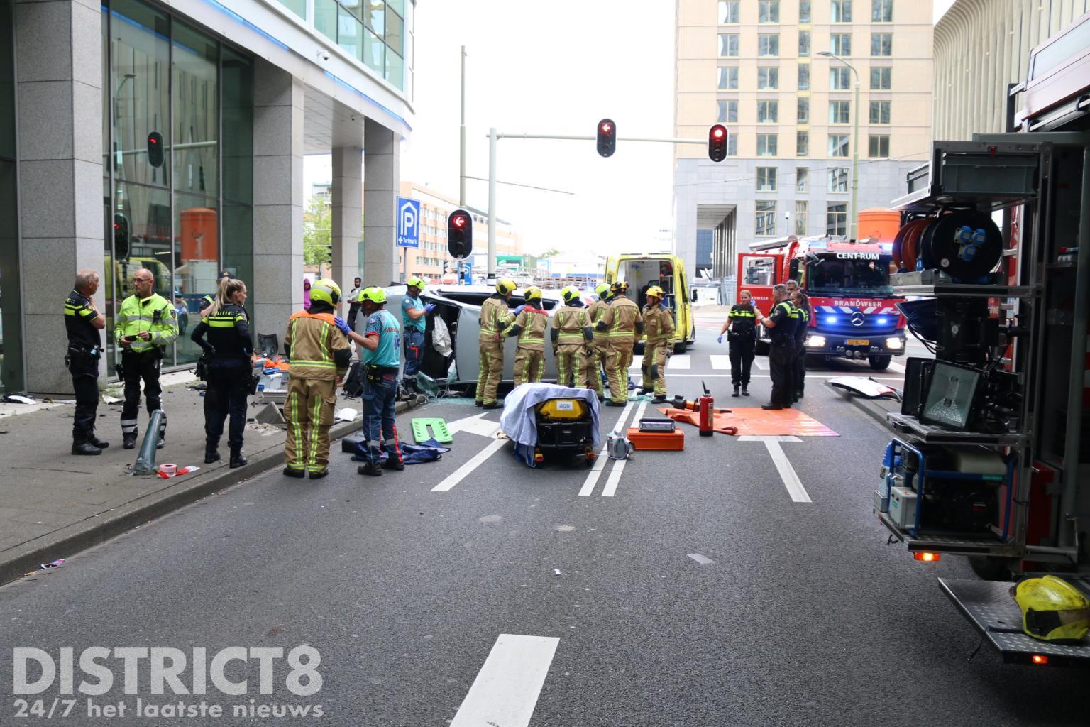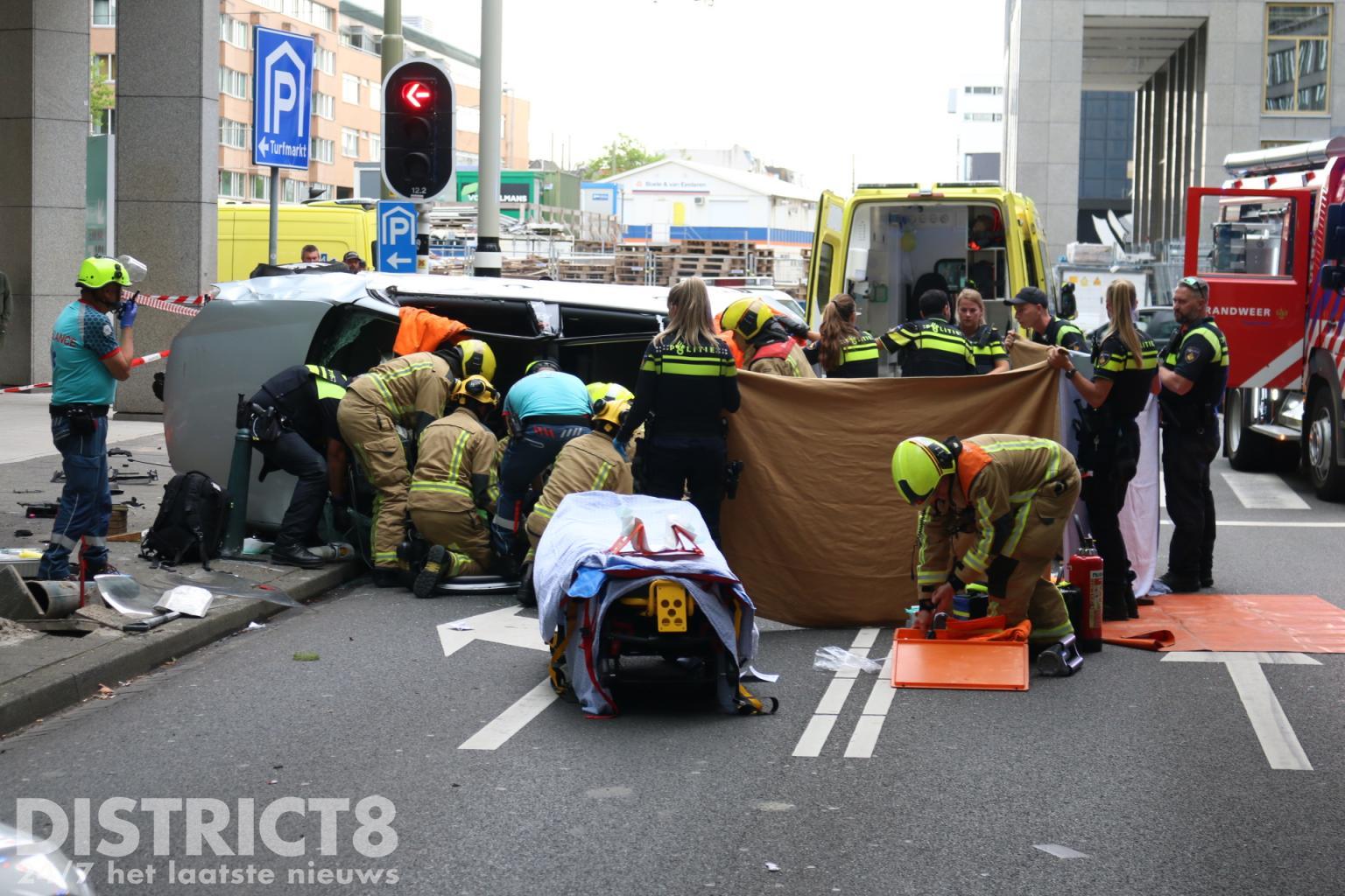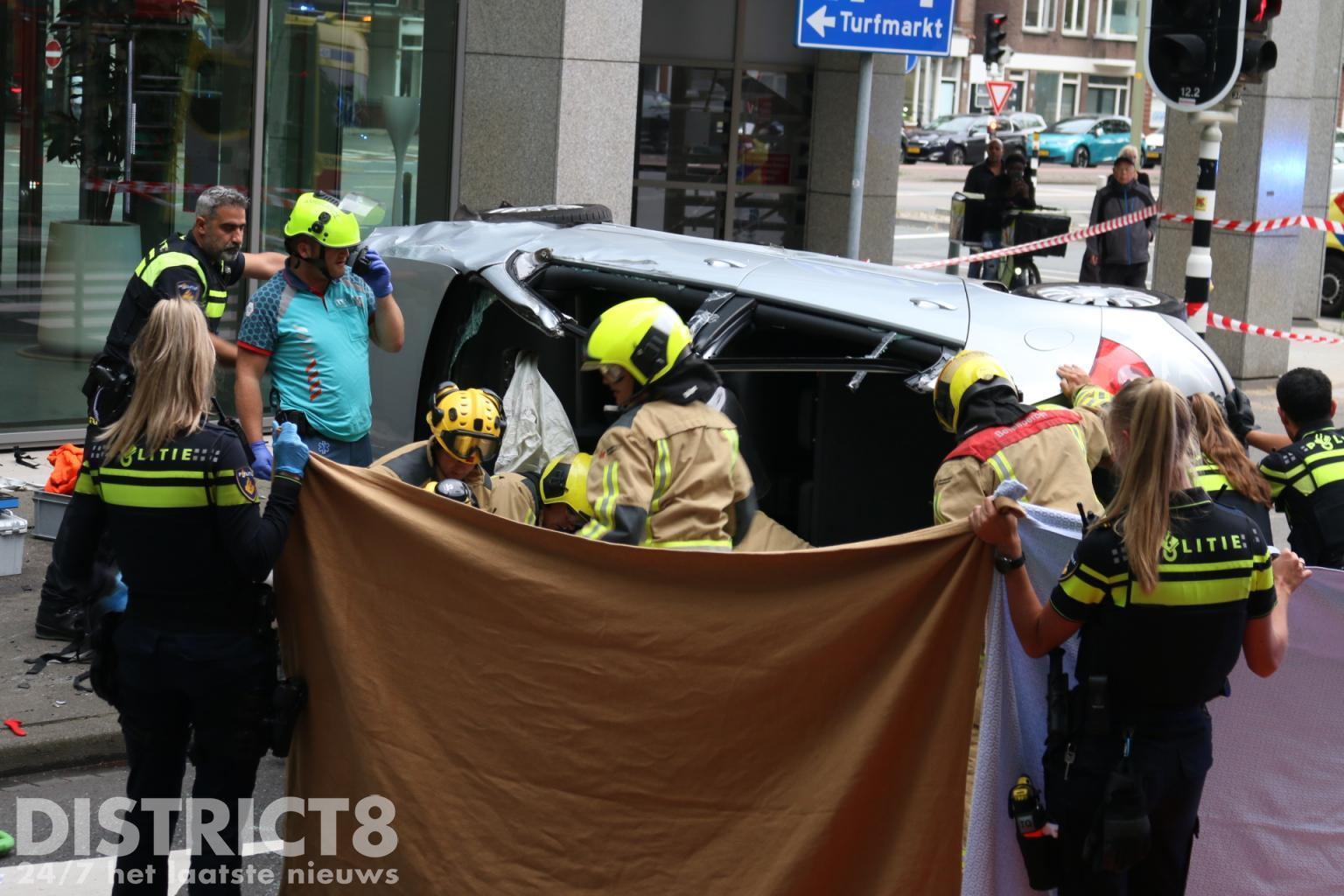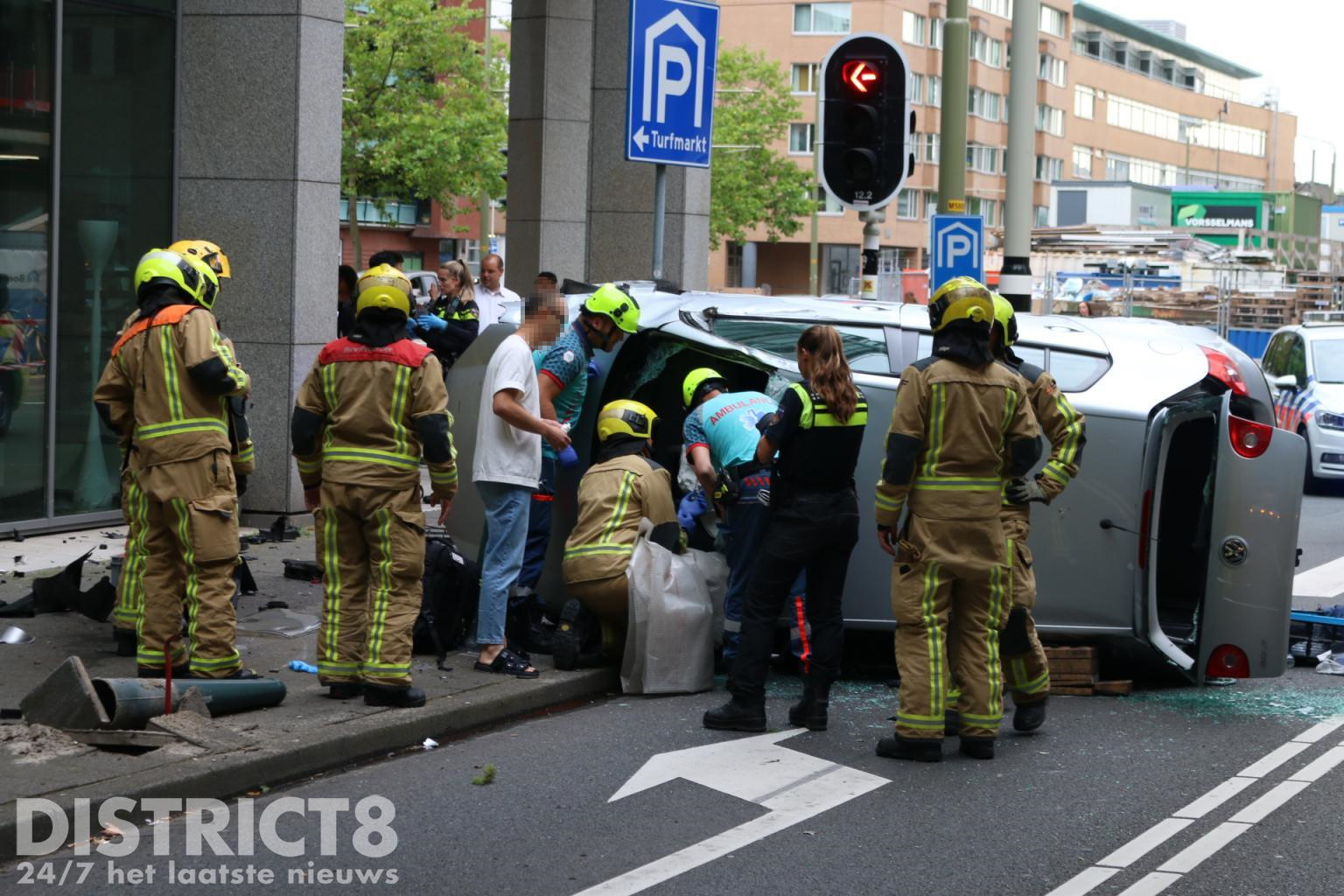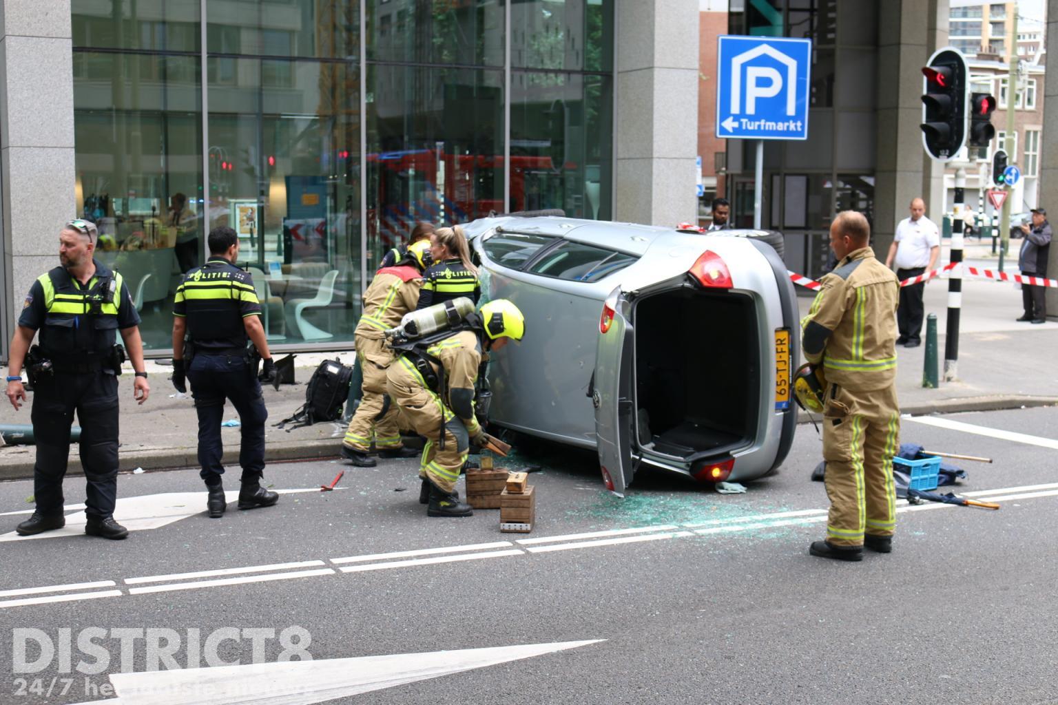 Den Haag – Vrijdagavond 22 juli is er op de Schedeldoekshaven een auto op zijn kant beland na een ongeval.