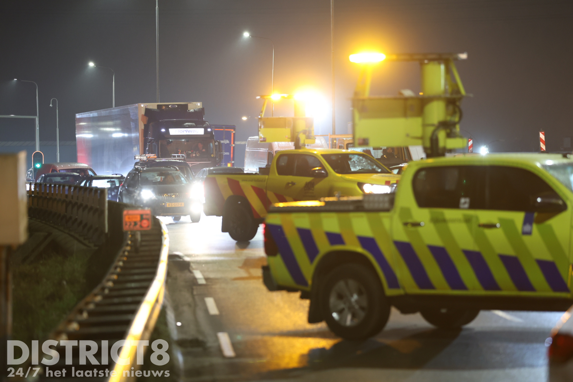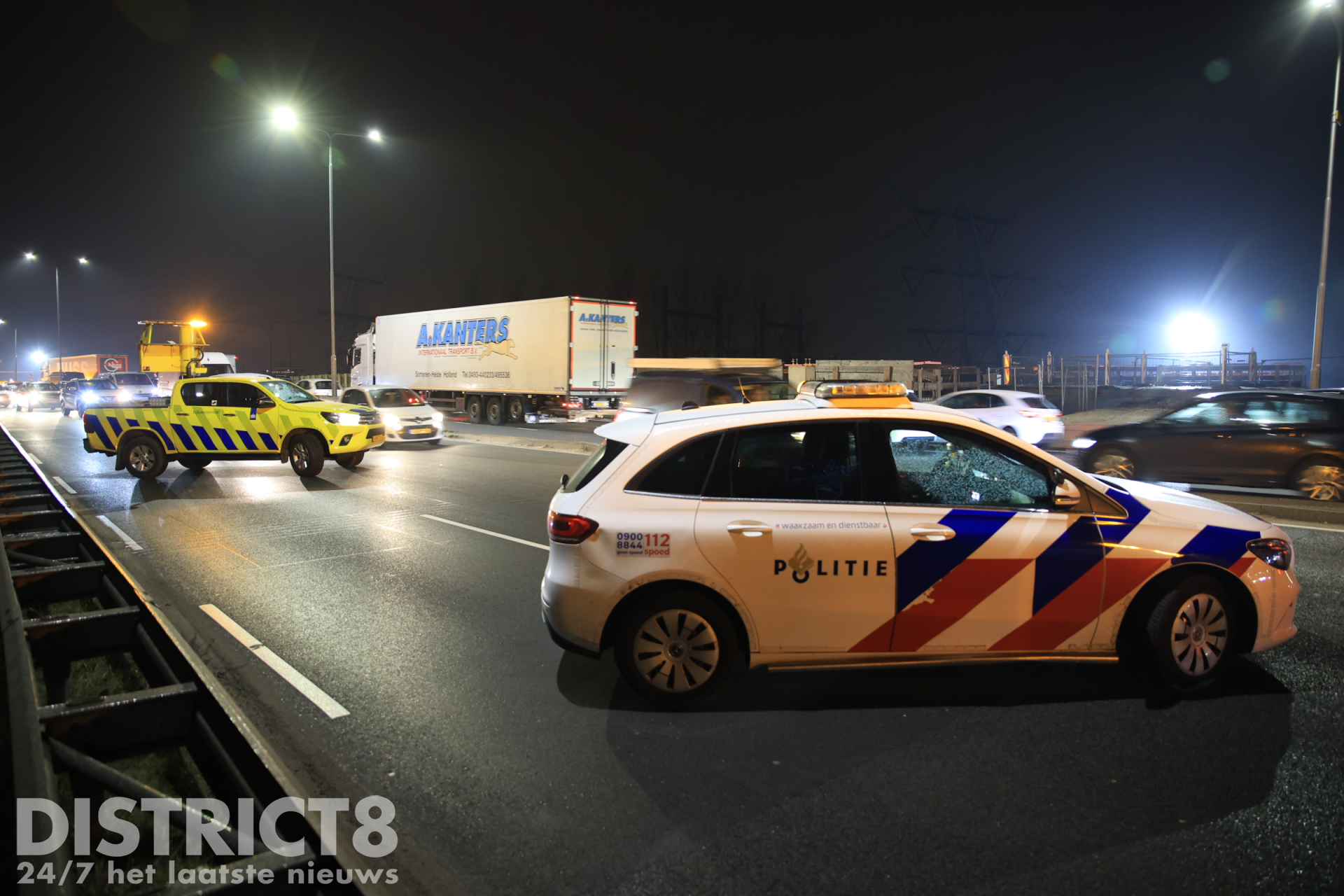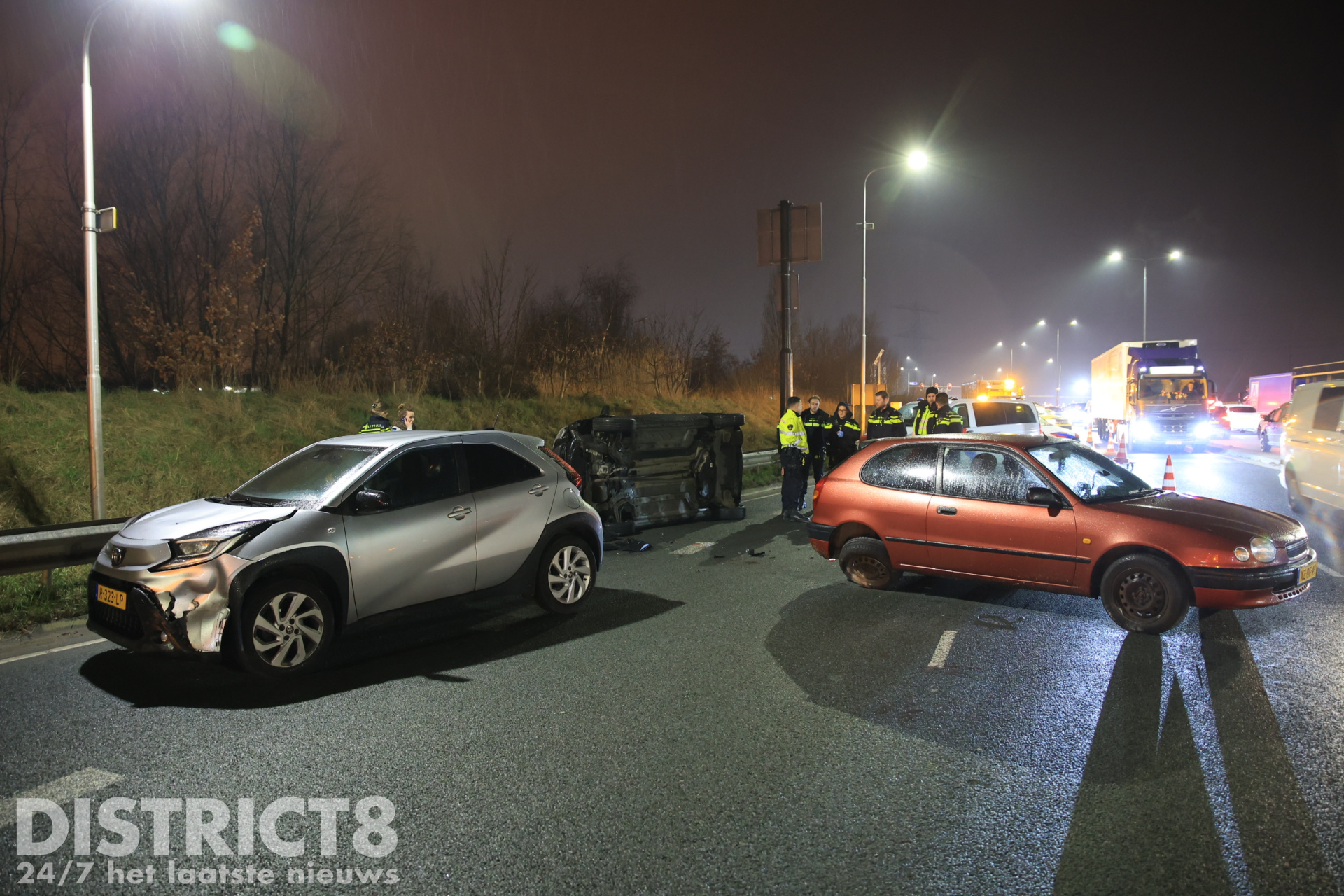 Auto op z’n kant na ongeval: vrachtwagen rijdt door N211 Wippolderlaan Den Hoorn