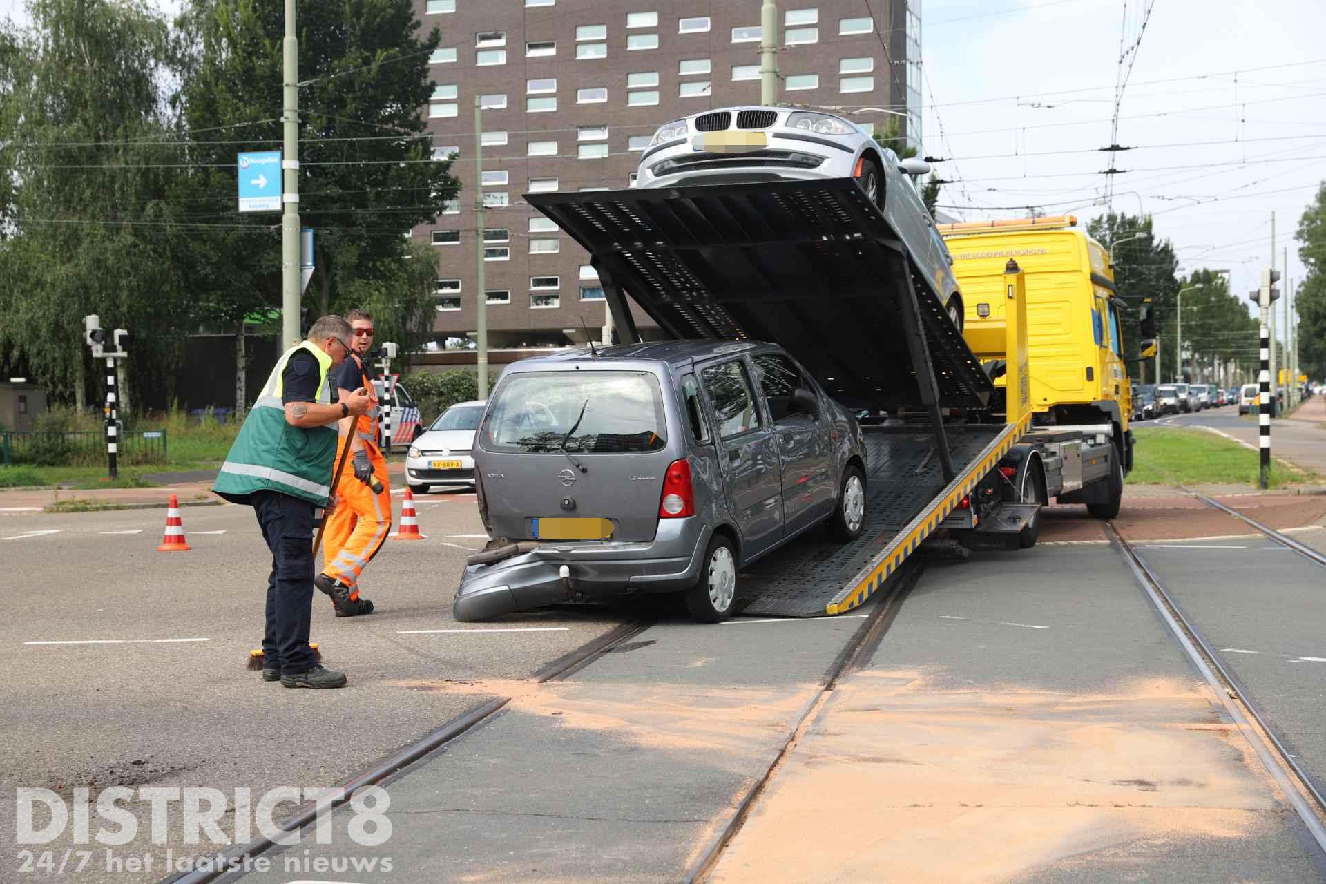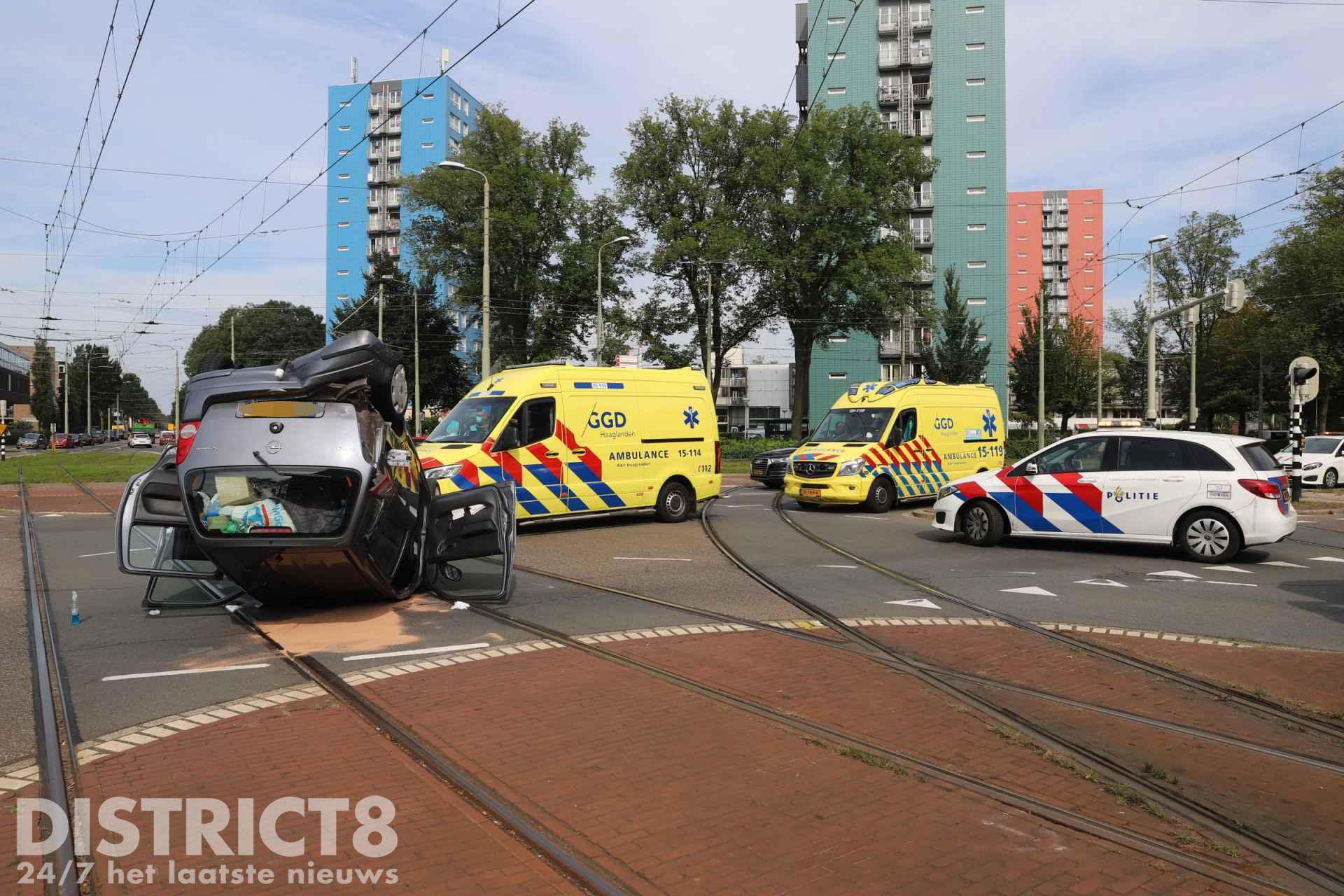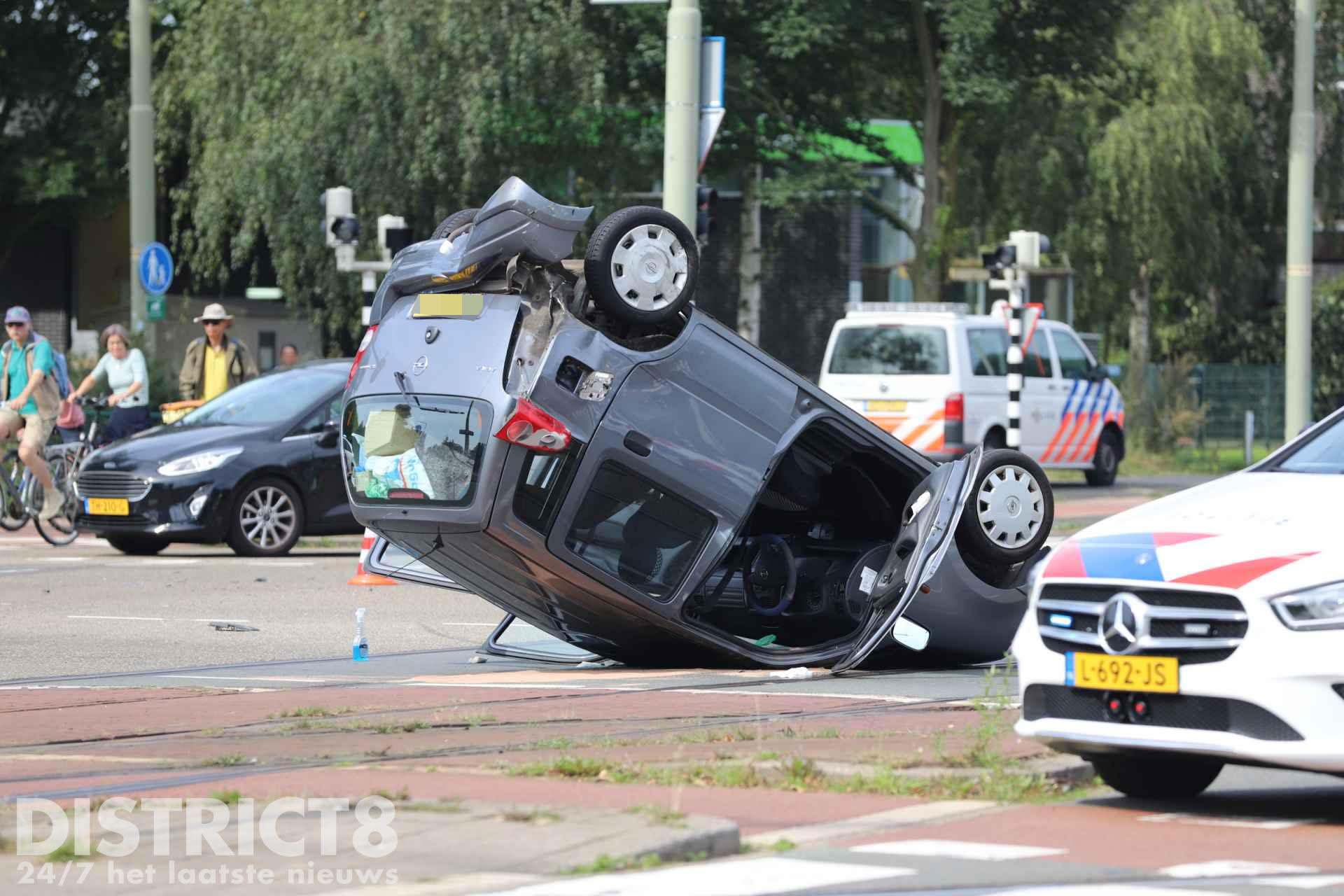 Rond tien over twaalf zijn een personenauto en een busje met elkaar in botsing gekomen op de kruising van de Dedemsvaartweg met de Melis Stokelaan. De auto kwam hierbij op zijn dak tot stilstand.
