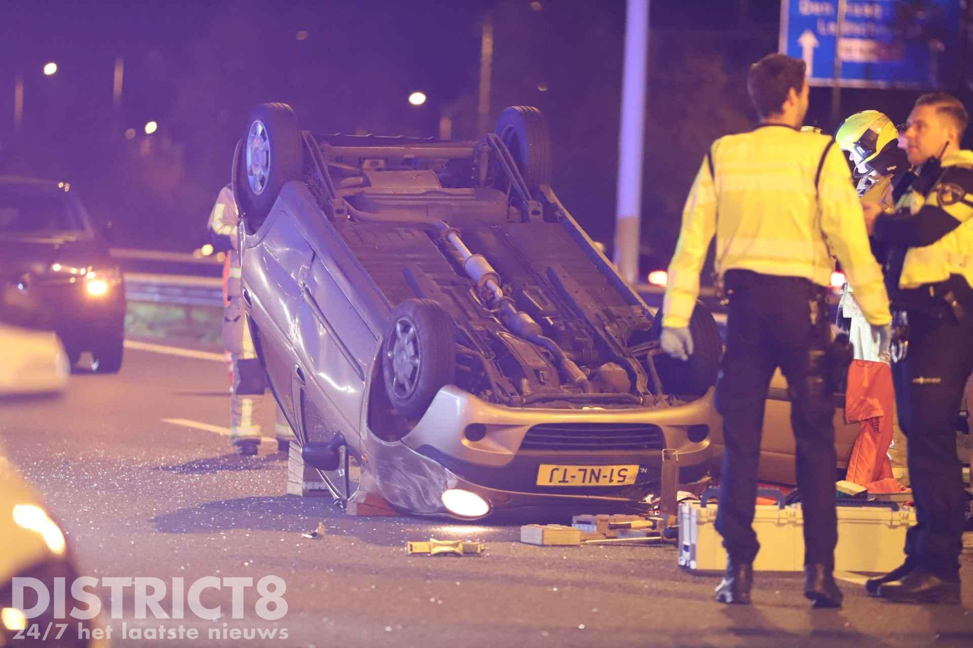 Den Haag – Op de A4 in de richting van Rotterdam heeft vanavond een aanrijding plaatsgevonden tussen een personenauto en een vrachtwagen. De auto kwam op de snelweg ter hoogte van Den Haag op z’n kop tot stilstand.