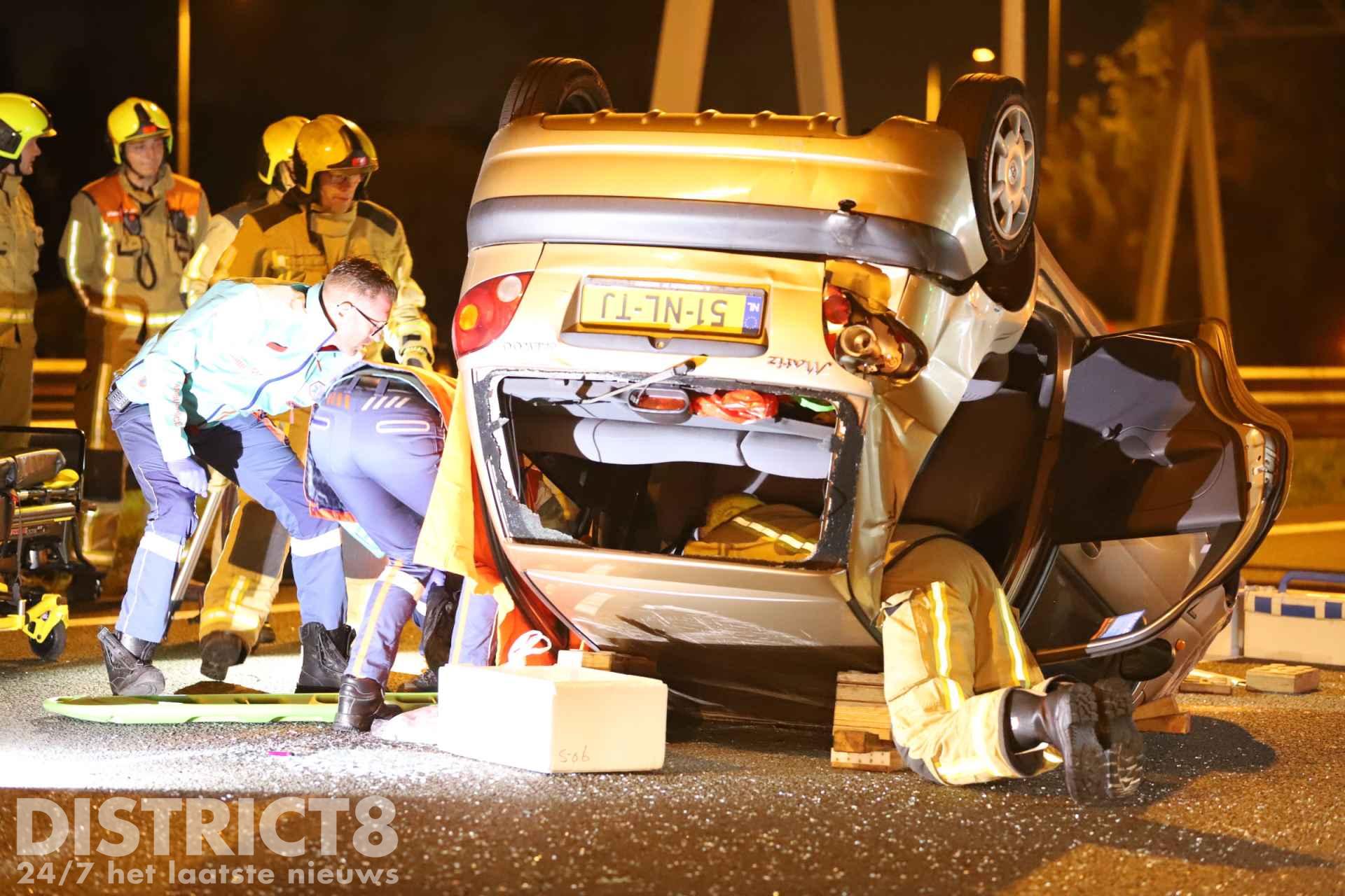 De bestuurder van de auto werd na onderzoek in de ambulance met spoed overgebracht naar het ziekenhuis.