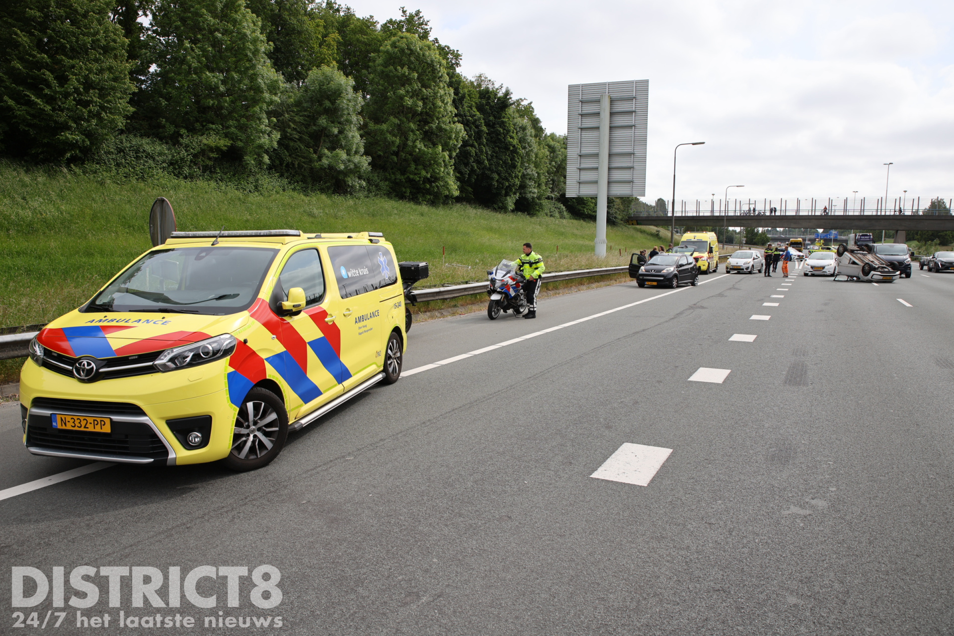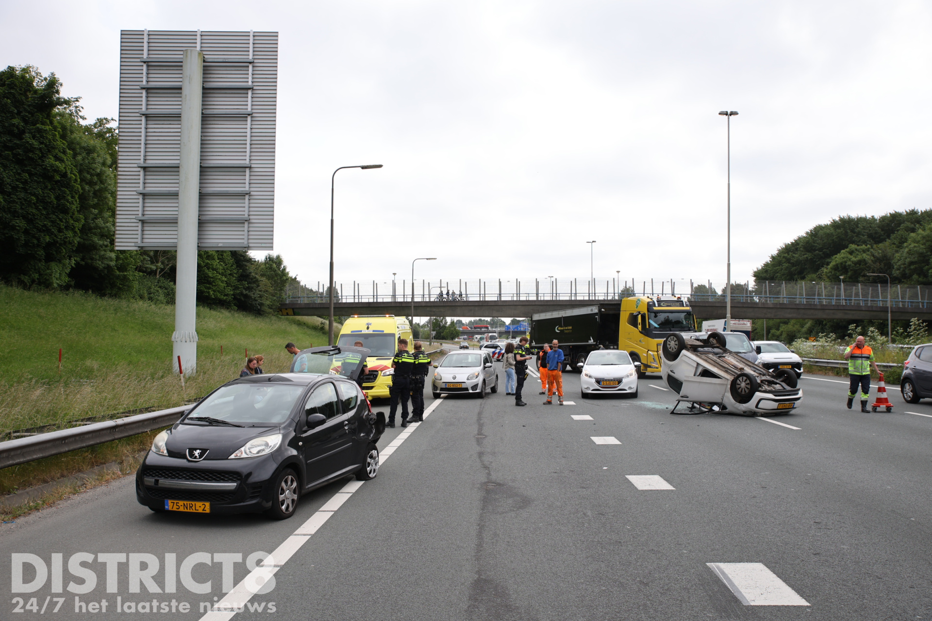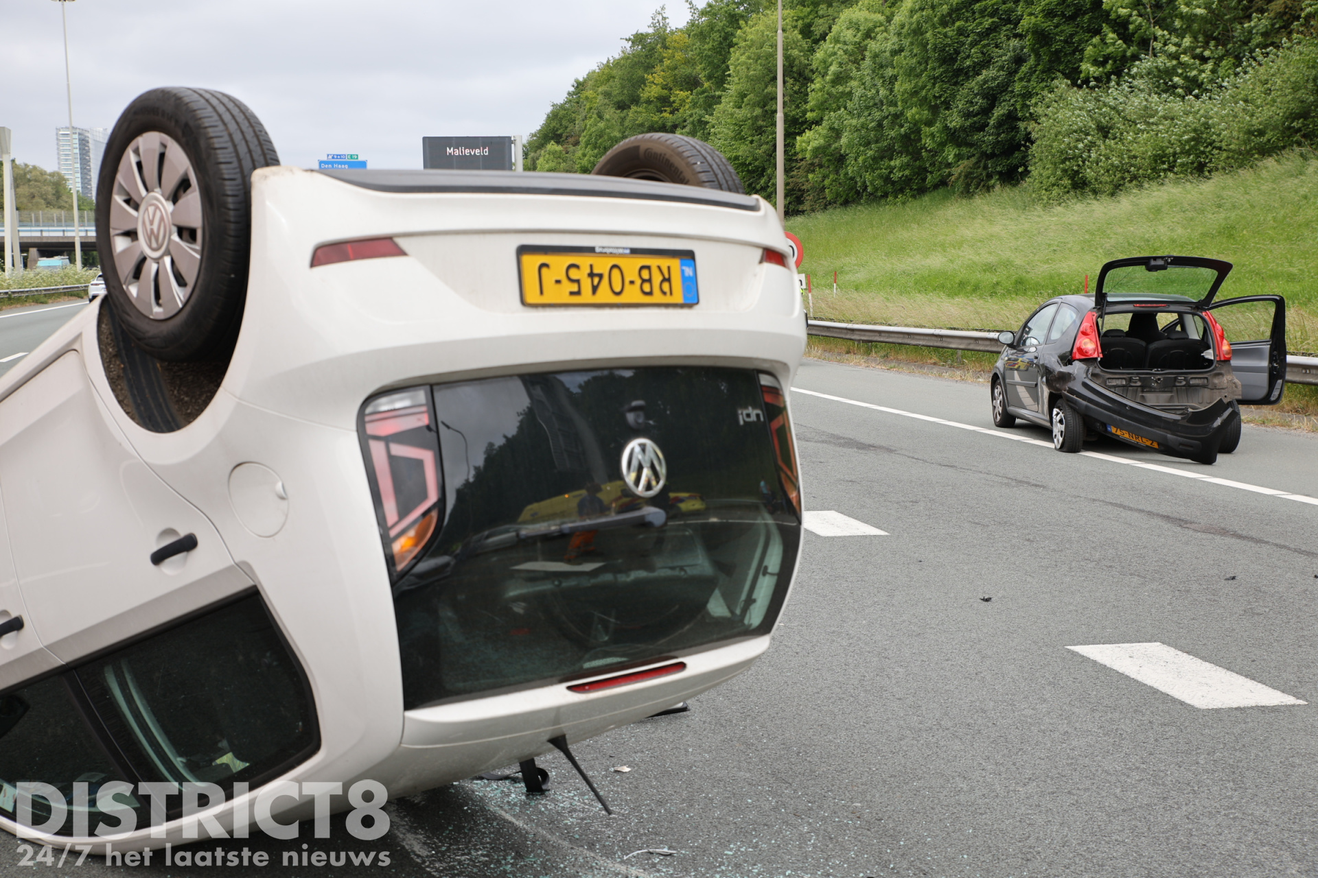 Home Haaglanden Auto op z’n kop na ongeval op snelweg A4 Rijswijk