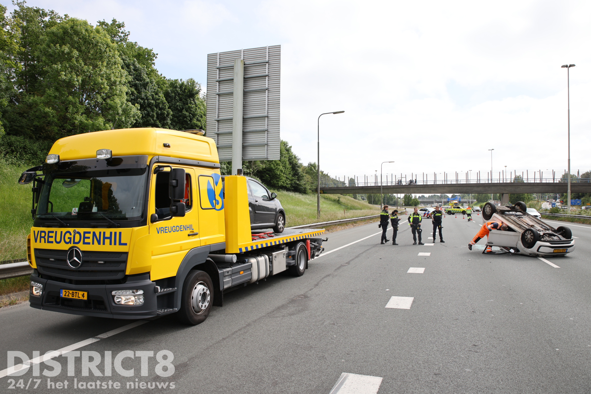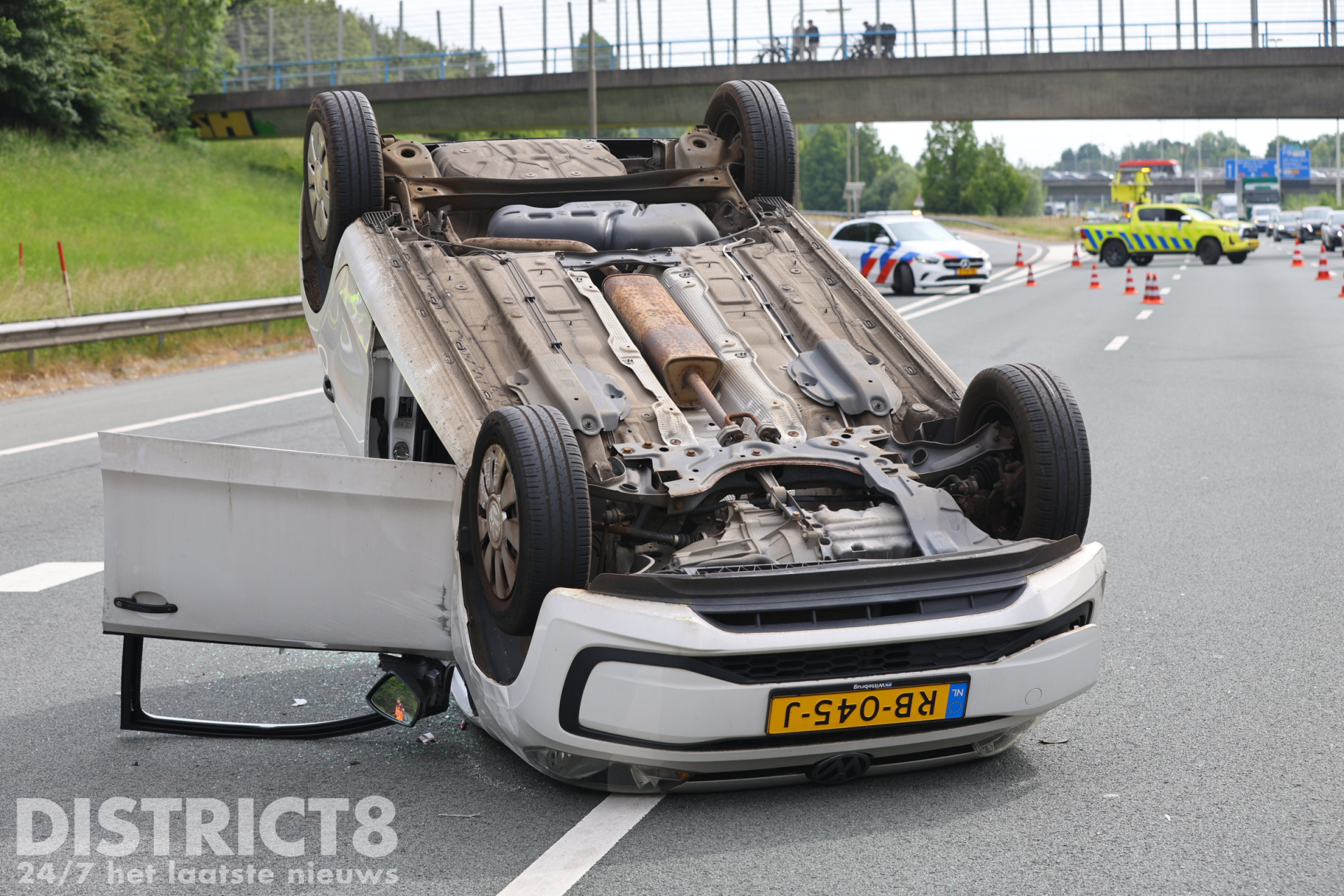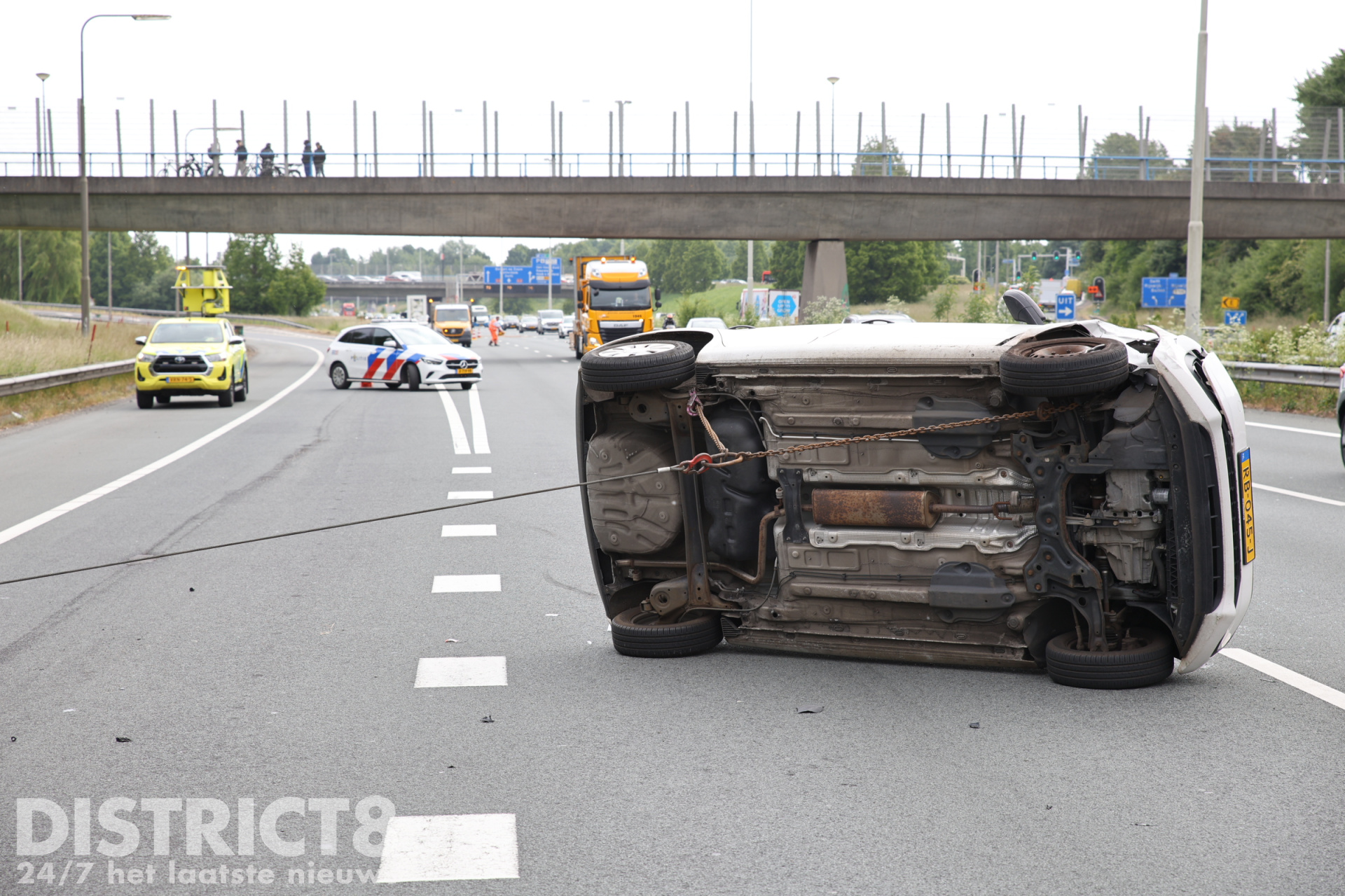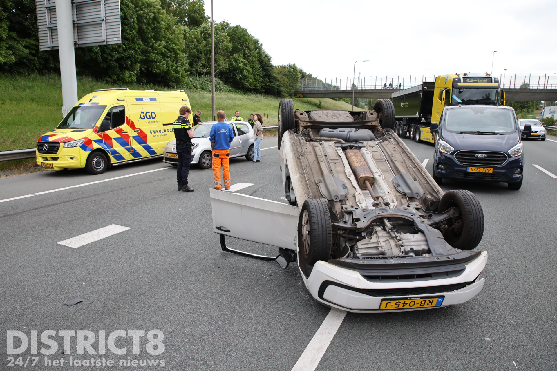 Auto op z’n kop na ongeval op snelweg A4 Rijswijk