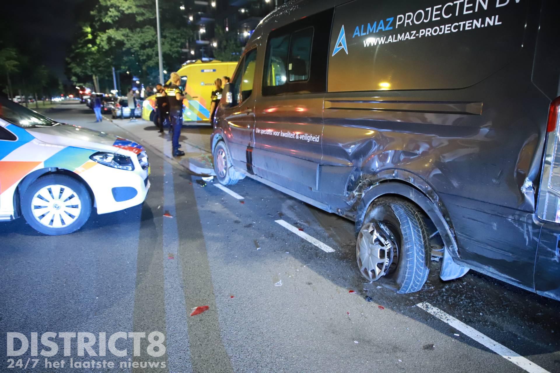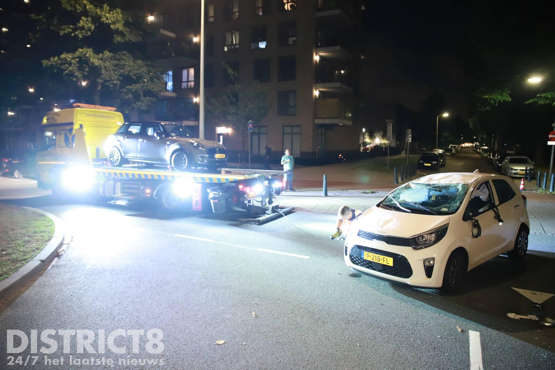Berger Vreugdenhil is ter plaatse gekomen om de zwaar beschadigde auto afvoeren. Ook de geparkeerde bestelbus raakte beschadigd.