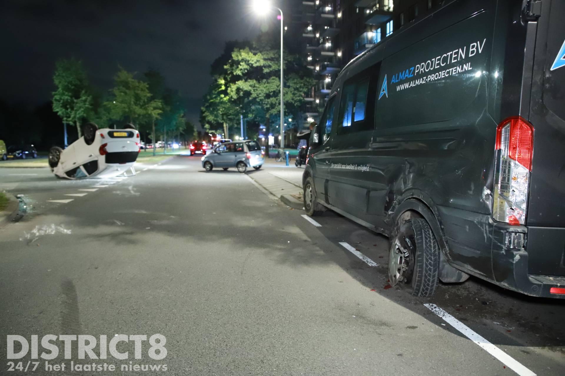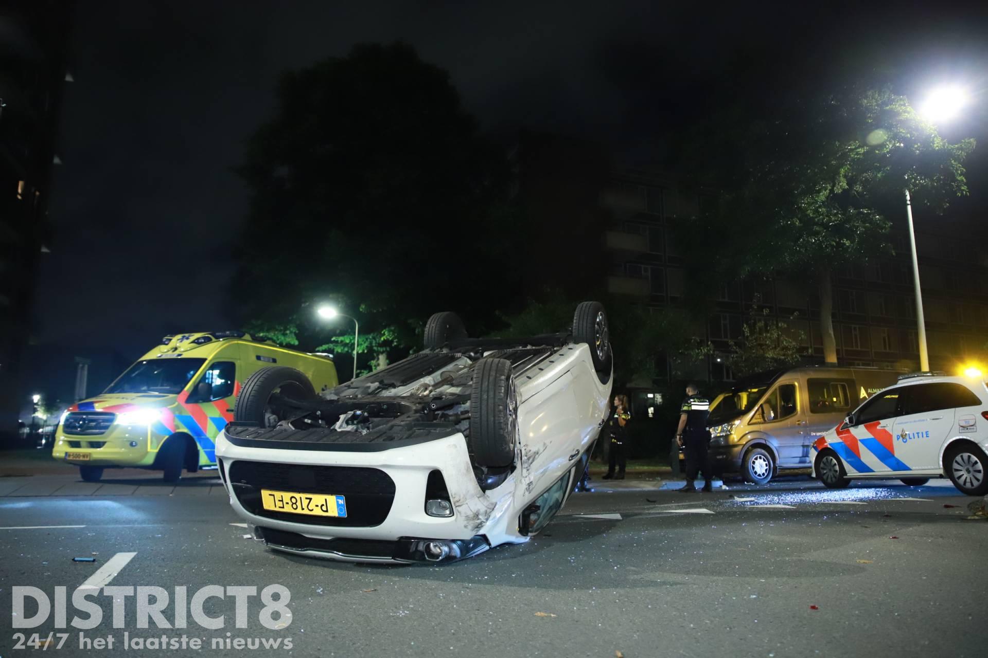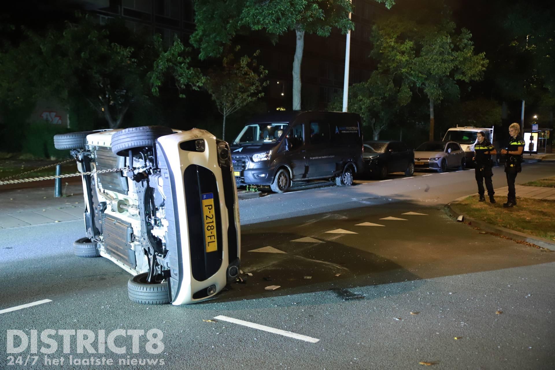 Den Haag – Op de Loevesteinlaan in Den Haag is vrijdagavond 19 augustus een auto op z’n kop terecht gekomen na een ongeval.