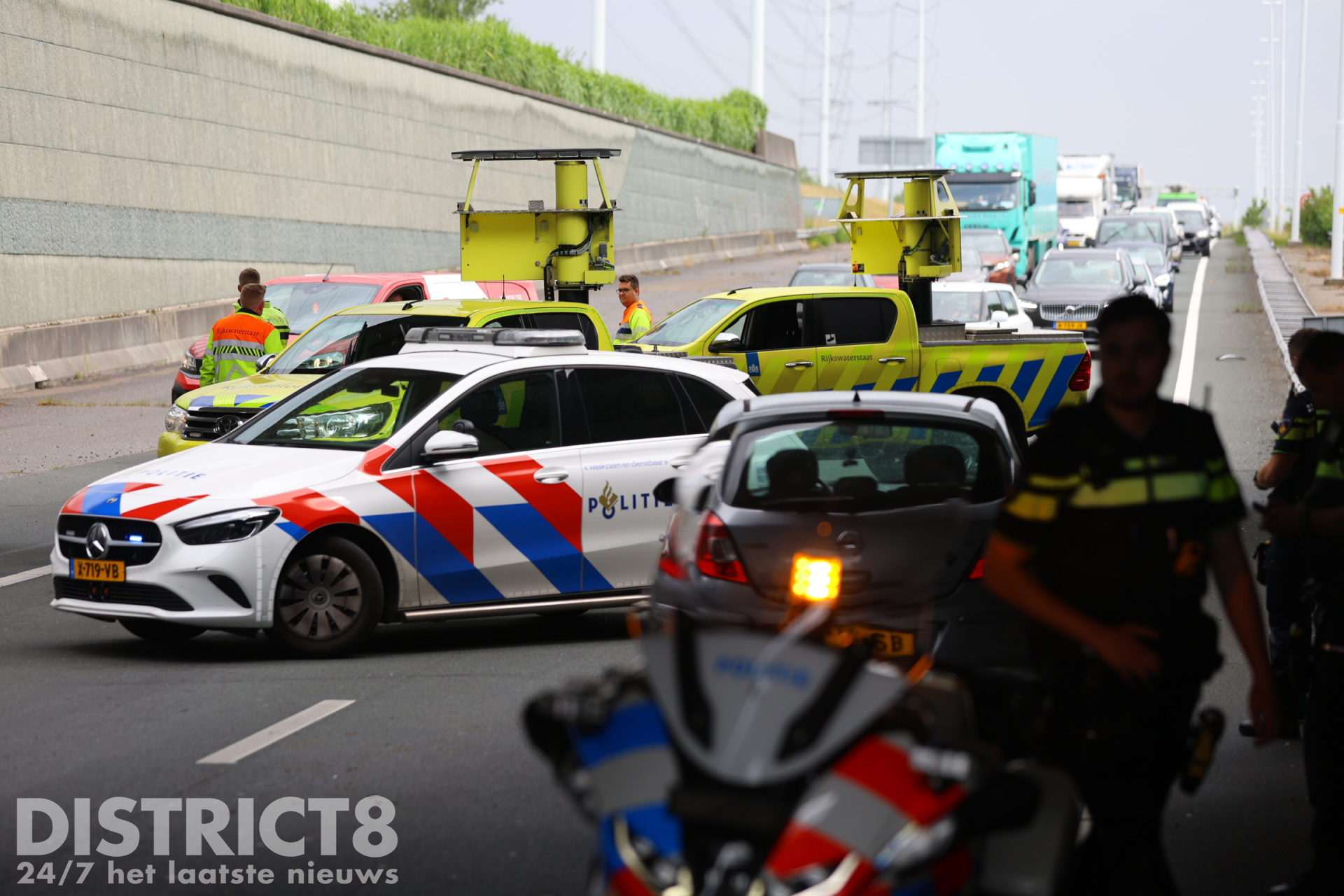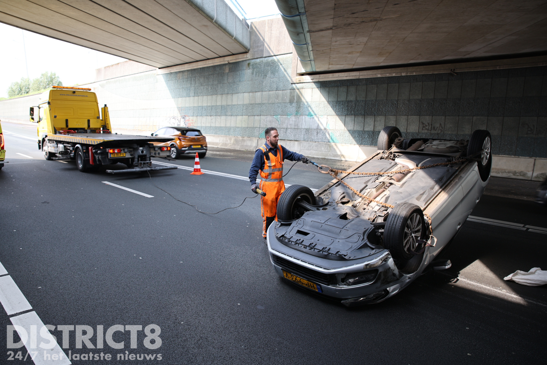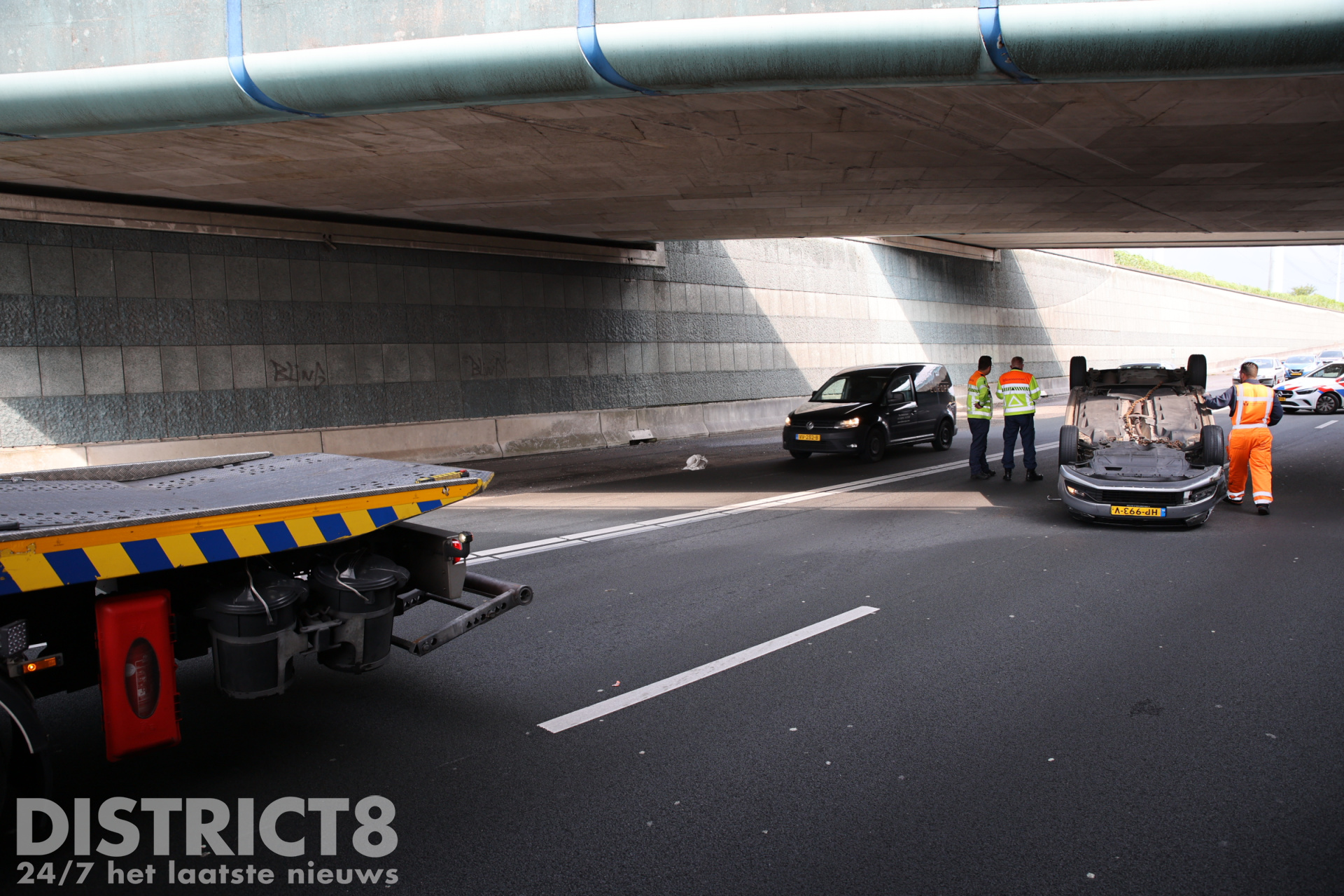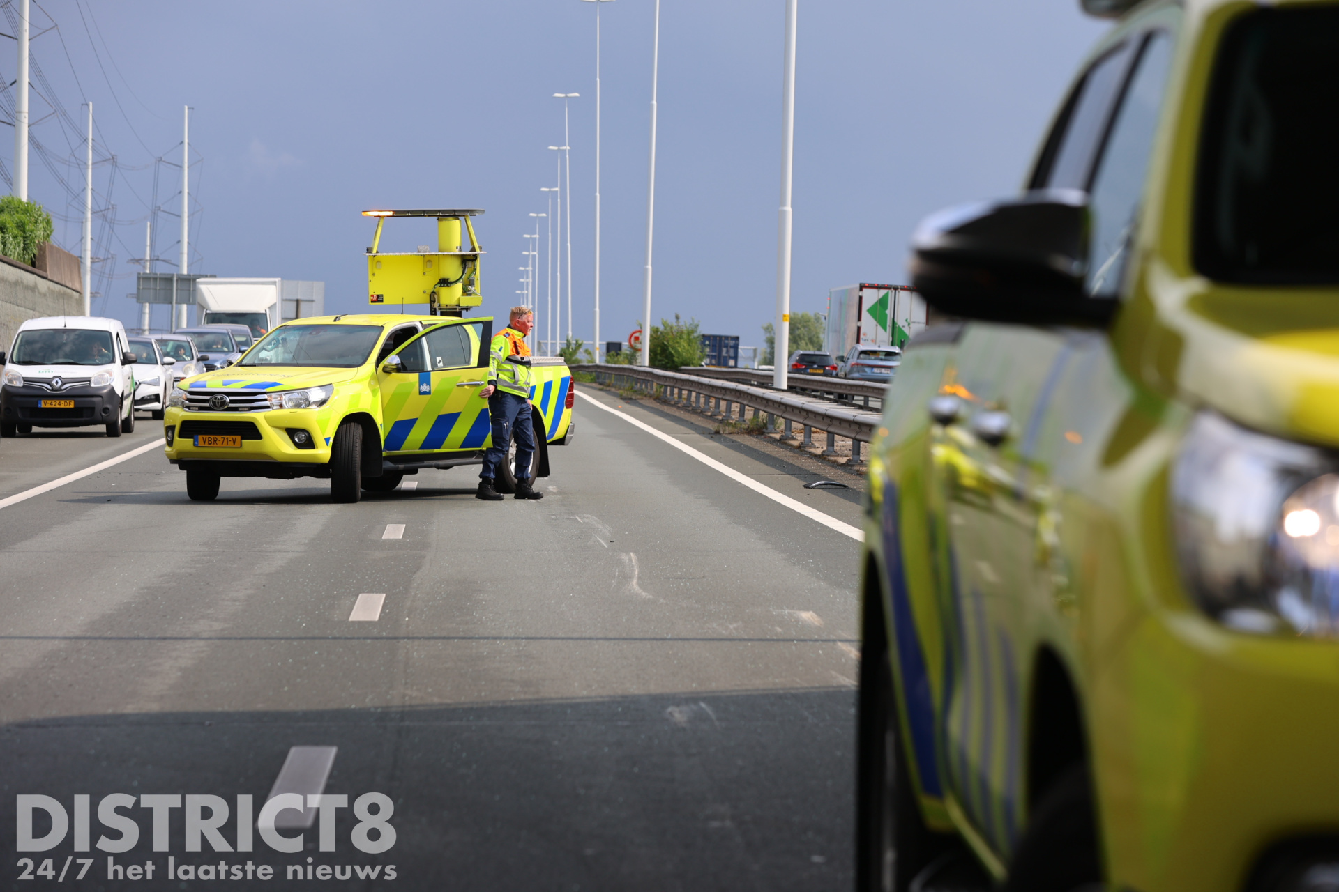 Schipluiden – Op de A4 bij het Gaag-aquaduct is donderdagmiddag 5 juni een auto over de kop geslagen na een aanrijding. De bestuurder moest uitwijken voor een vrachtwagen, waarbij het voertuig aan de achterkant werd geraakt en over de kop sloeg.