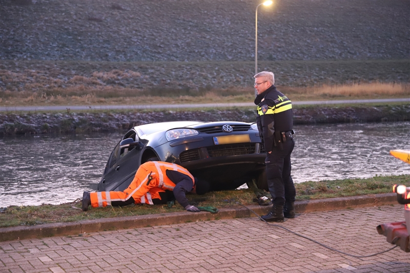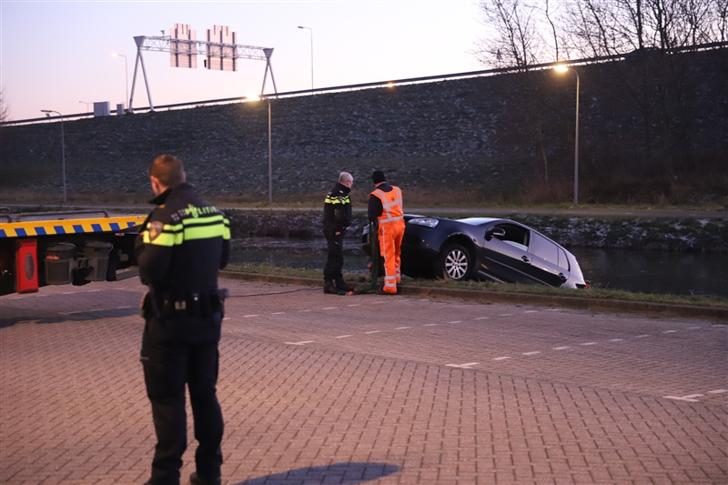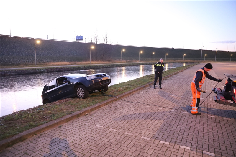 De brandweer kwam met spoed ter plaatse om het voertuig tijdelijk te zekeren. Toen de auto stabiel genoeg stond is gewacht op een berger, deze heeft het voertuig evenlater zonder extra schade op de kant kunnen krijgen.