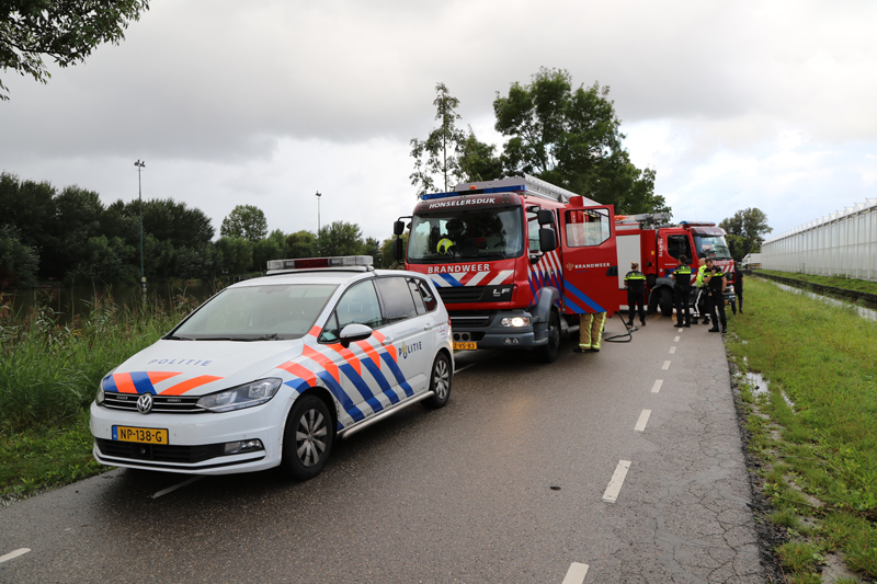 Rond acht uur werd er een melding gedaan dat er een auto in het water zou liggen langs de Broekpolderlaan in Honselersdijk.
