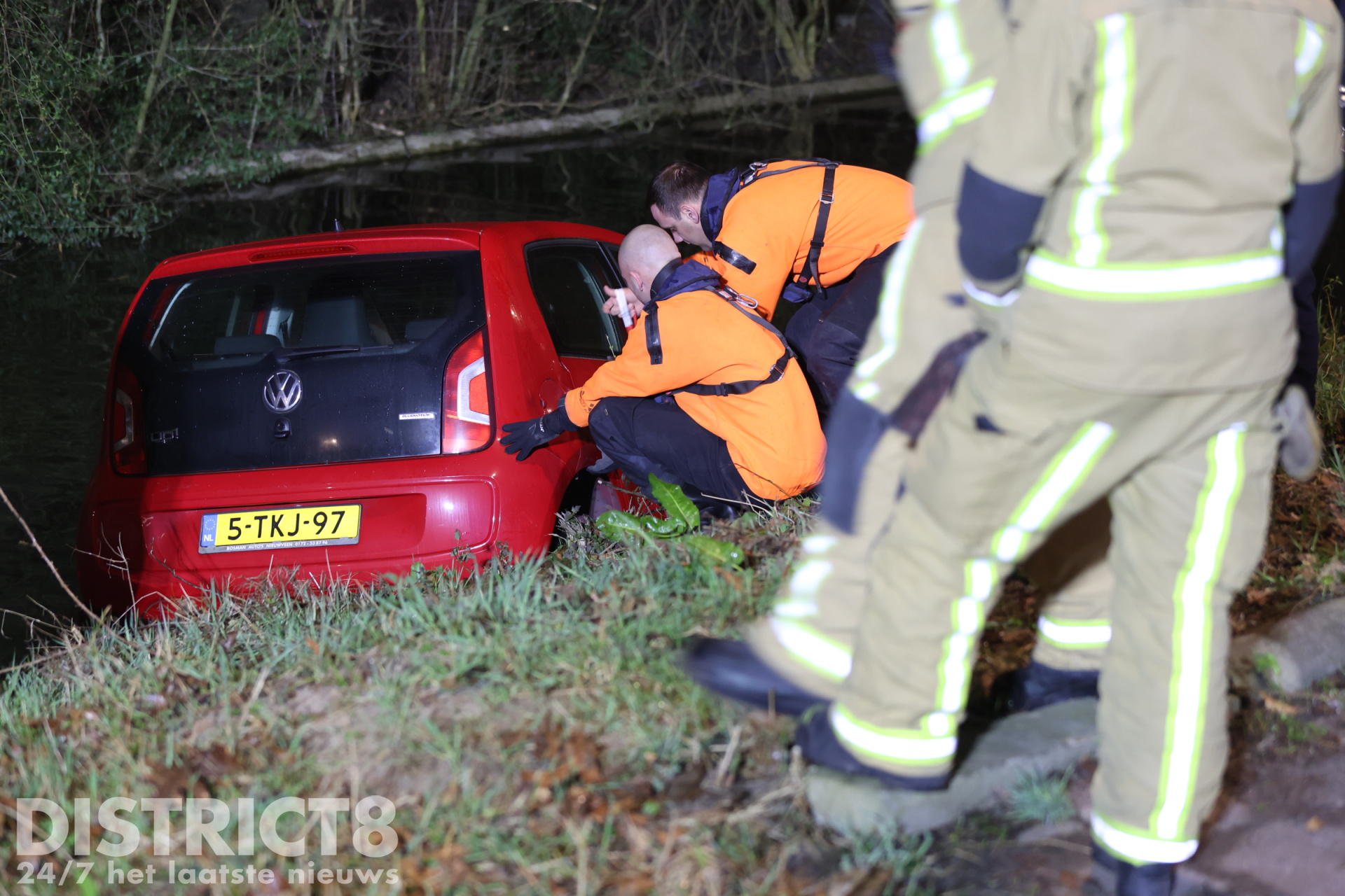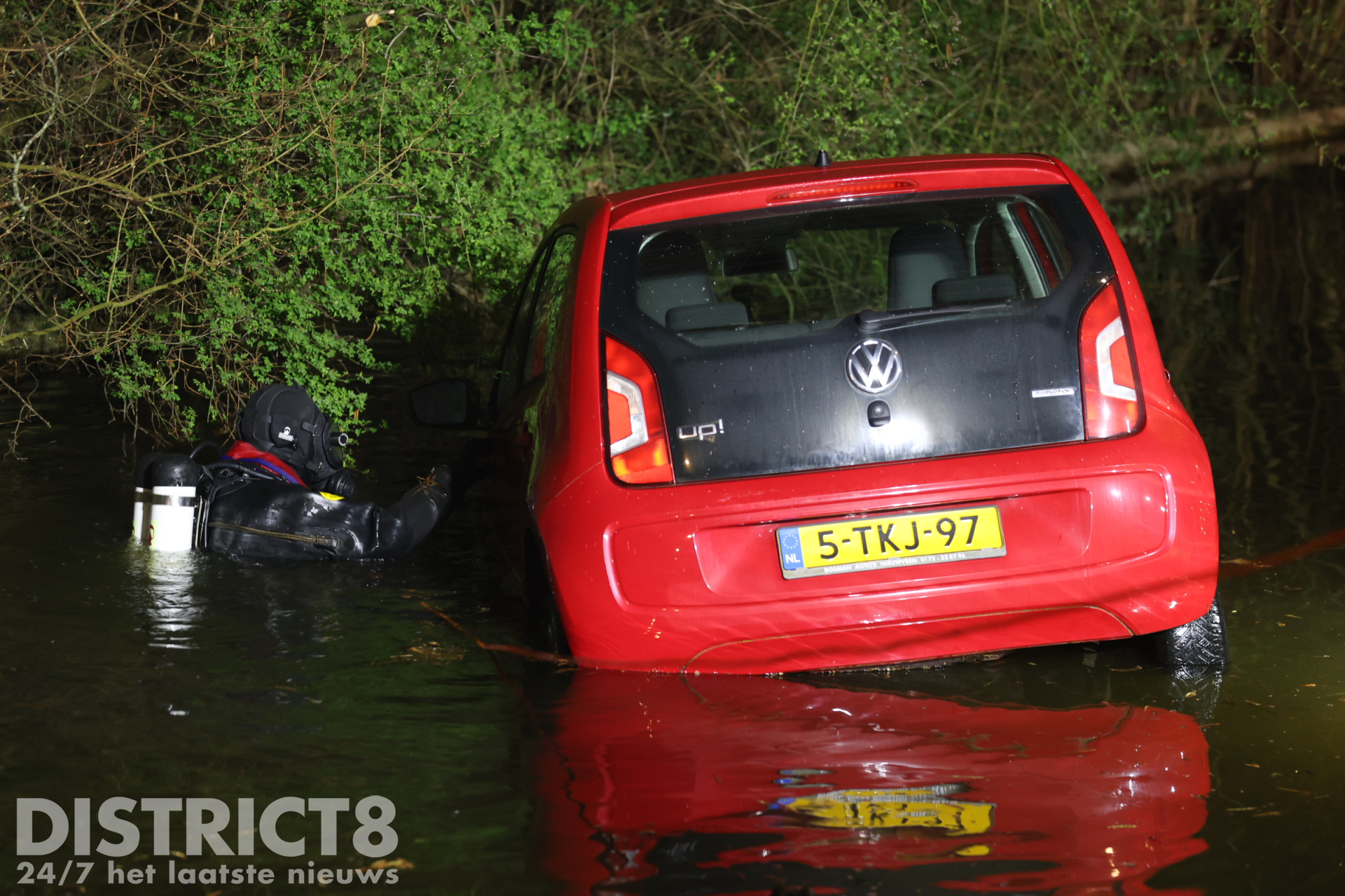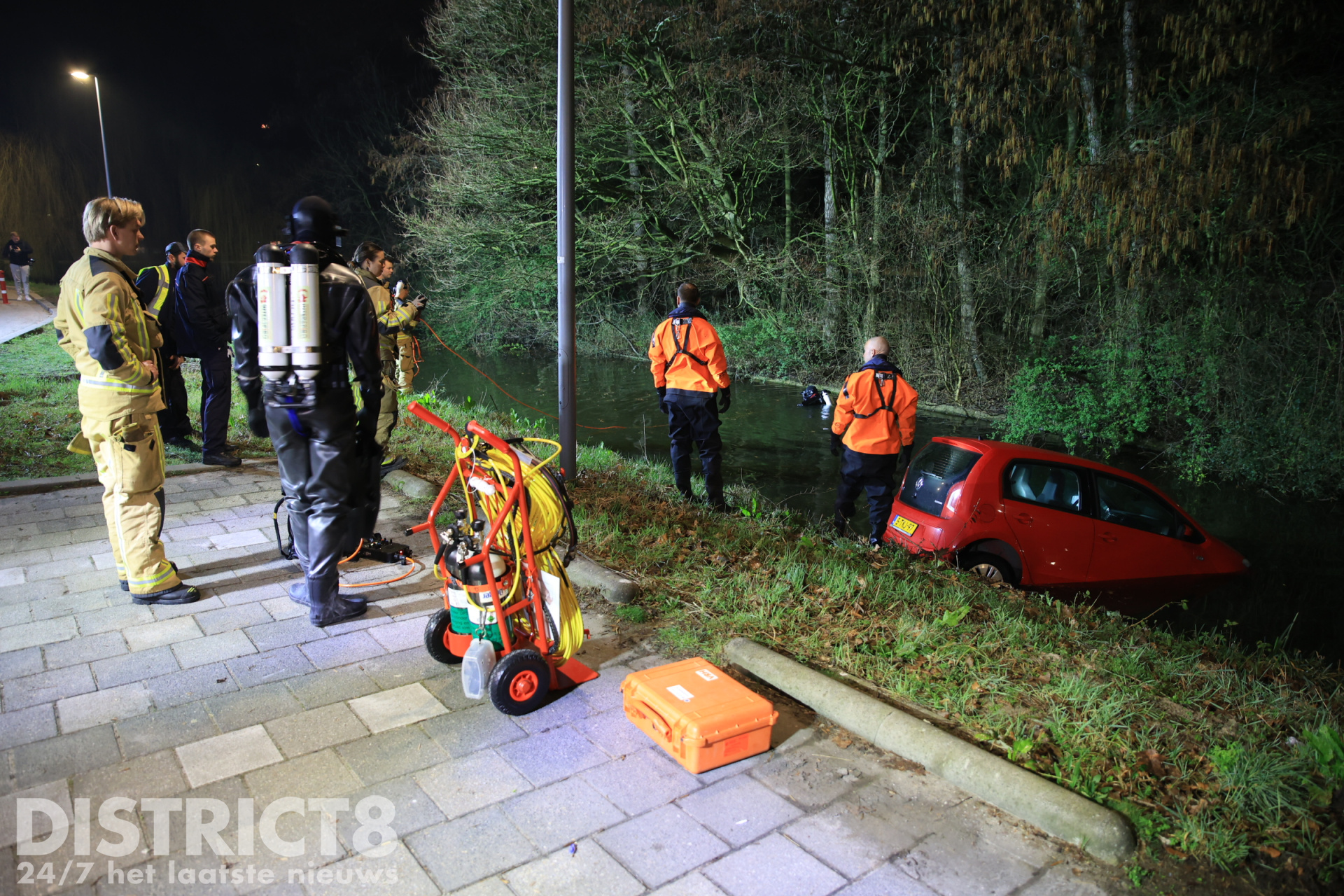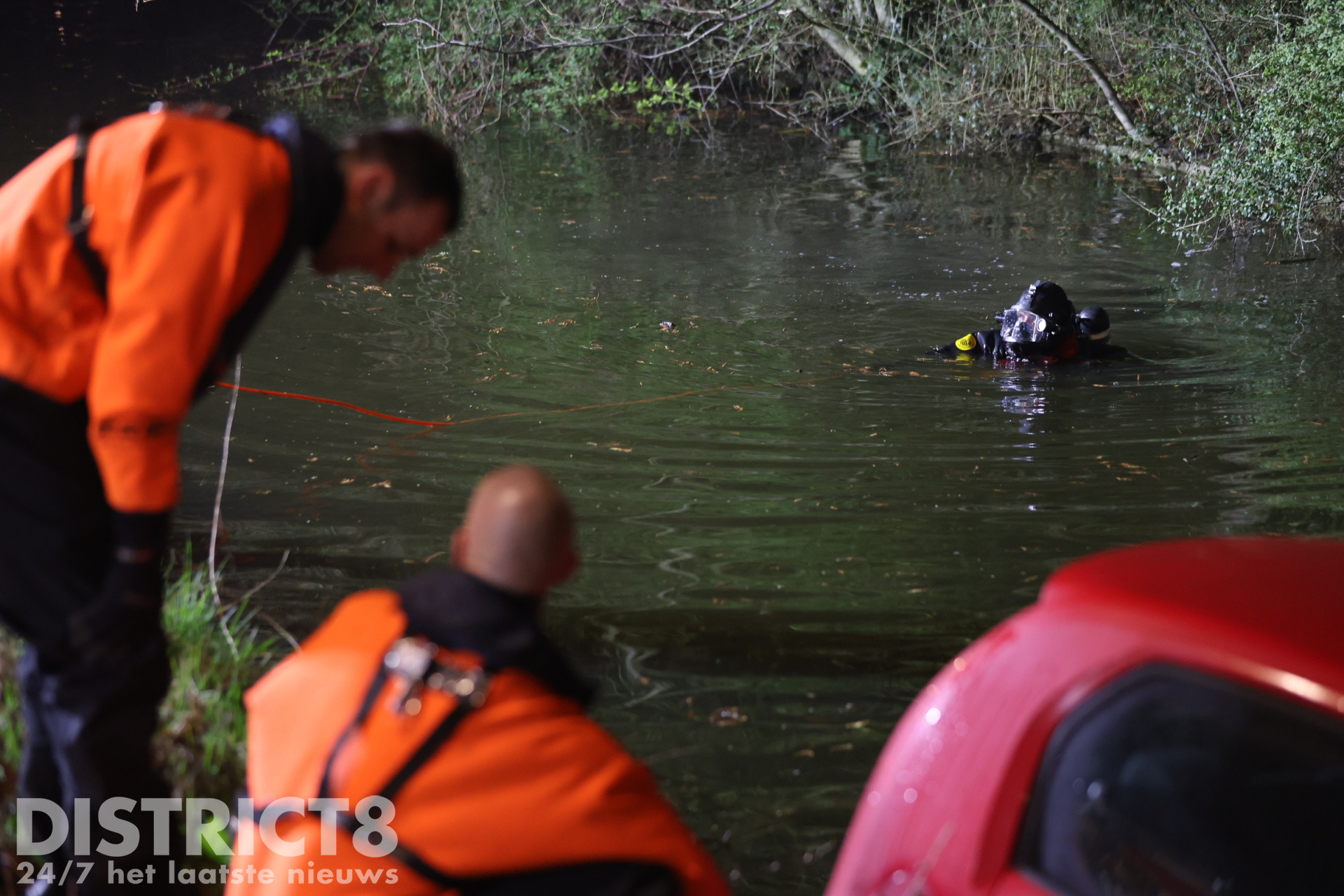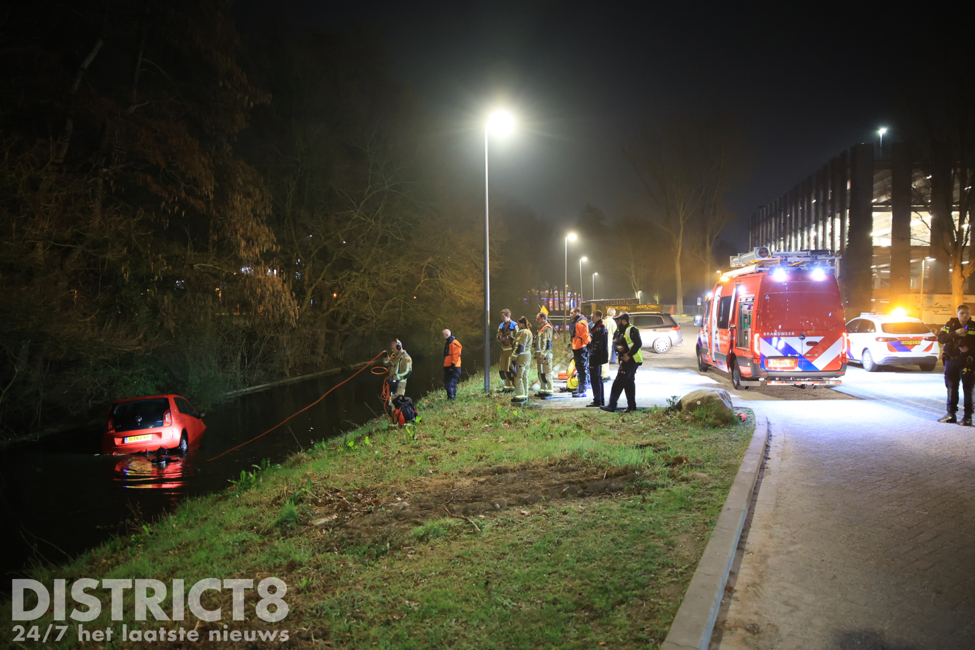 Ter plaatse bleek er daadwerkelijk een auto te water geraakt te zijn. Brandweerlieden hebben in het water een zoekslag gemaakt naar eventuele inzittenden. Niemand raakte gewond.