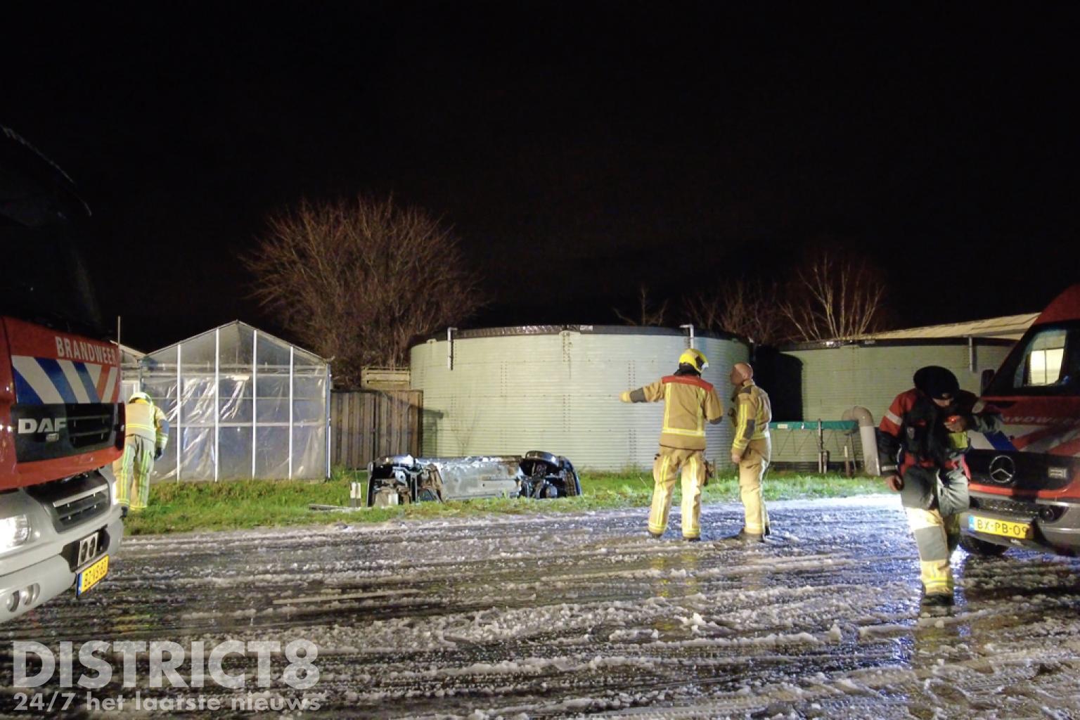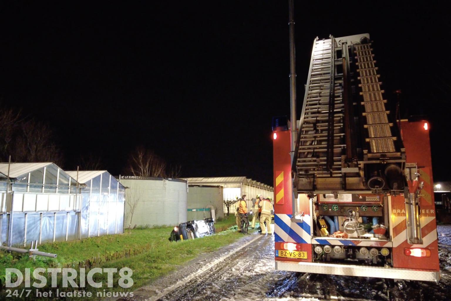 De Zwethlaan was enige tijd afgesloten. De brandweer kon met een kraan de auto uit de sloot takelen.