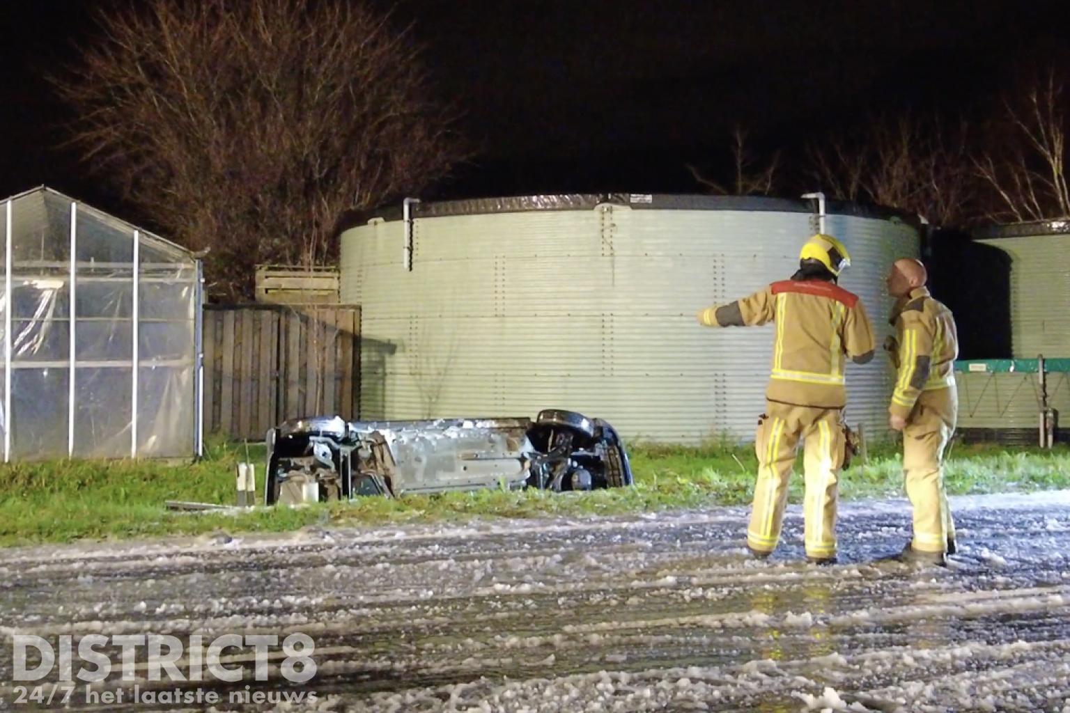 Even na half acht ging het mis. Door bestuurder raakte de macht over het stuur kwijt en kwam op z’n kant in de sloot terecht. De bestuurder kon gelukkig zelfstandig zijn auto verlaten.